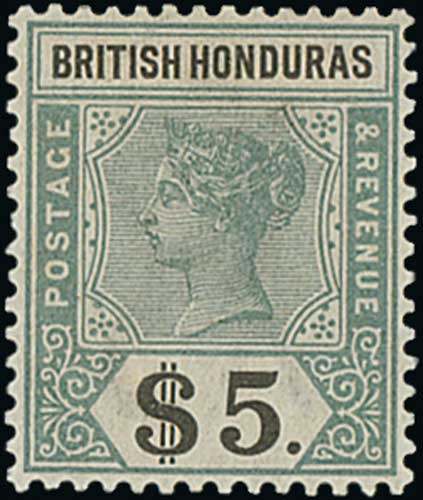 1027 image1899 $5 Green and black, unmounted mint, superb. S.G. 65, £375+. Photo on Page 108. (Image1)