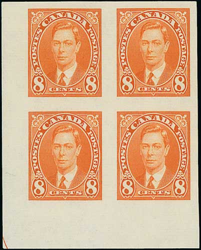 1038 image1937-38 KGVI 1c - 8c Imperforate marginal blocks of four, superb unmounted mint. 150 3c Pairs and 100 pairs of the other values existed. S.G. £4,500. (6 Blocks). Photo on Page 134. (Image1)