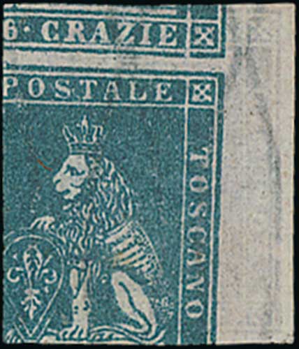 1544 imageTuscany. 1857-59 6c Blue, variety printed on both sides, superb used, very rare. Photo on Page 198. (Image1)