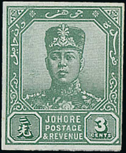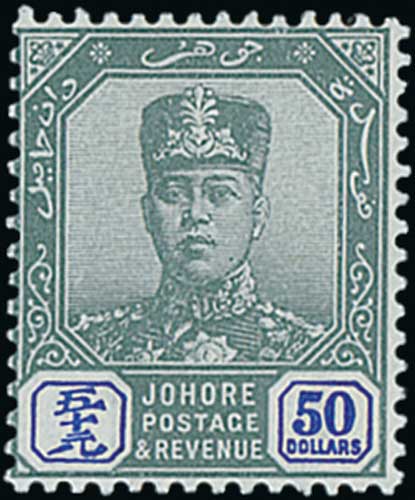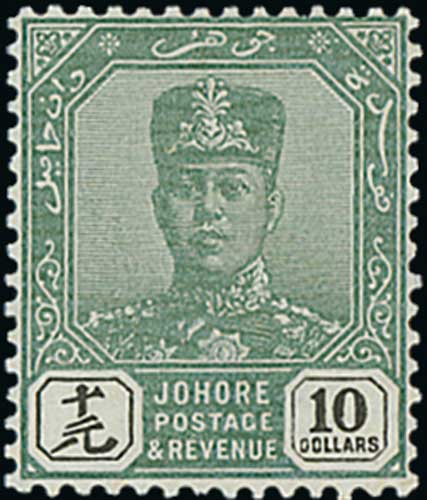 1595 imageJohore. 1884-1941 Mint and used collection including 1884-91 overprints and surcharges (18, with S.G. 10a, 14 mint, S.G. 18 mint and used), 1891-94 set mint and used, 1894 3c surcharges on 4c, 5c, $1 all no stop variety mint, Coronation set (both spellings), 1896-99 set mint, 1903 surcharges, 1904 set mint to $10 and used to $4, 1910-19 set mint and used, 1918-20 set mint to $5, 1922-41 set mint to $50 and used to $5, all later issues, also 1912 8c dull purple and orange imperf plate proof block of four, 1925 3c green imperf plate proof, and a few fiscally used higher values, some unmounted, a fine collection. S.G. £10,000 (approx). (349). Photo on Pages 188 & 198. (Image1) (Image2) (Image3) (All Images)
