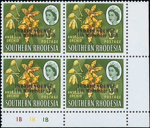 1716 image1966 9d Independence overprint lower right plate block of four, variety overprint double, "1B" plate numbers, superb unmounted mint, a unique variety on a plate block. With B.P.A Certificate (2008). S.G. 365a, £3,200++. Photo on Page 208. (Image1)