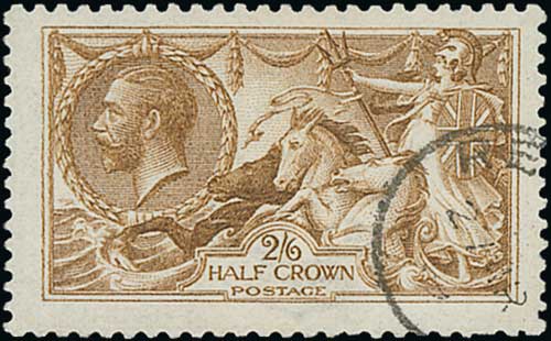 1915 De la Rue 2/6 yellow-brown, watermark inverted, used with neat c.d.s cancel, very scarce so fine. With B.P.A Certificate (2021). S.G. 406wi, £875. Photo on Page 24. (Image1)