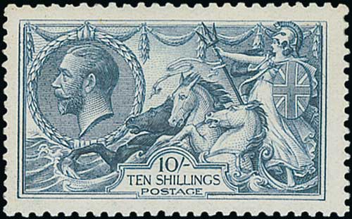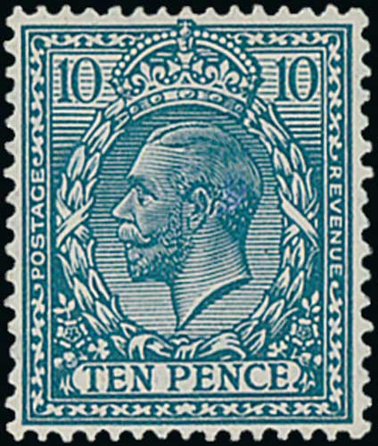1913 Waterlow 10/- indigo-blue, fine unmounted mint. S.G. 402, £1,500. Photo on Page 24. (Image1)