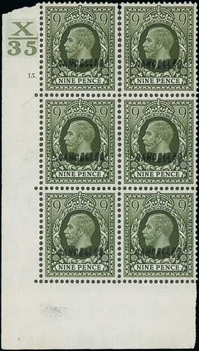 182 image1935 9d Olive-green, "X/35" Control block of six with cylinder 15 dot, each stamp overprinted "CANCELLED" type 33, some splitting to vertical central perfs, mint original gum, unique. With B.P.A Certificate (2015). Photo on Page 30. (Image1)