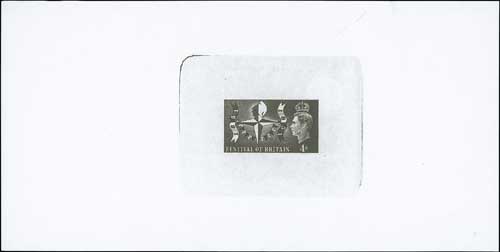 187 image1951 Festival of Britain 4d, die proof in black, die sunk on wove paper, 203x101mm. A superb proof, newly discovered, unlisted by S.G. and very rare. Photo on Page 26. (Image1)