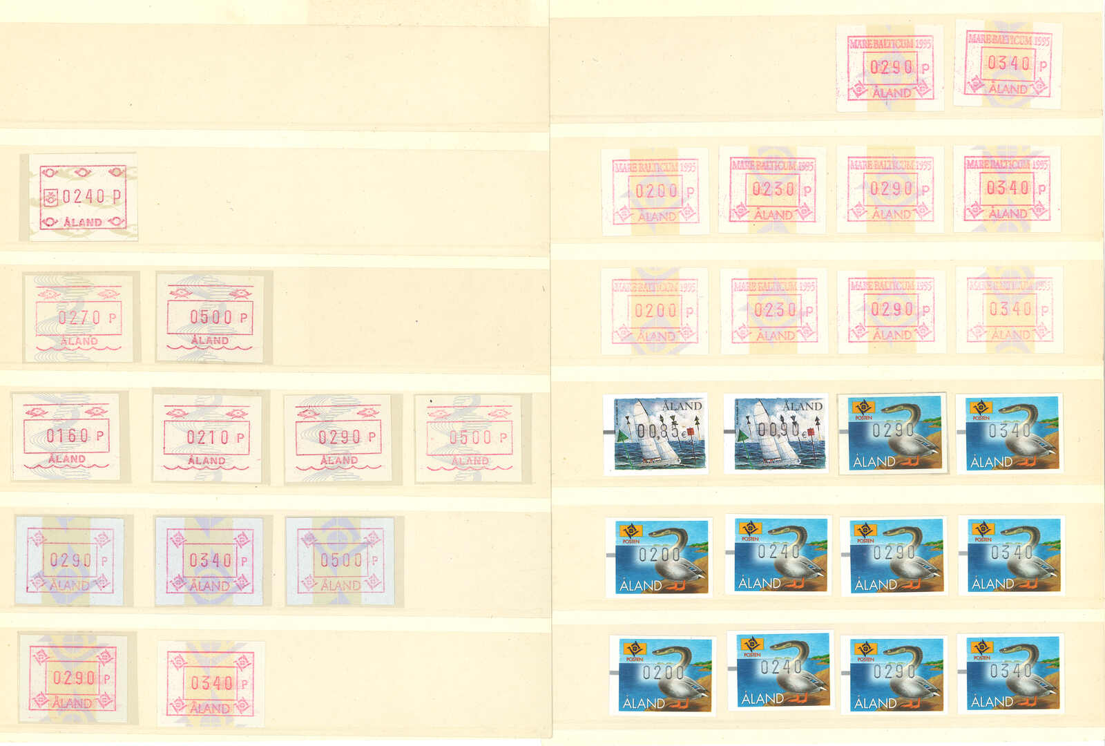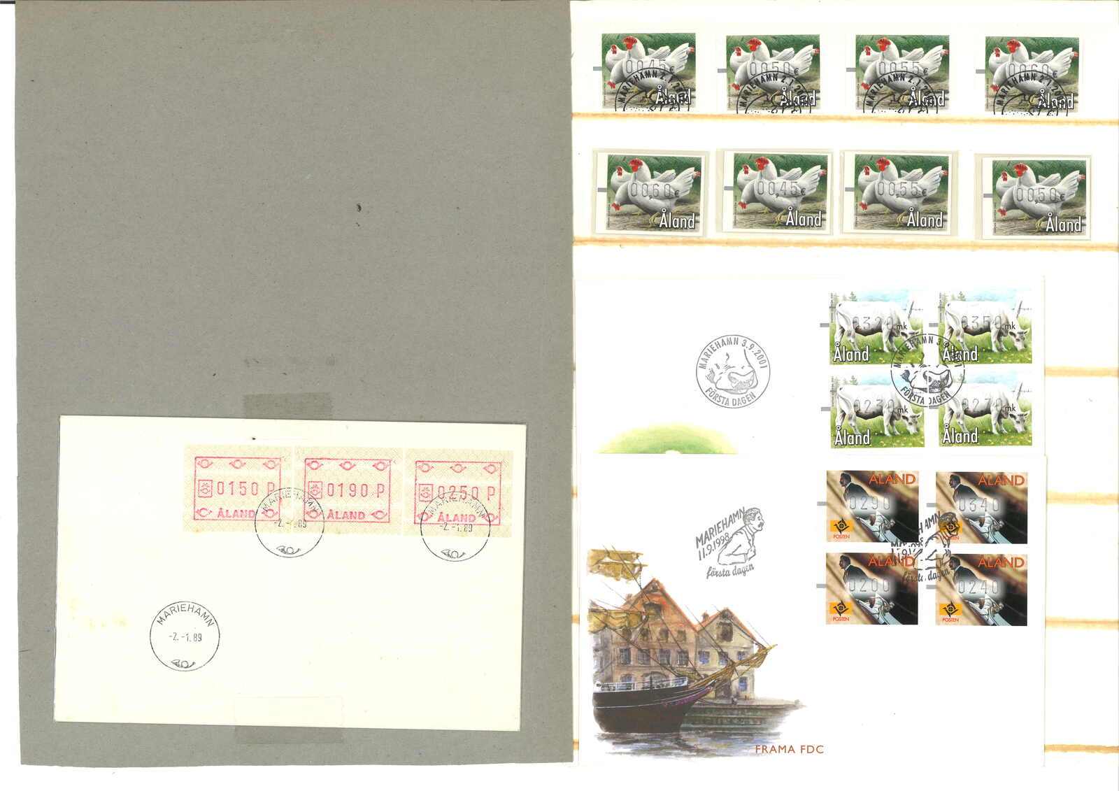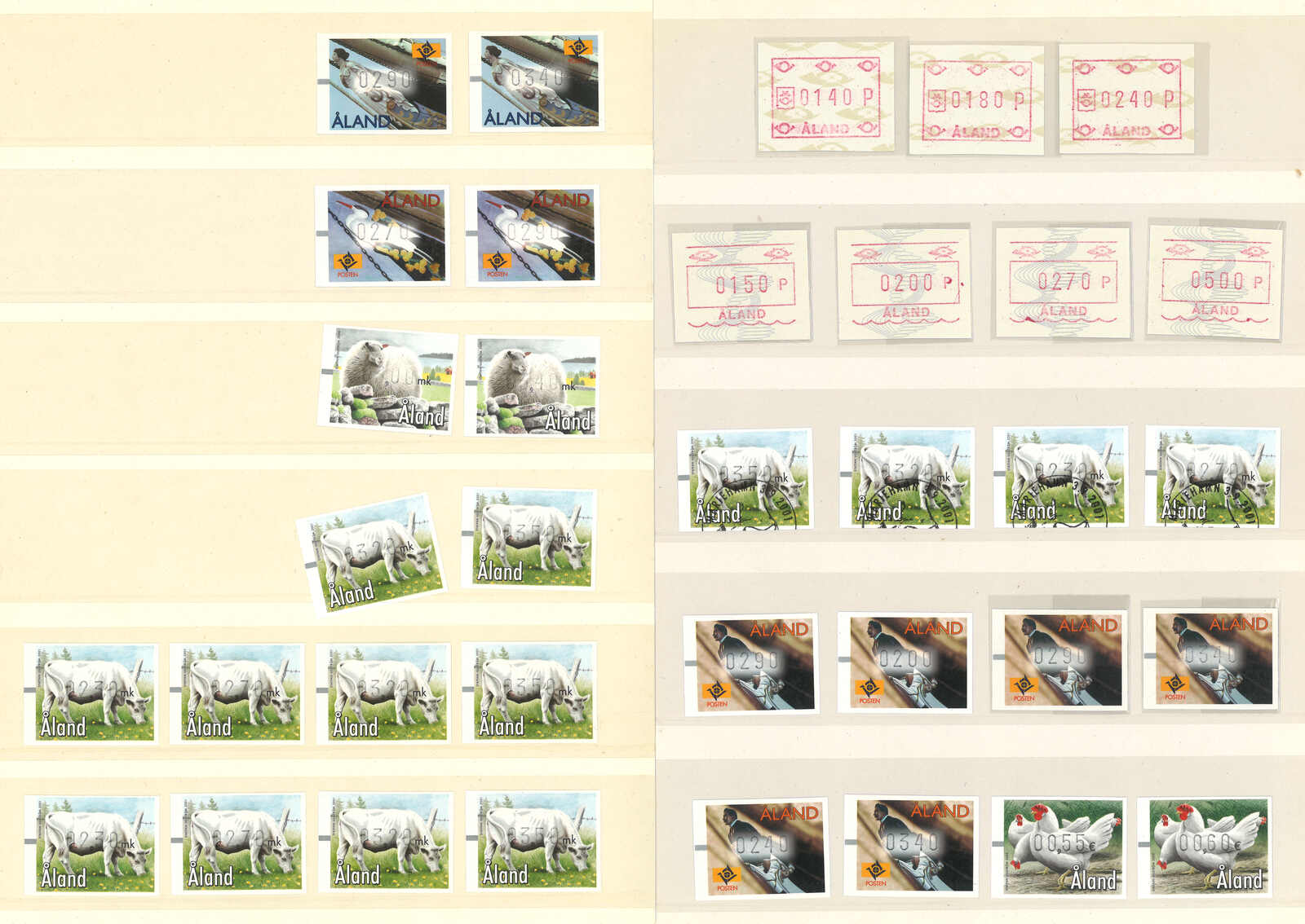 3480 **/cover image1988-2002 a collection of Aland ATM stamps, containg about 100 stamps and 14 covers, ranging from “Postal Emblem” to later animal issues. Please view. Situated in a Finnish archipelago, Åland is an autonomous and demilitarised region of Finland.
