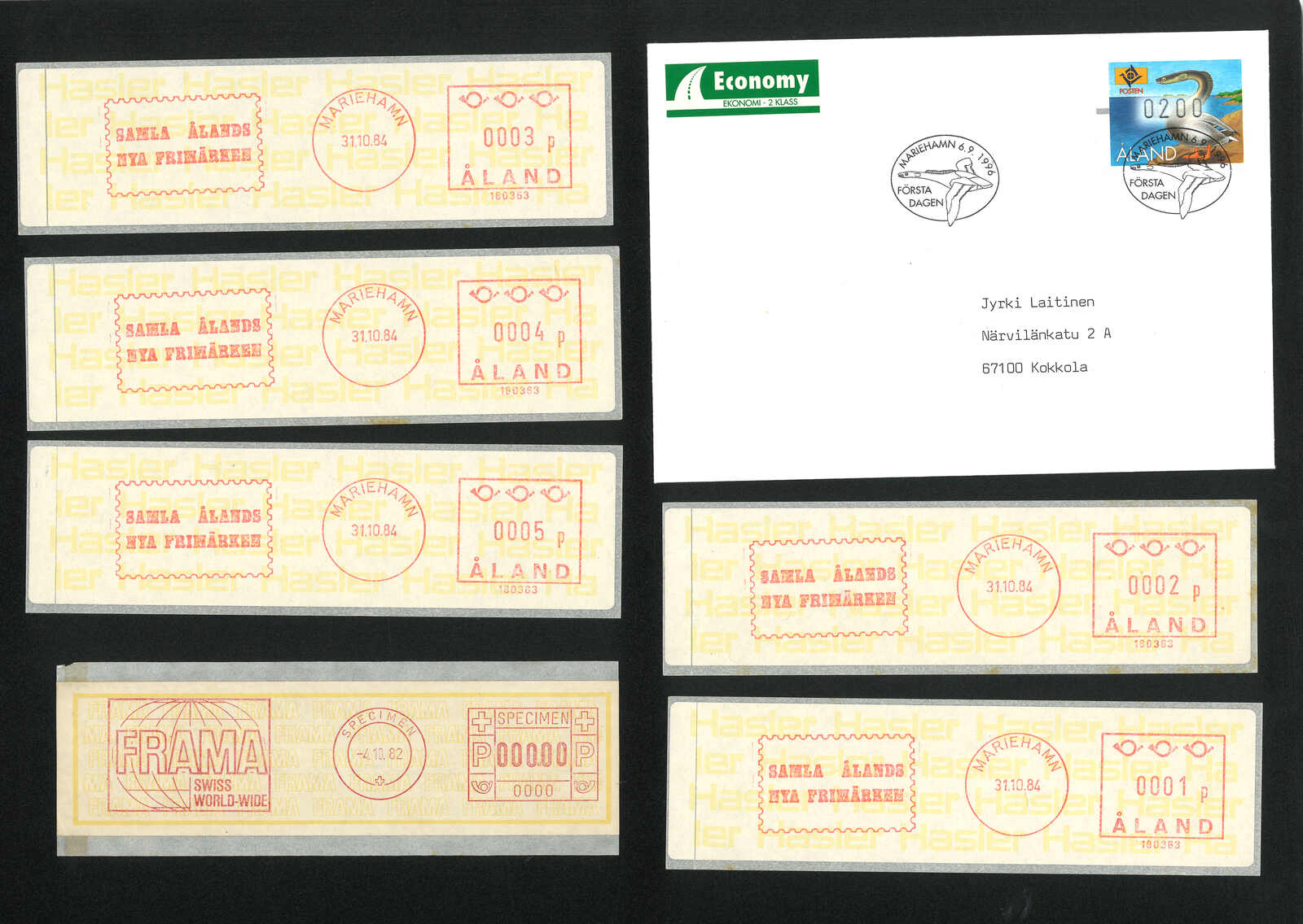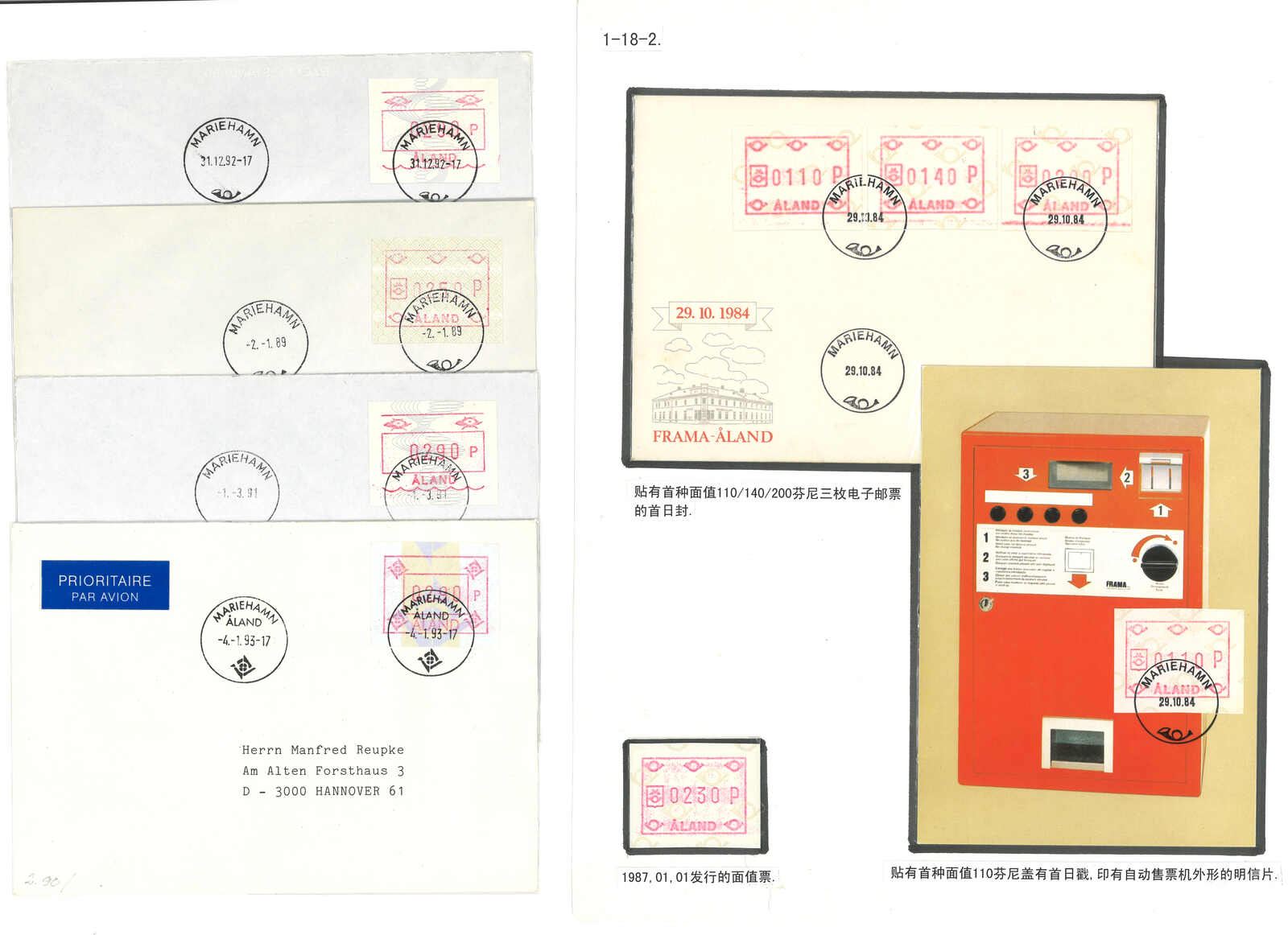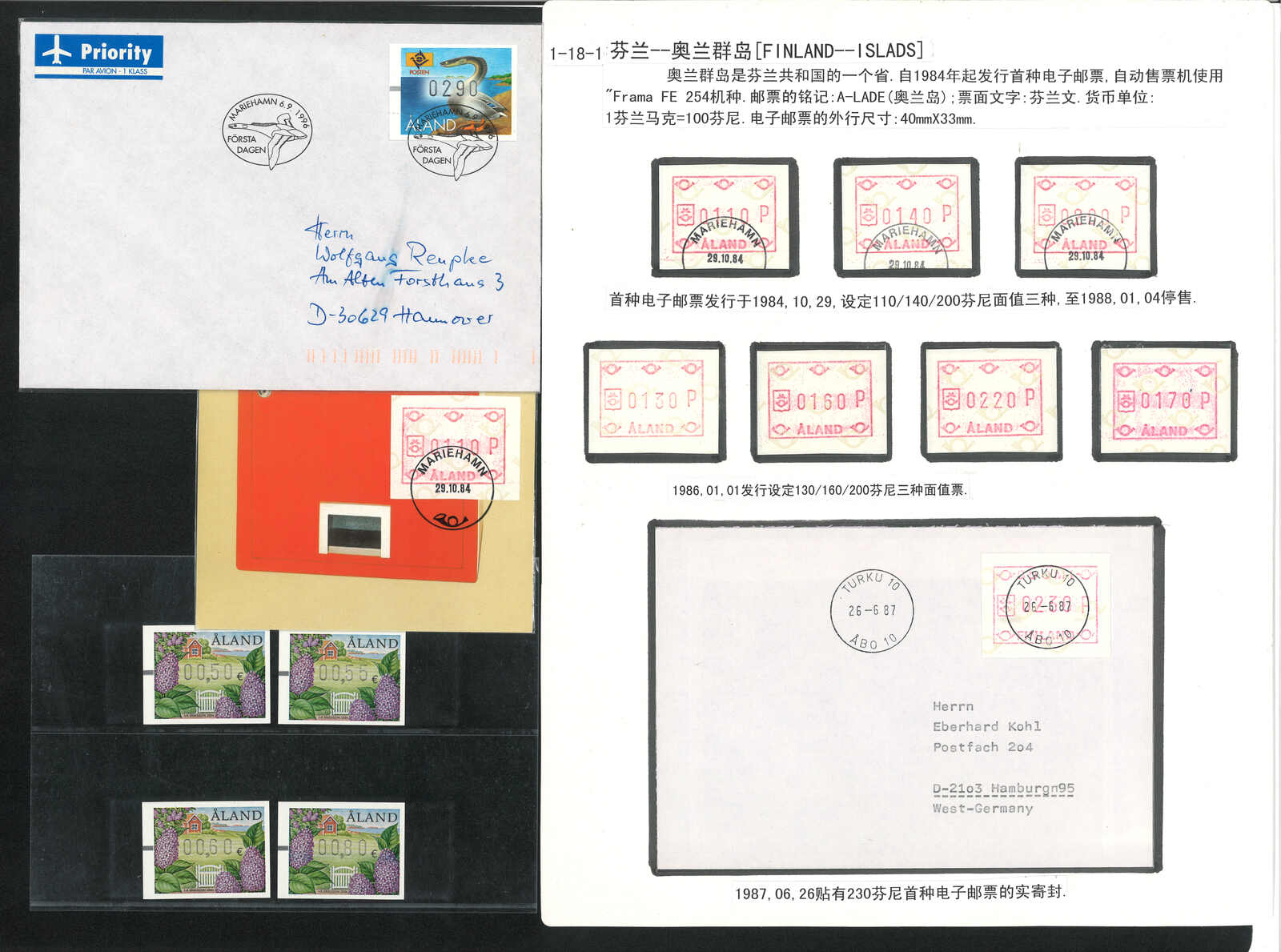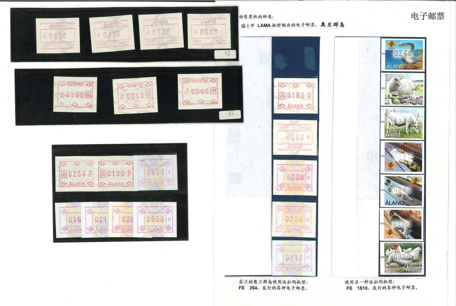 3480 **/cover image1988-2002 a collection of Aland ATM stamps, containg about 100 stamps and 14 covers, ranging from “Postal Emblem” to later animal issues. Please view. Situated in a Finnish archipelago, Åland is an autonomous and demilitarised region of Finland.