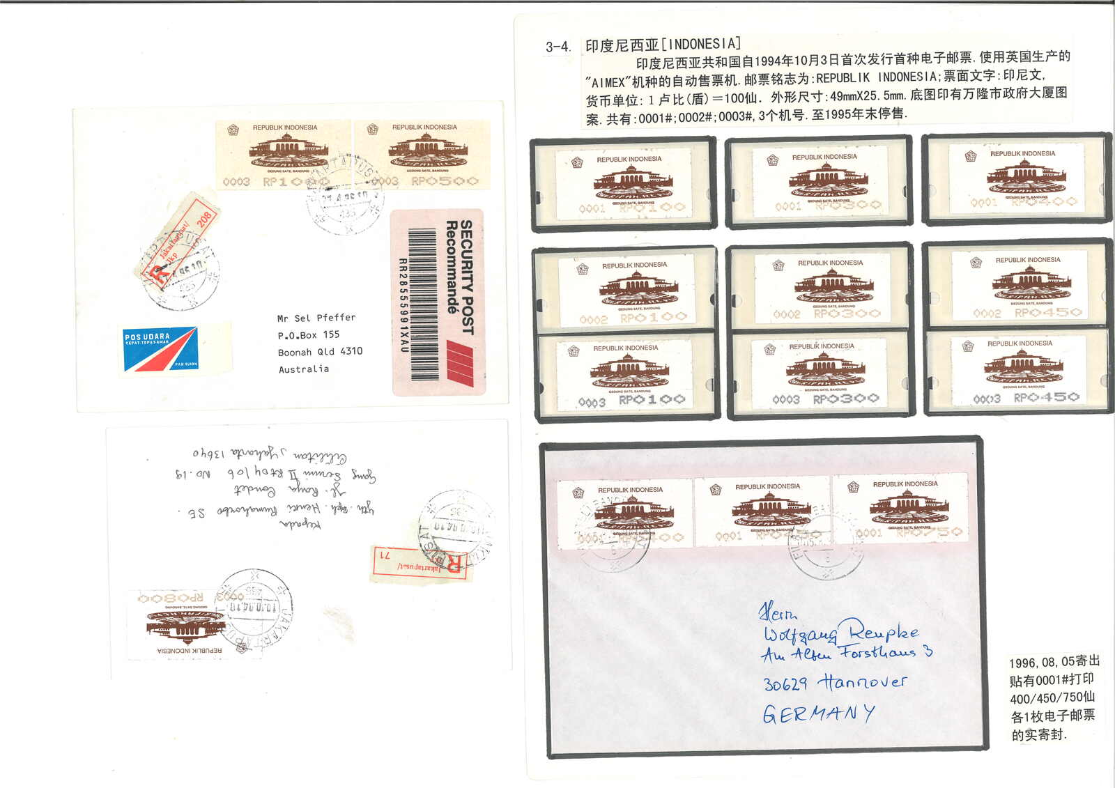 1994年印尼“沙爹大樓”電子郵票或信封(Mi Nr. 1),包括15枚不同面值新票及3件實寄封。目錄價格高。(Image 1) (Image 2)