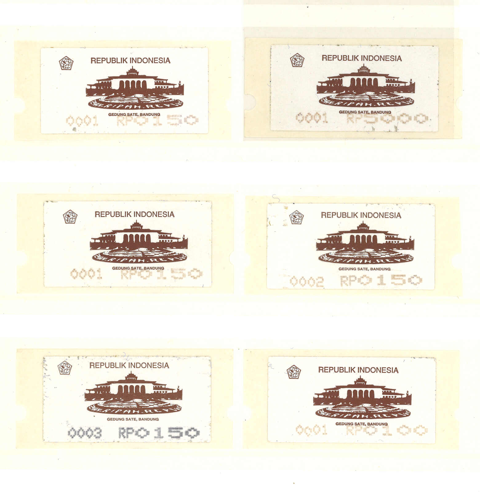 3451 cover image1994 Indonesia “Gedung Sate” ATM stamp and cover (Mi Nr. 1), including 15 mint stamps in different denominations and 3 commerically used cover. High catalogue price.