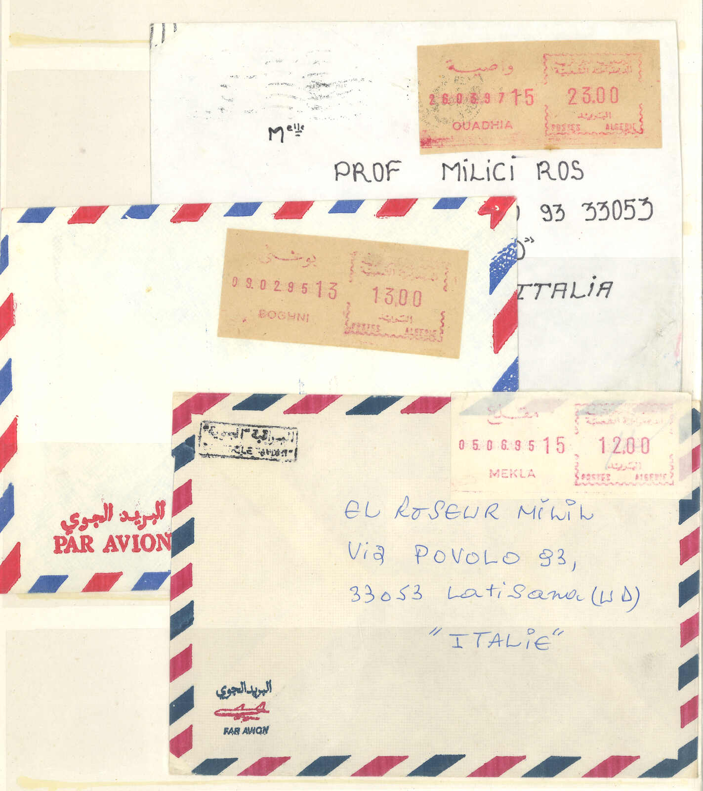 1980至1990年代一組十四件貼用郵資標籤之阿爾及利亞封。(Image 1) (Image 2) (Image 3) (Image 4)