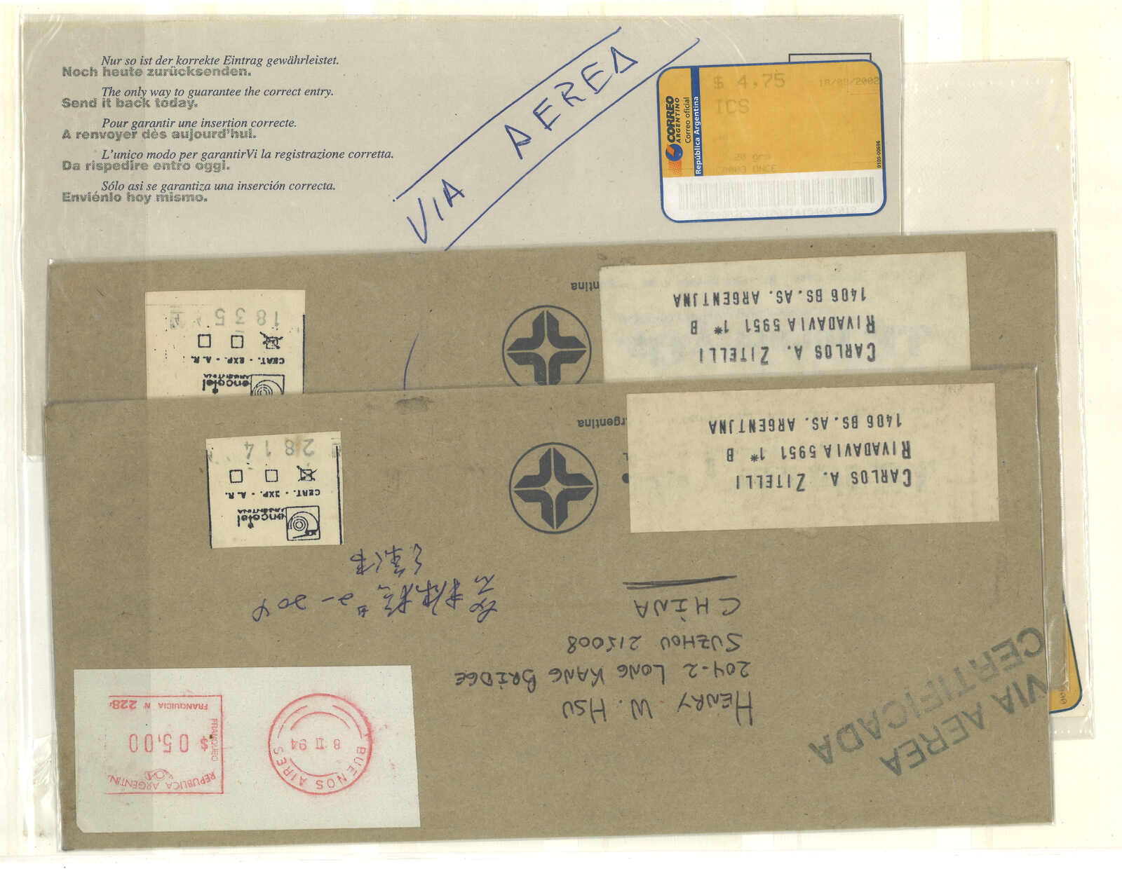 3534 cover image1999 (26 May) Argentina “Red Mail Box” $0.75 ATM stamp cover to Germany, alongside with Argentina Post postage label, tied by Plaza San Martin cds. Plus two Argentina coves applied with postage label(Image 1) (Image 2)