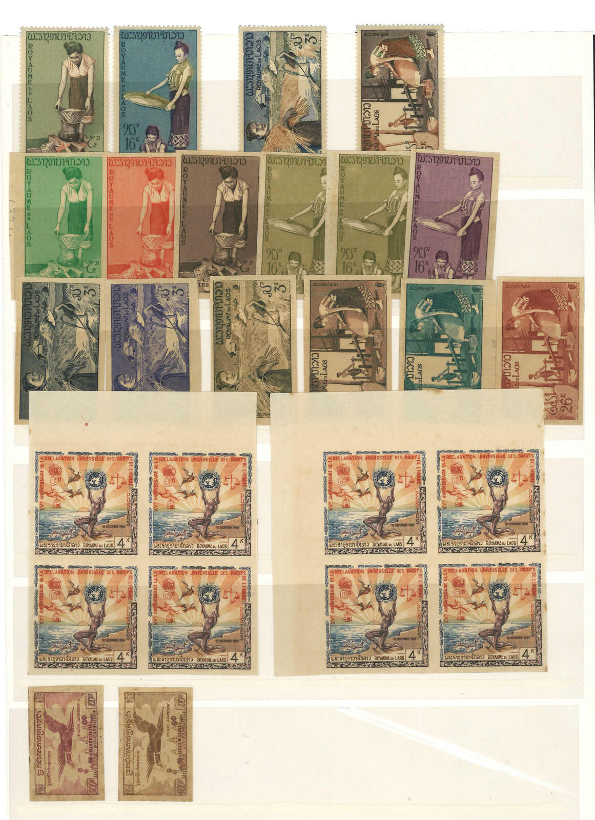1960年代一組五套老撾豪華試印張、無齒票及新全,包括種米、人權宣言十五週年等。無貼微黃。(Image 1) (Image 2)