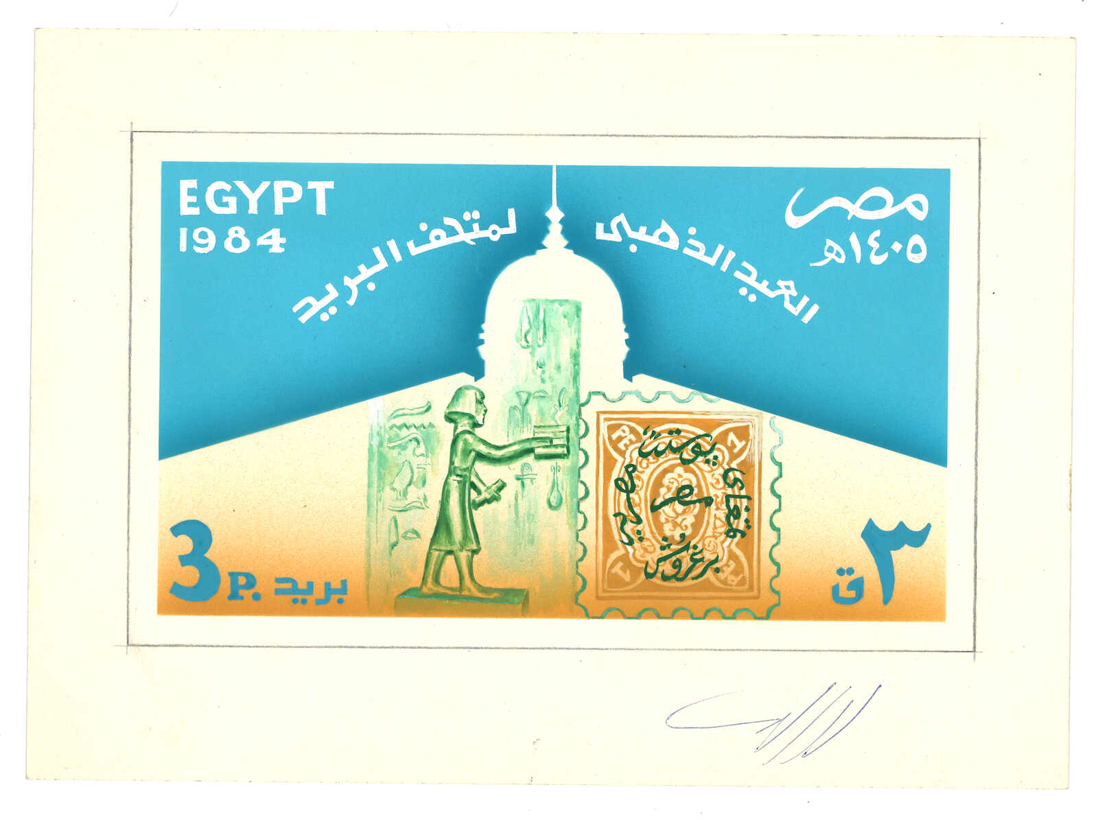 454 image1984 Egypt 3p design artwork, with designer signature (size: 24 x 26 cm).