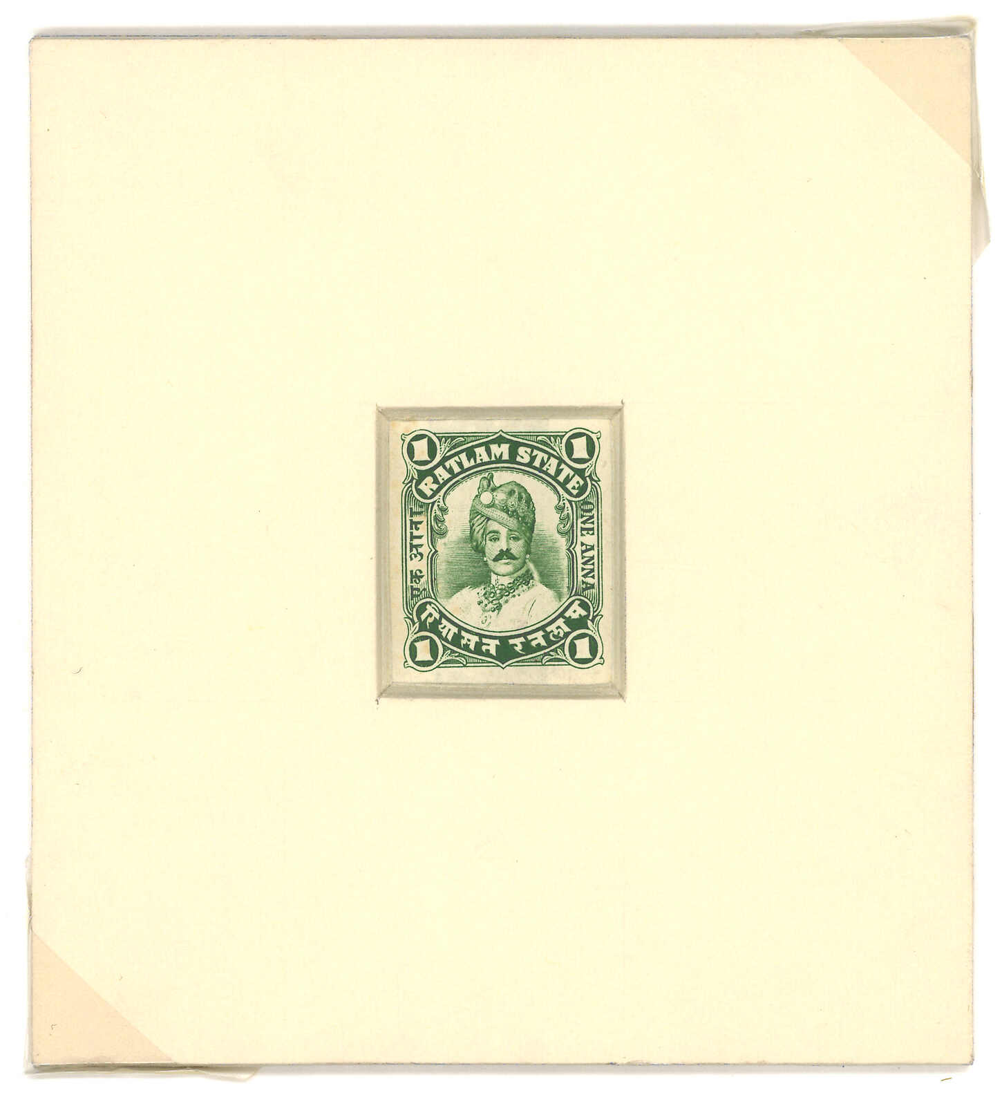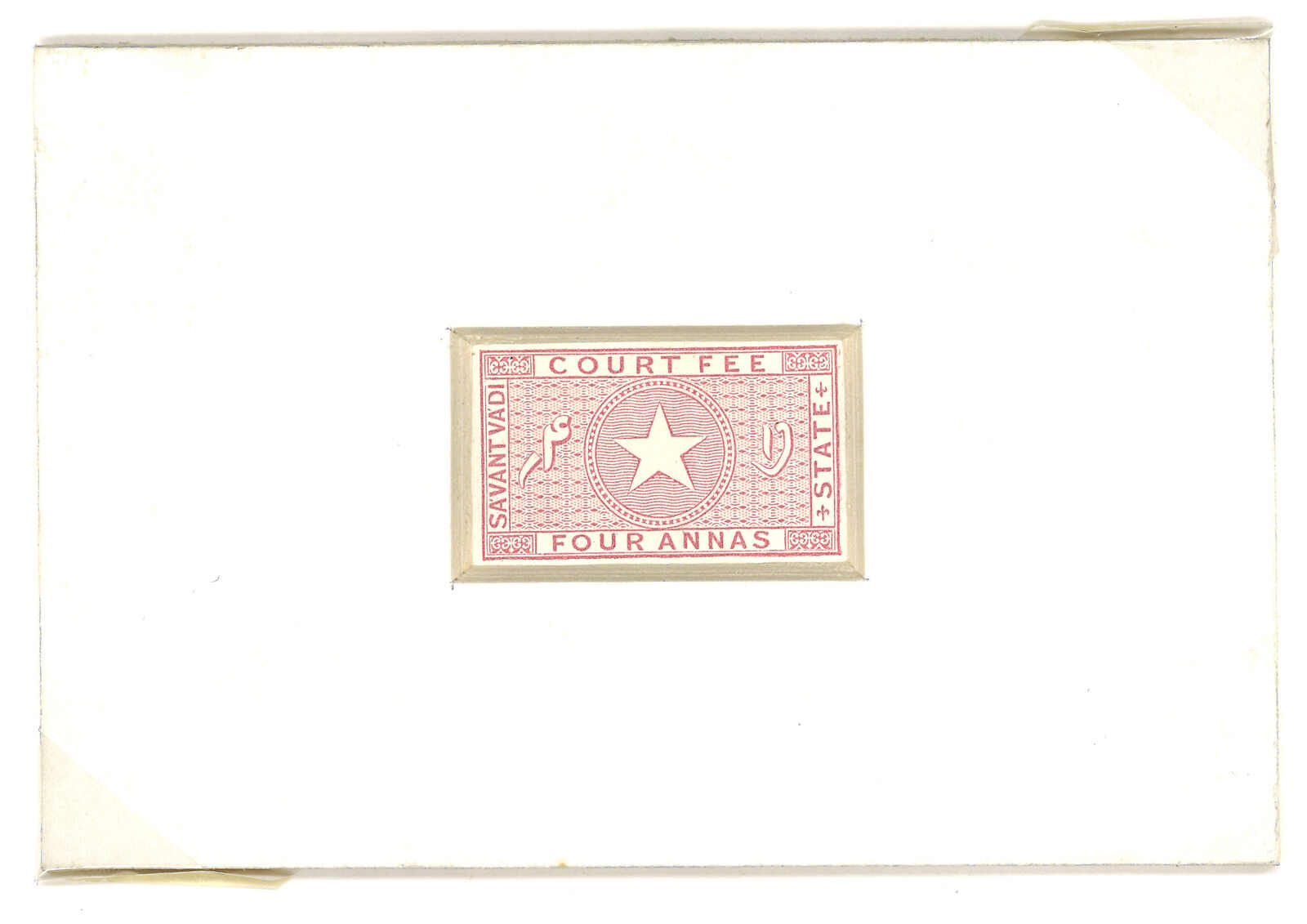 印度拉特拉姆邦1安娜、瓜廖爾土邦1安娜及薩萬特瓦迪爾土邦法庭票1安娜試印票,貼於硬卡上。(Image 1) (Image 2) (Image 3)