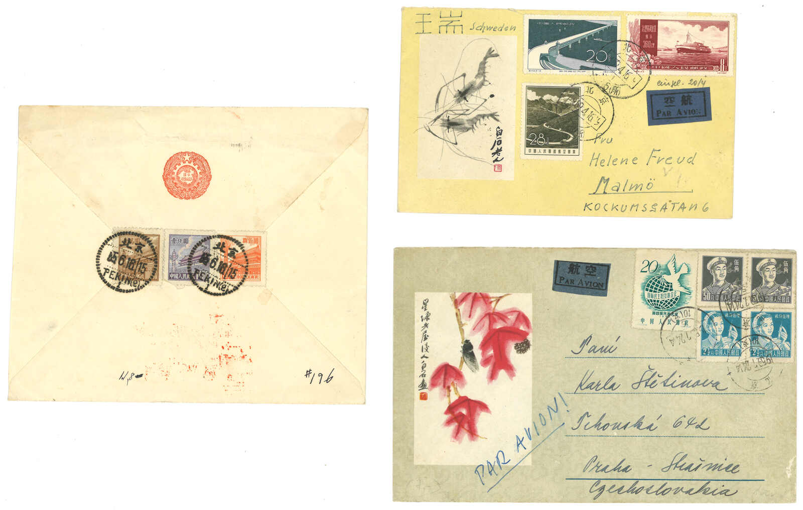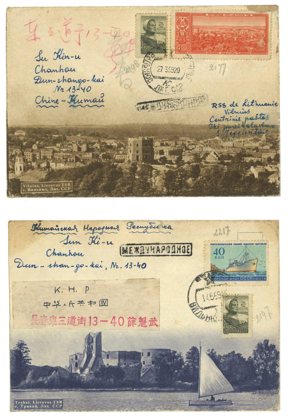 1950年代一組六件蘇聯寄中國進口封,貼各式蘇聯票,當中四件帶有美術圖案。兩件寄自立陶宛,少見之始發地。(Image 1)