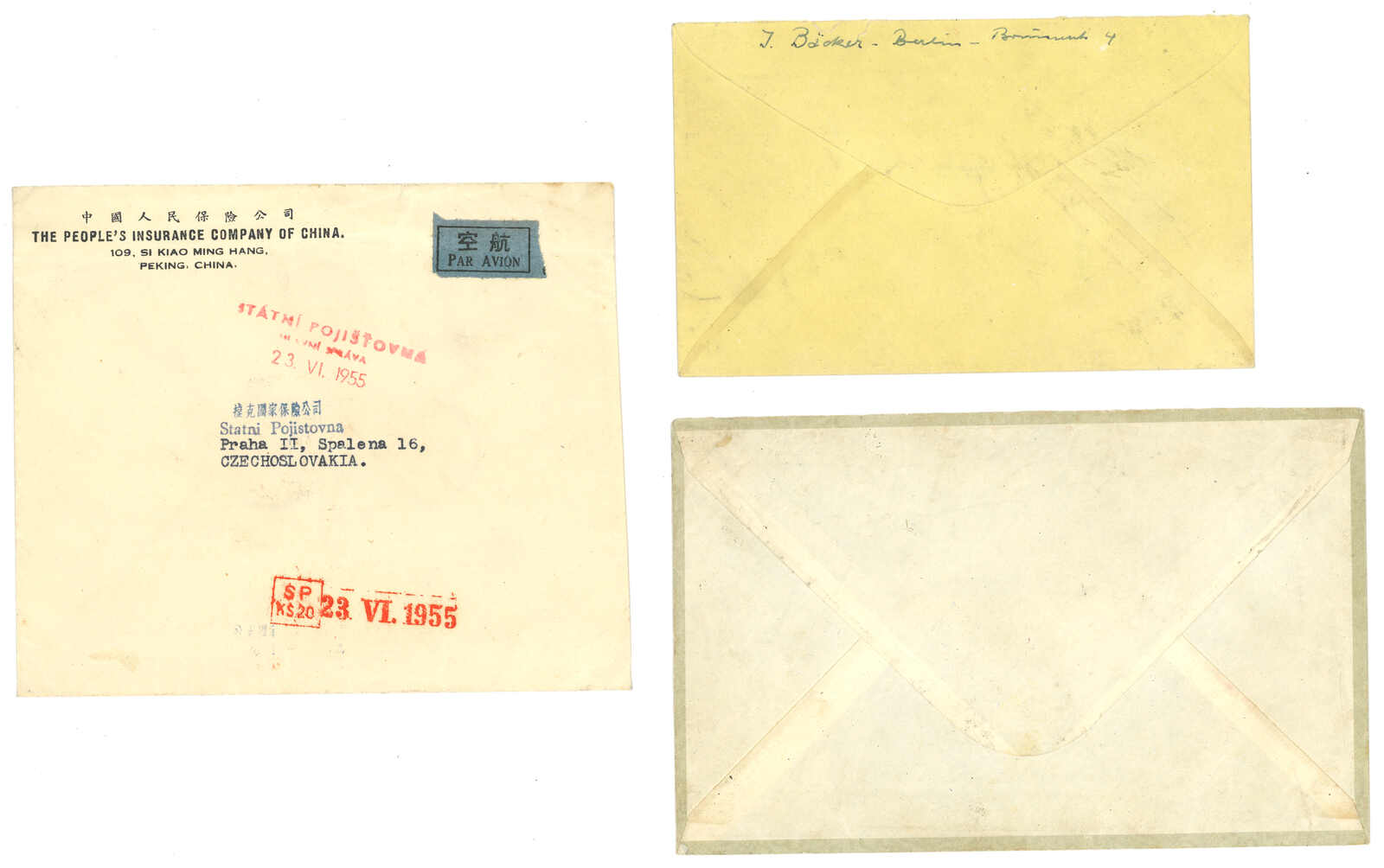 1959 a pair of illustrative covers from Peking to Czechoslovakia, both f.w. C50 Kuan Han Ching 8f + R8 odd values, tied y Peking cds.