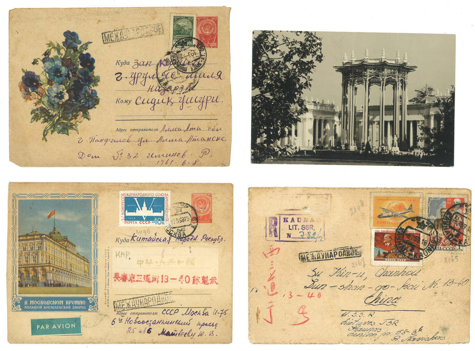 1950s a group of 6 incoming covers and postcards from USSR to China, f.w. various USSR issues. Four covers with illustrative images. Two covers sending from Lithuania. Rare origin.