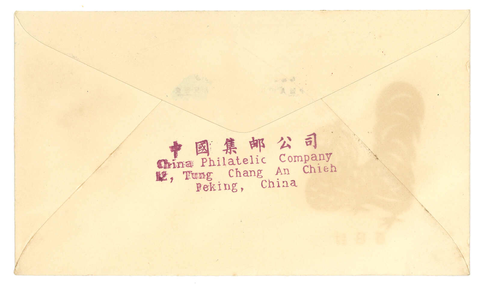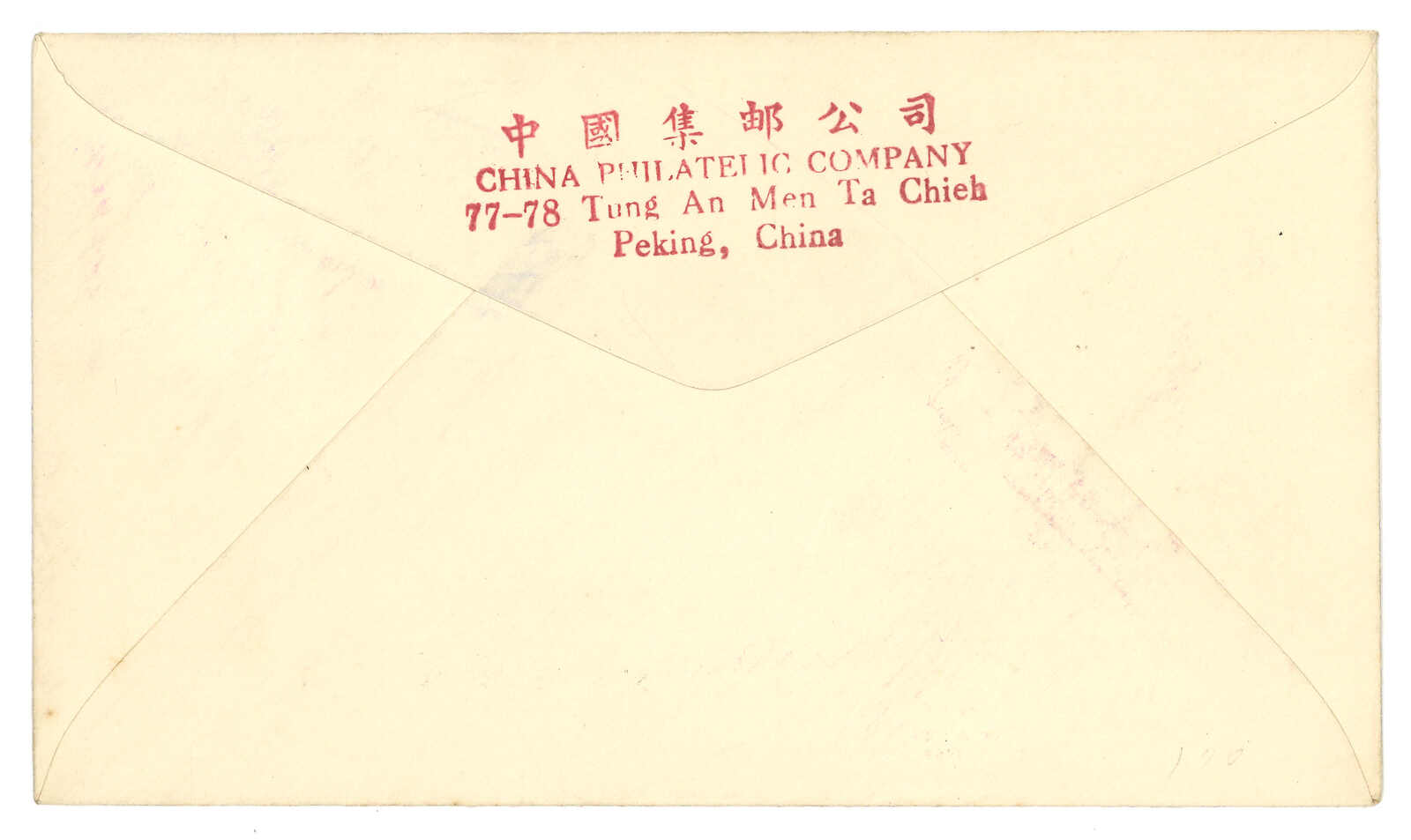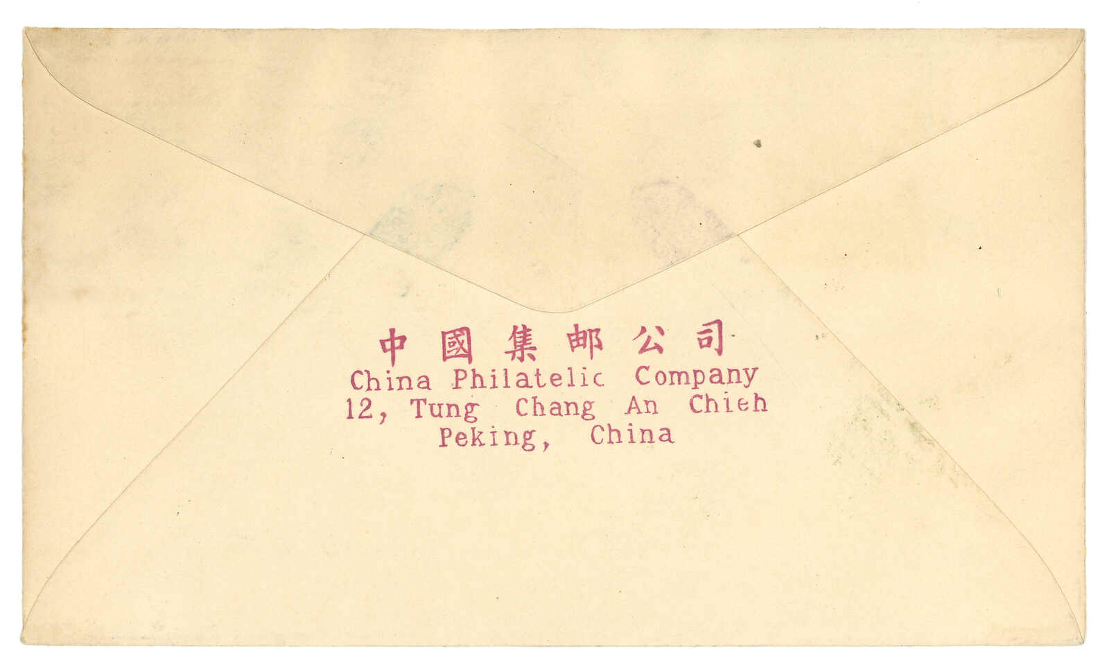 中國集郵公司首日封寄日本郵趣協會,銷紀念日戳,旁鈐北京日戳。(Image 1)