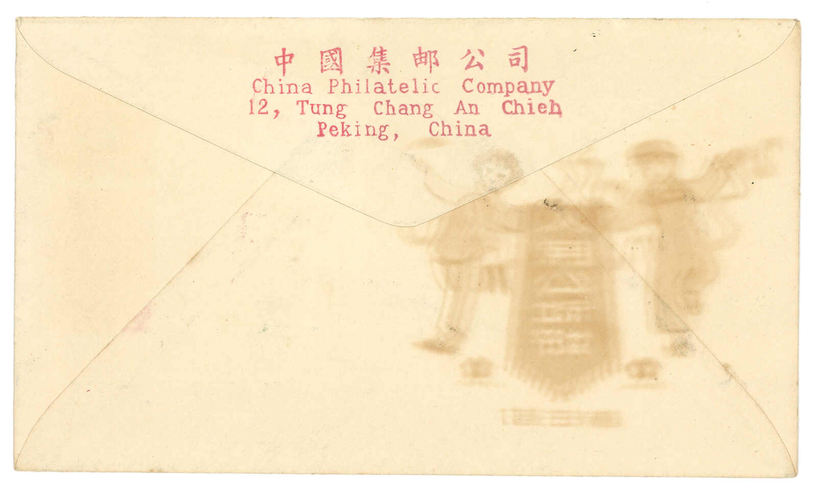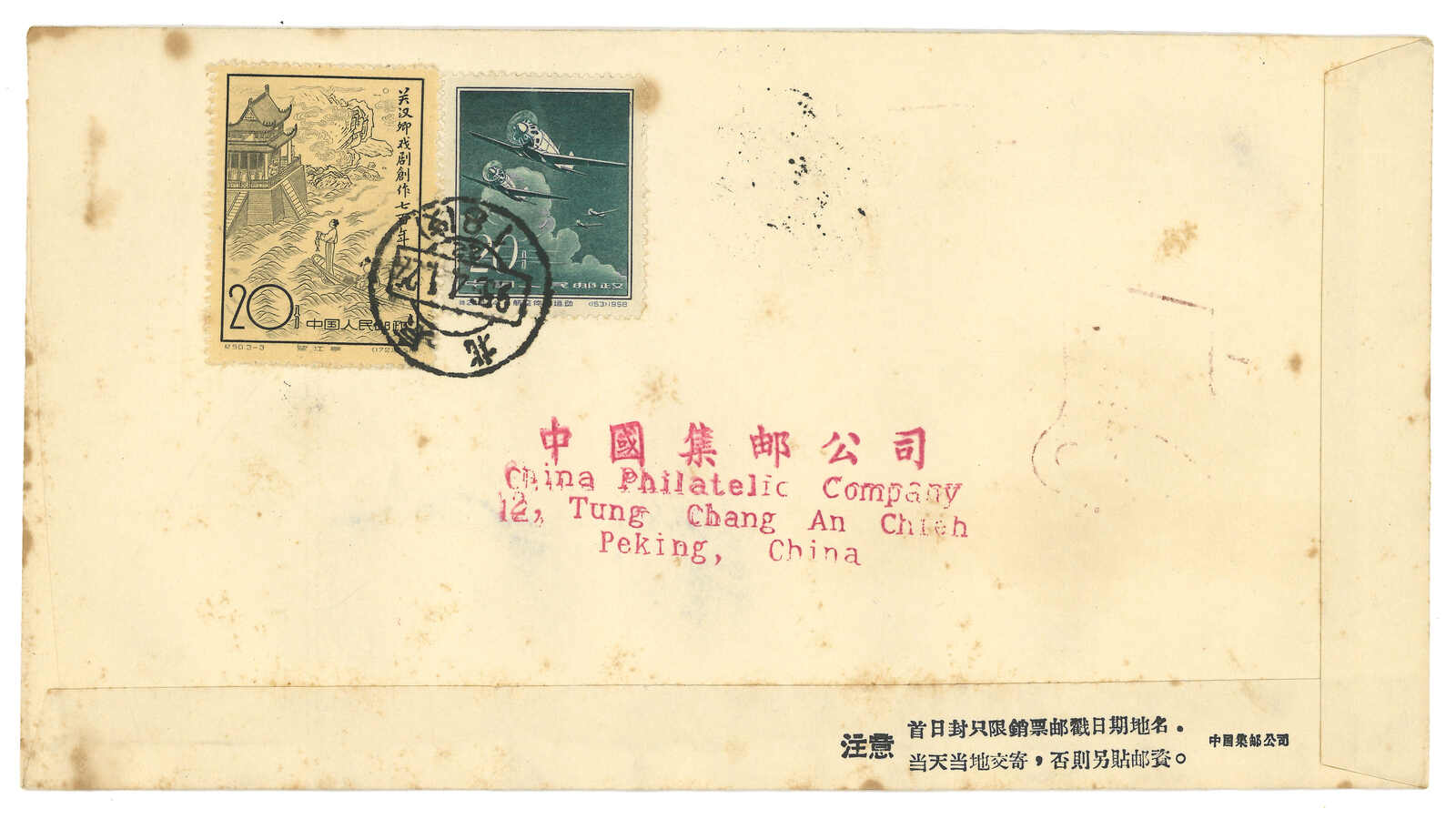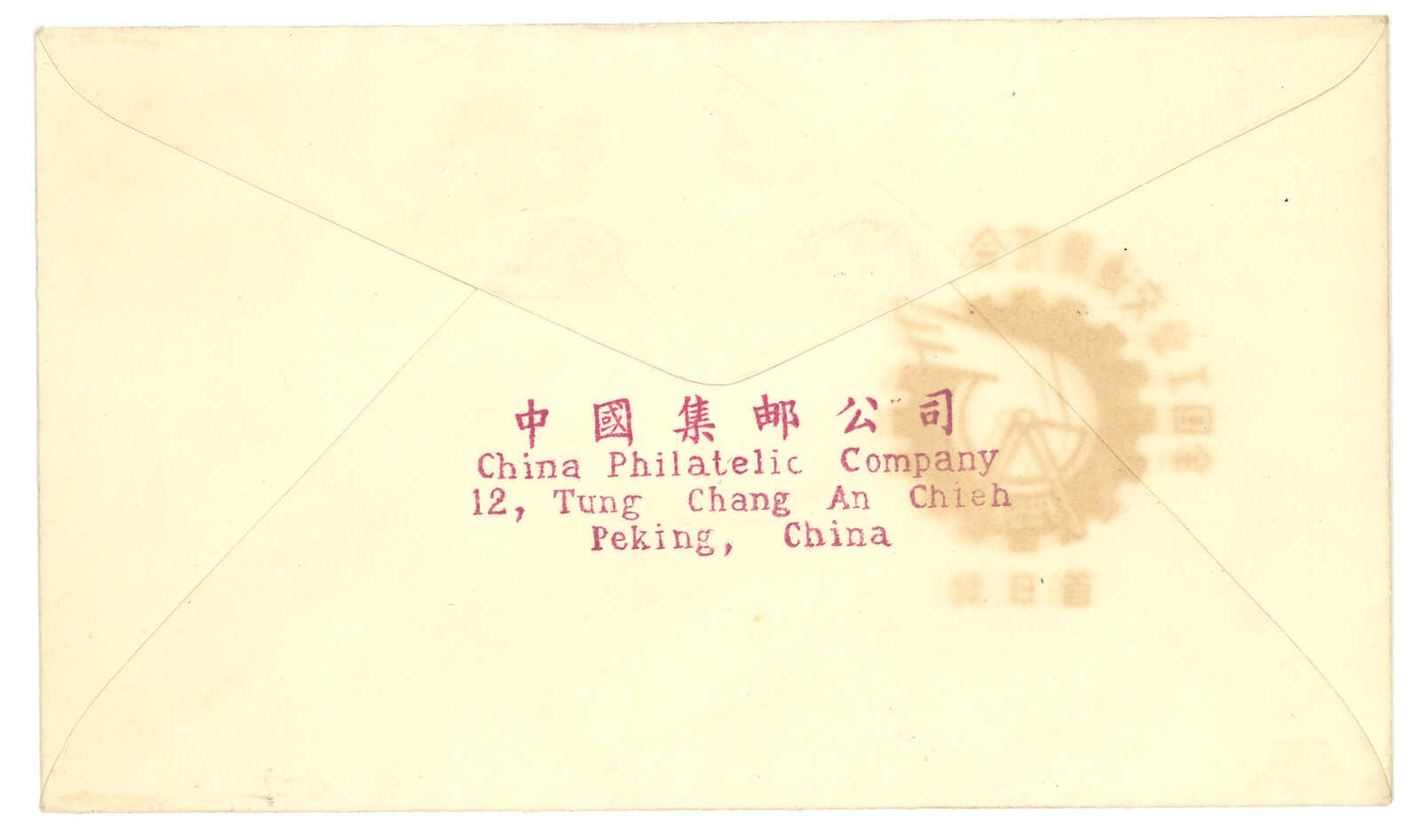 中國集郵公司首日封寄日本郵趣協會,銷紀念日戳,旁鈐北京日戳。(Image 1)