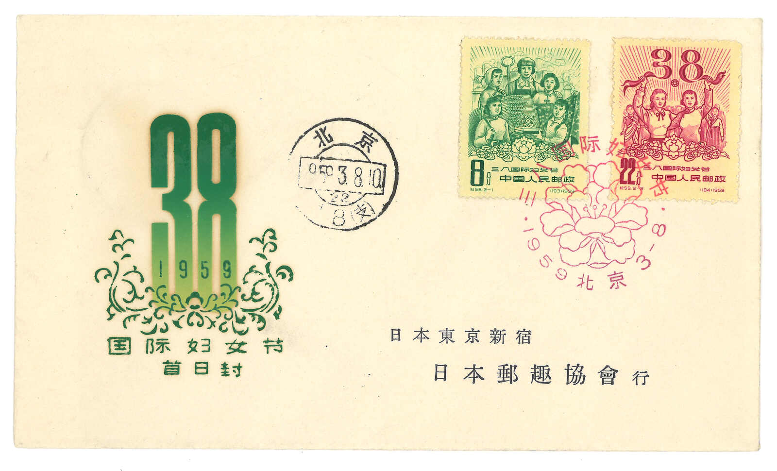1959 (8 Mar) C59 International Women’s Day - China Philatelic Company FDC to Japan Philatelic Co, f.w. complete set of 2, tied by commemorative d.s., alongside with Peking cds.