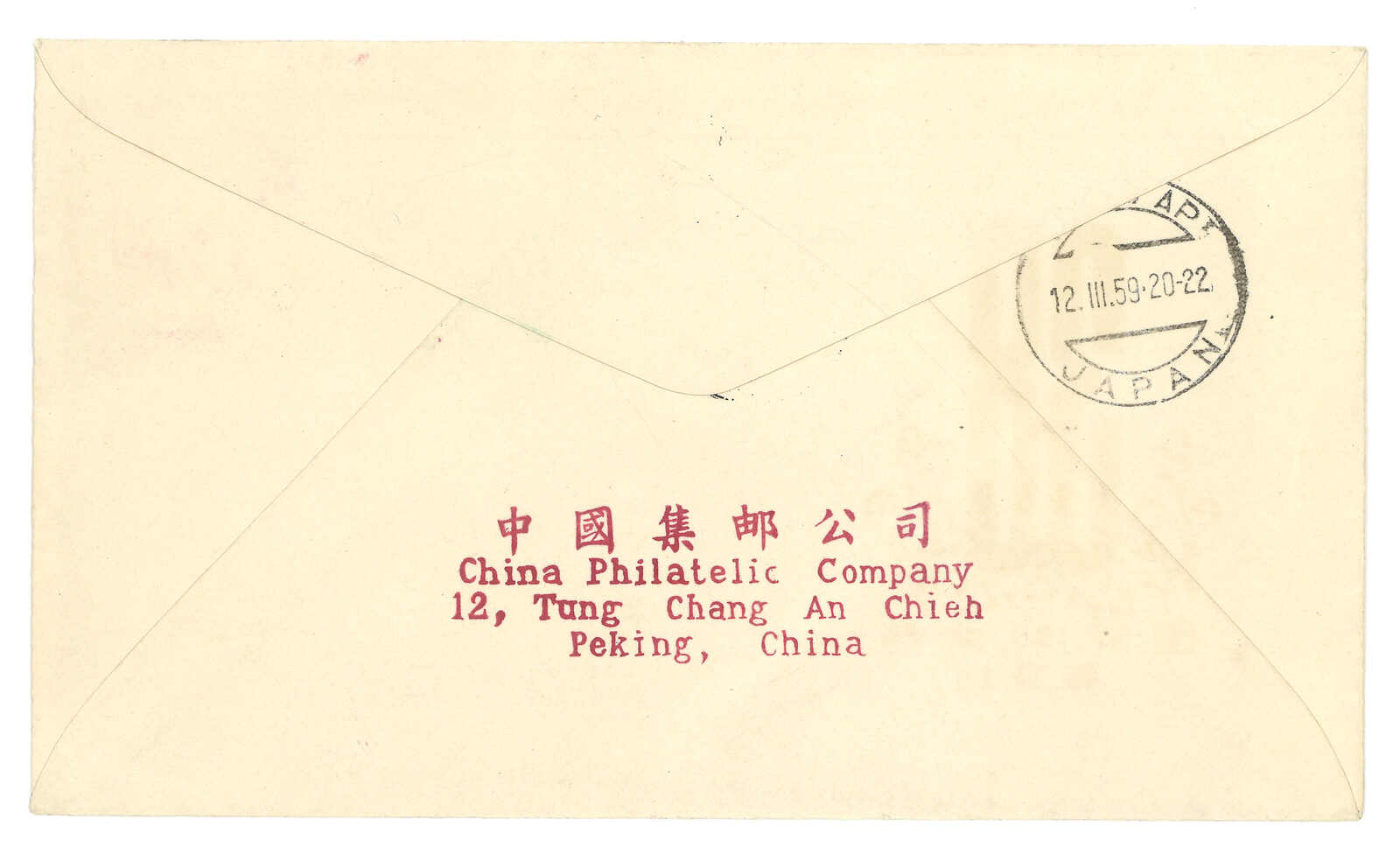 1959 (25 Sep) S35 People’s Communes - China Philatelic Co FDC to Japanese Philatelic Society, f.w. complete set of 4, tied by commemorative d.s.