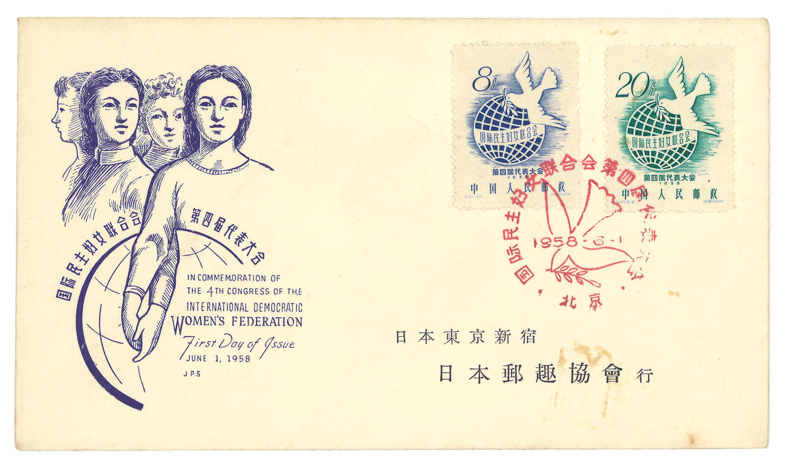 1958 (1 Jun) C49 Women’s Federation Congress - China Philatelic Co FDC to Japanese Philatelic Society f.w. complete set of 2, tied by commemorative d.s.