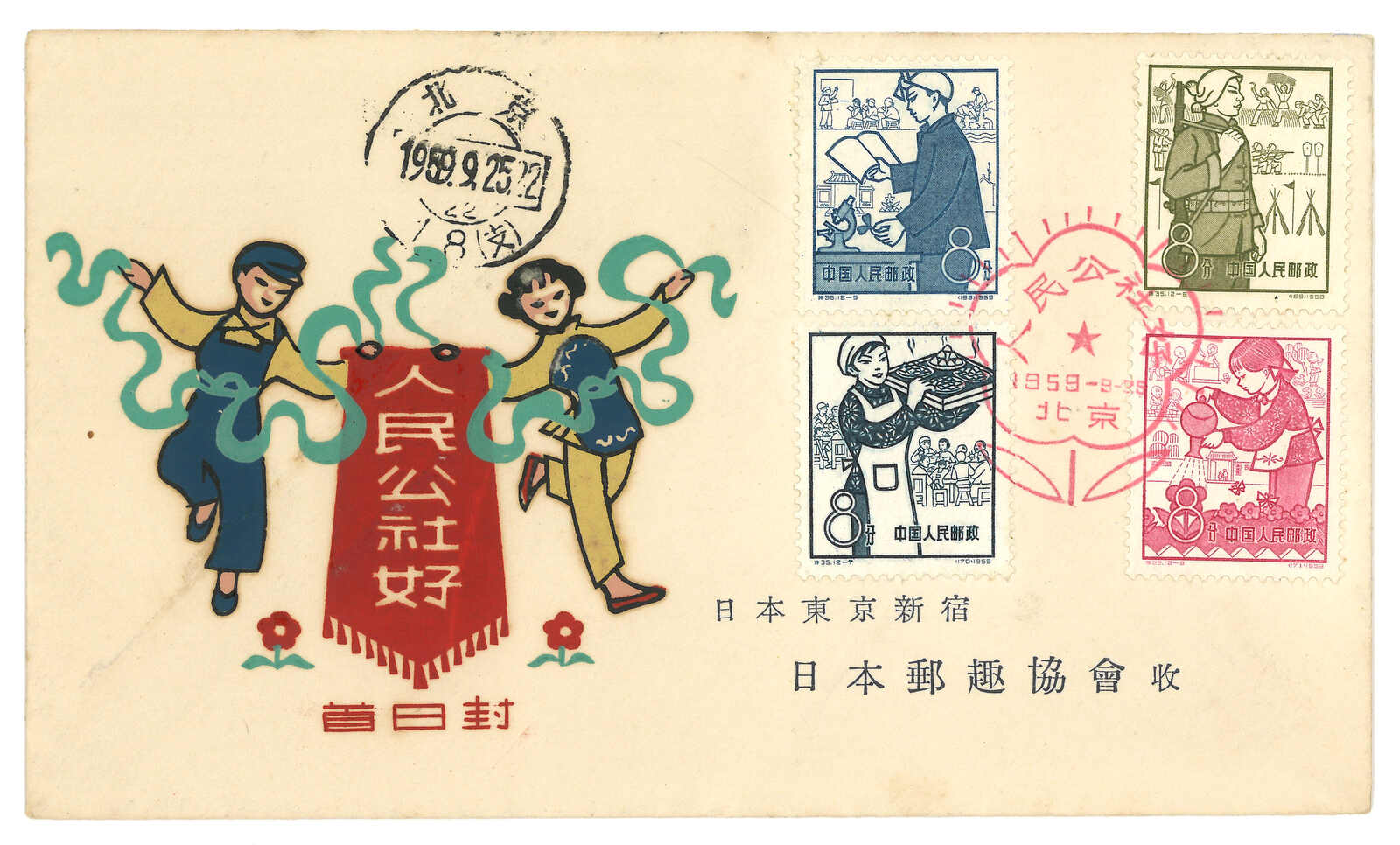 1959.9.25 特35人民公社 - 中國集郵公司首日封寄日本郵趣協會,銷紀念日戳。(Image 1)