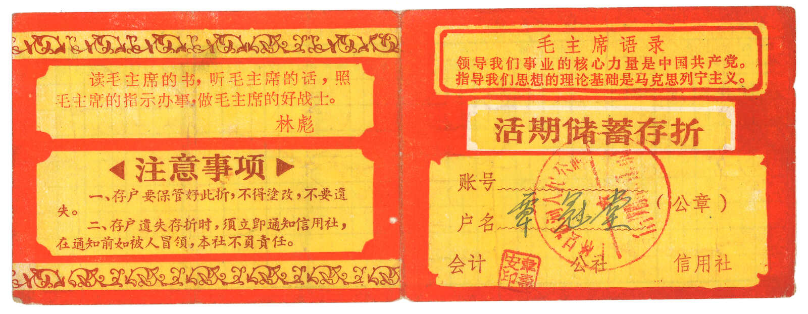 1960年代一組各式文革時期民間文件、刊物及銀行存摺。趣味十足,歷史意義非凡。(Image 1)