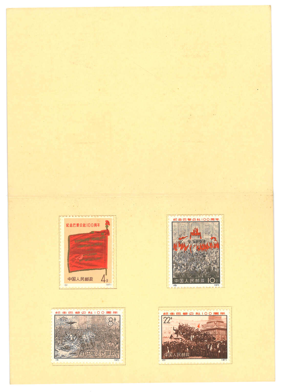 1971年N8-11巴黎公社新全,貼於日本中國文化交流協會紀念郵折。(Image 1)