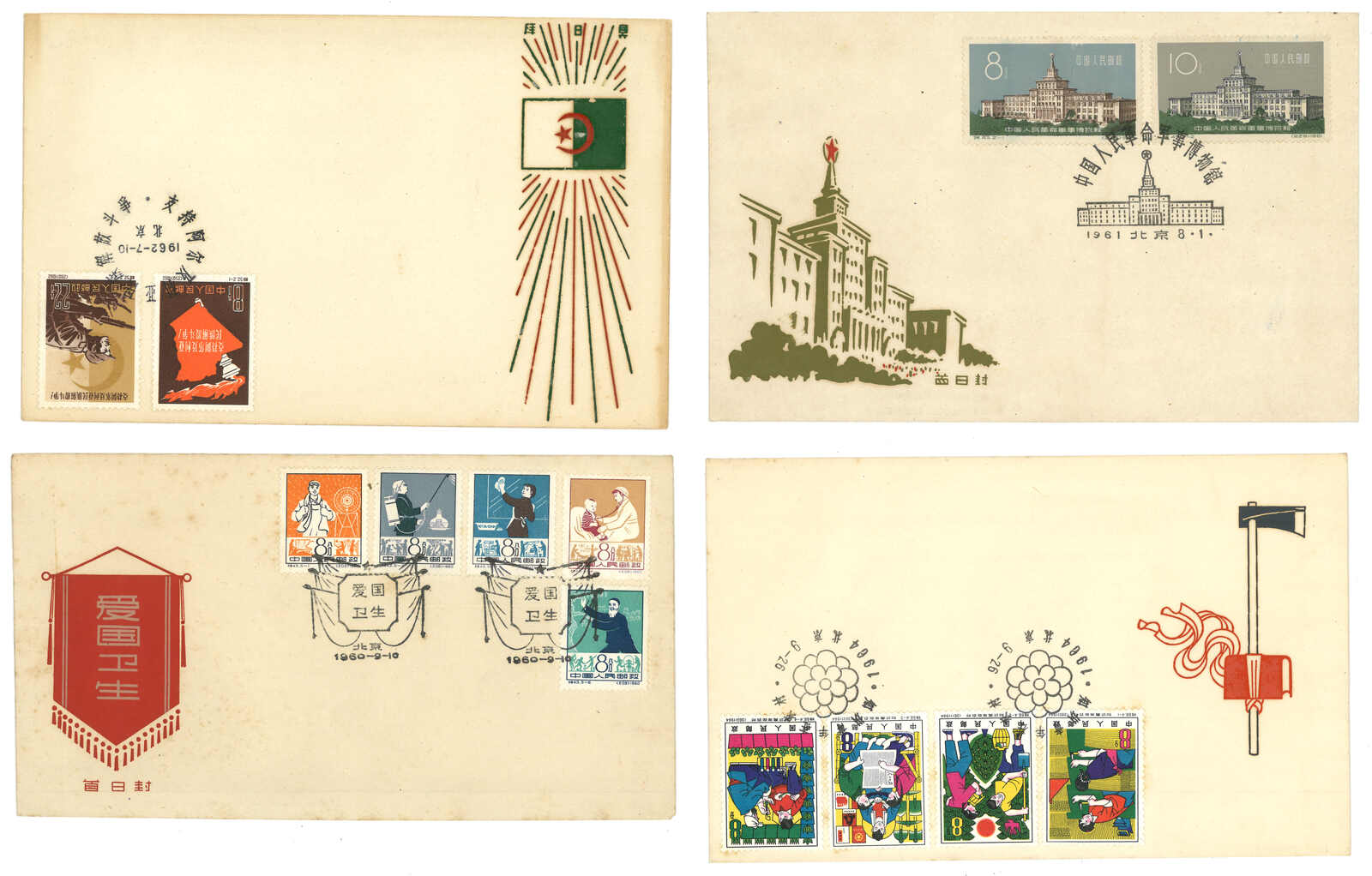 1958至1965年一組十件紀票中國集郵公司首日封,包括紀45、紀49、紀55、紀65、紀78、紀83(兩件)、紀91、紀93及紀114,銷紀念日戳,無地址。(Image 1)