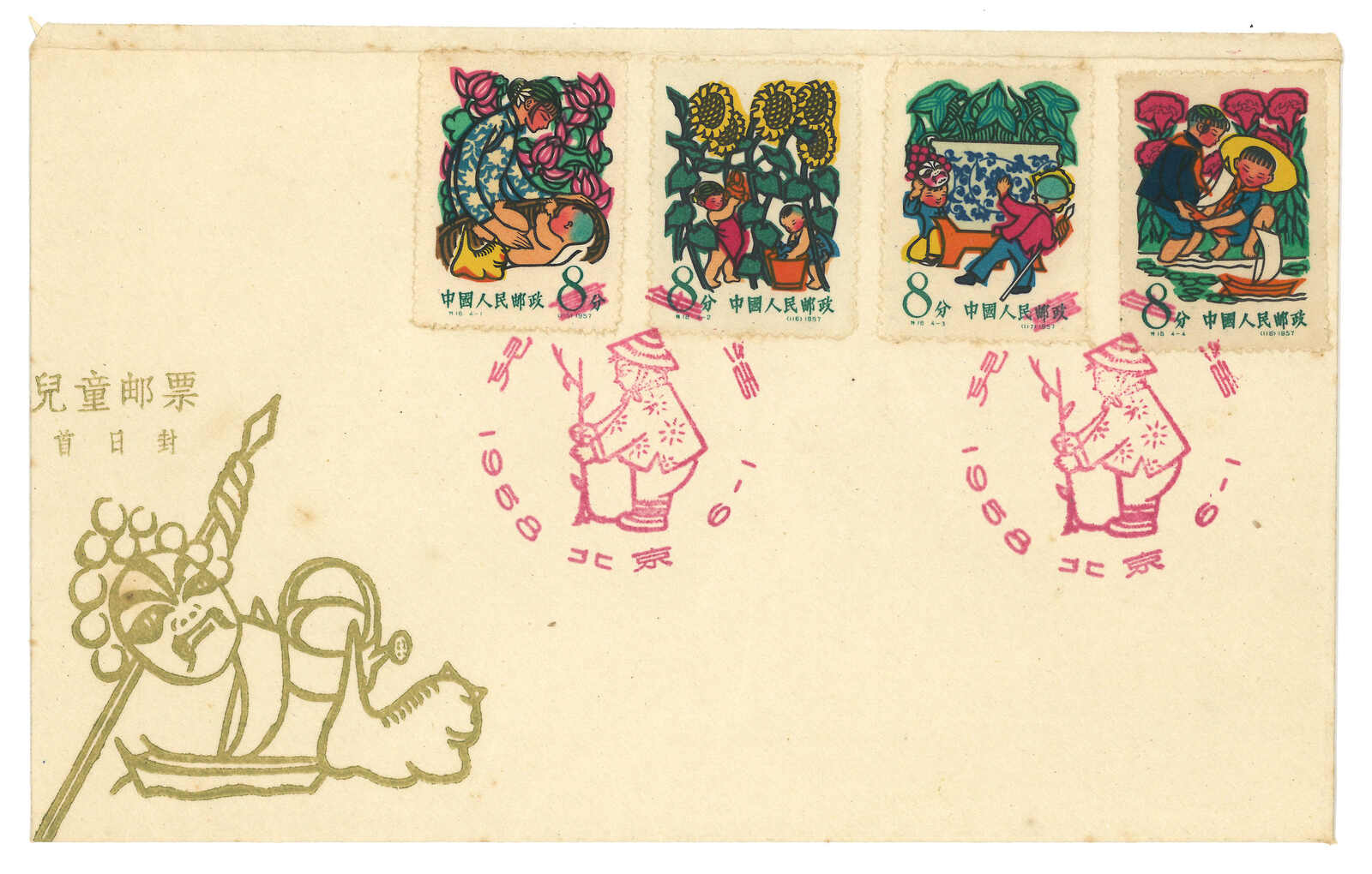 中國集郵公司首日封一套2件,寄日本郵趣協會,銷紀念日戳,旁鈐北京日戳。(Image 1)