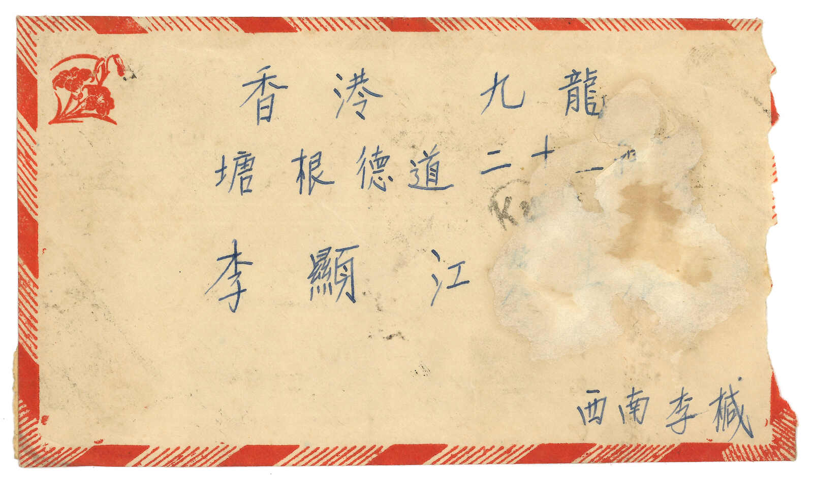 1949.4.10 西南寄香港,以釘書機釘上印花稅票改值金圓3元十五方連2件 + 單貼10元,合100元, 銷西南三格英漢日戳。1949年4月1日至10日寄香港信函郵資之尾日封。(Image 1)