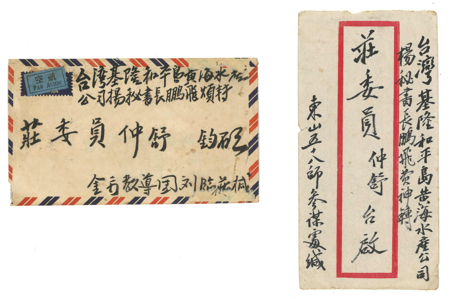 一對金門國軍寄基隆封,貼國內信函單位票、孫像銀圓及改值票,以戳邊滾銷或銷福建金門日戳。抵基隆。當中一件出自“東山五十八師”,日期為5月11日,正為解放軍登陸東山島之日。其後國軍殘部撤退至金門。出色之東山島戰役郵例。(Image 1)