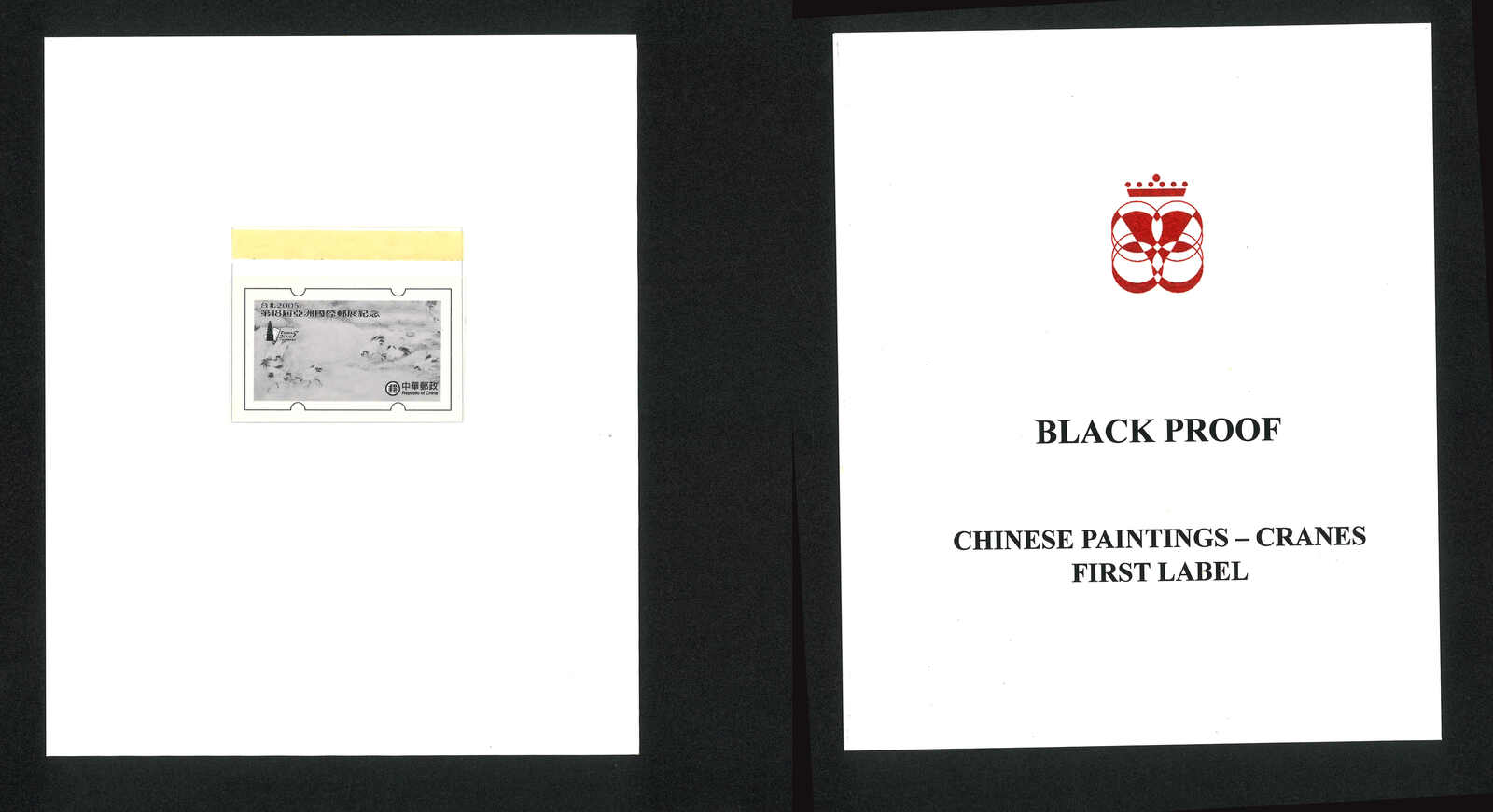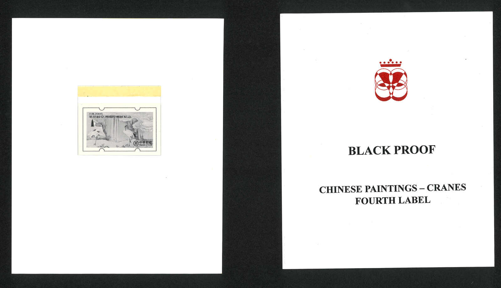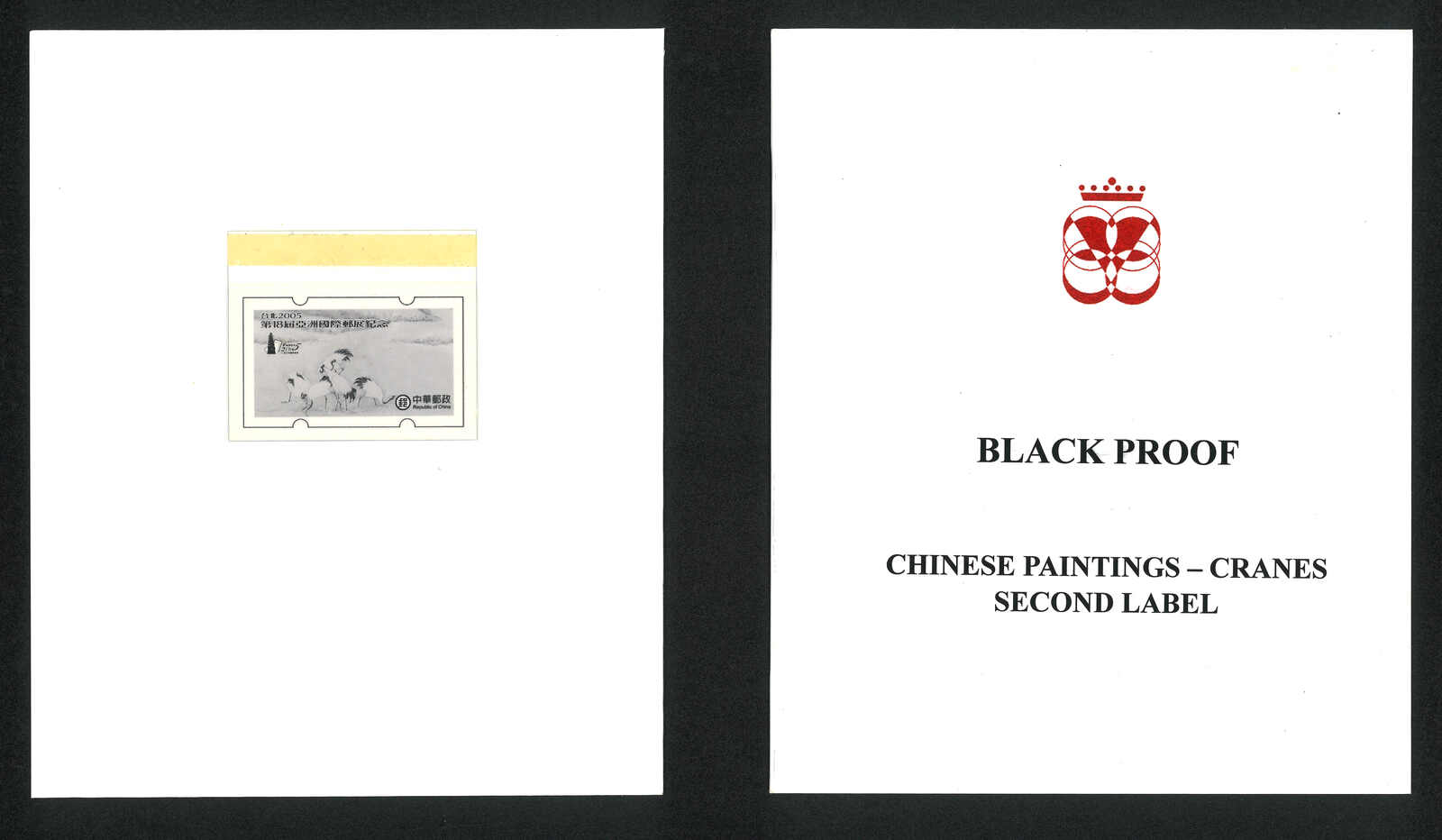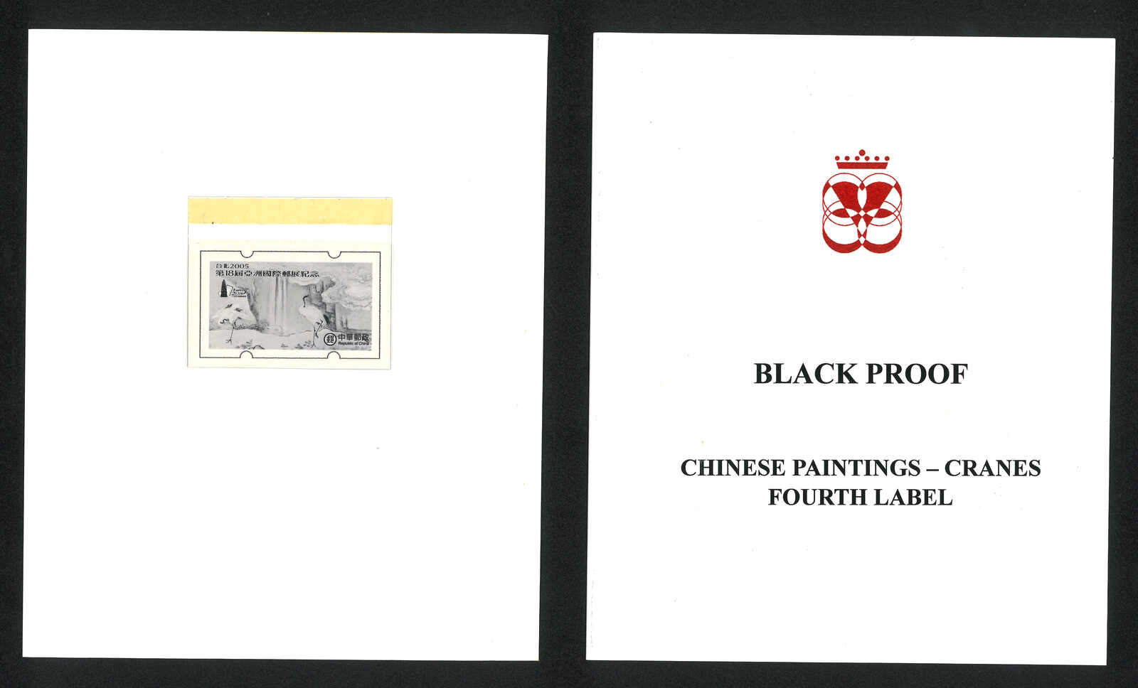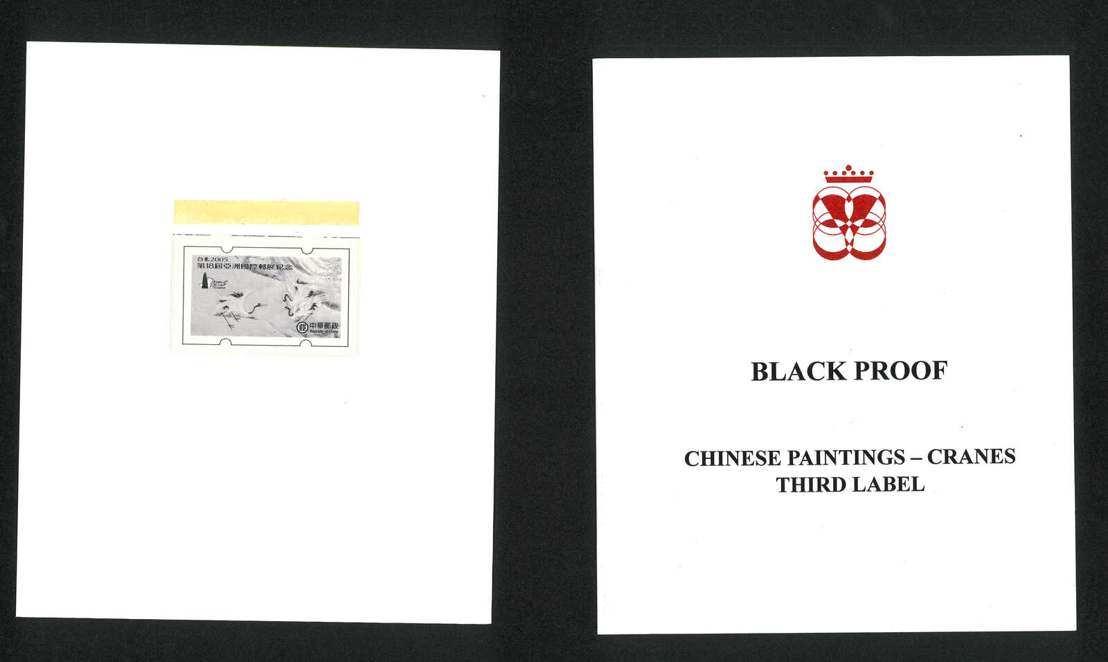 3425 ** imageTaiwan "Chinese Paintings - Carnes" ATM stamp black proof set of 4, with original folder of Dutch printer. Very scarce.