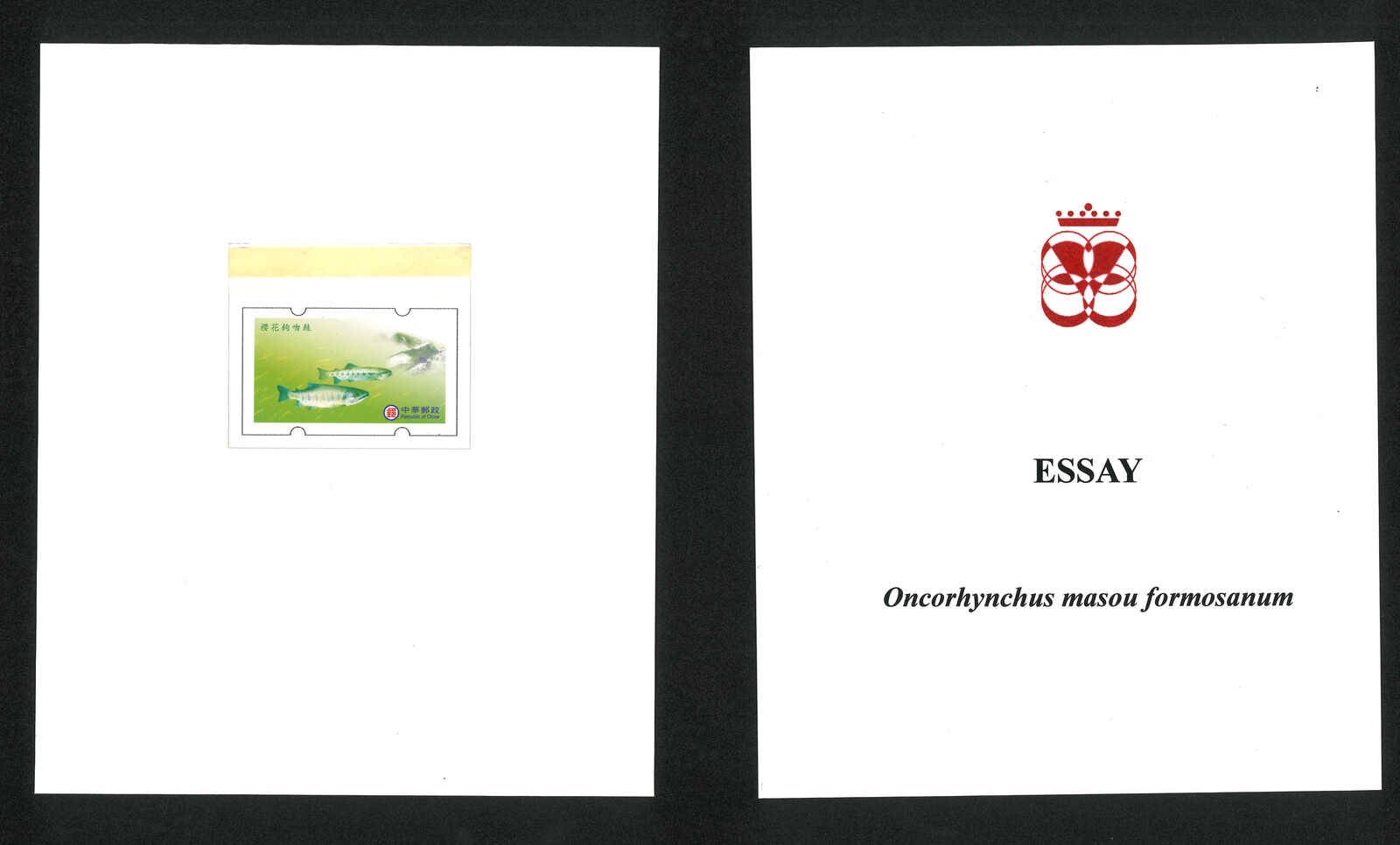 3426 ** imageTaiwan "Oncorhynchus masou formosanum" ATM stamp essay, with original folder of Dutch printer. Very scarce.