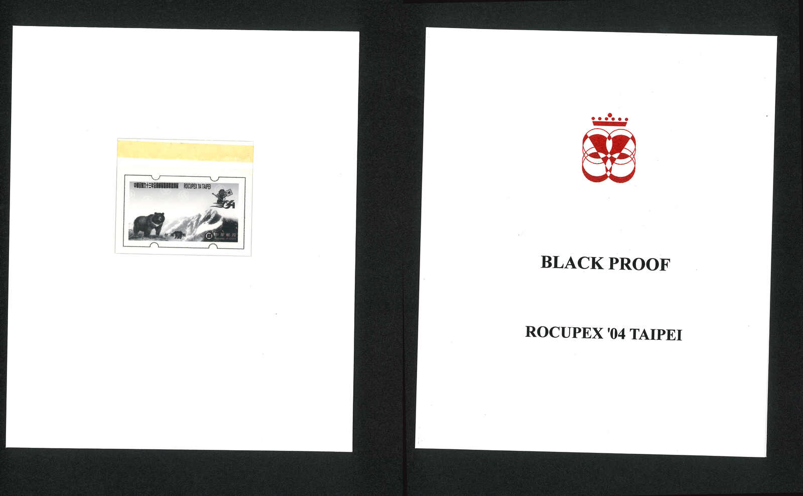 3424 ** imageTaiwan "ROCUPEX '04 Taipei" ATM stamp black proof, with original folder of Dutch printer. Very scarce.