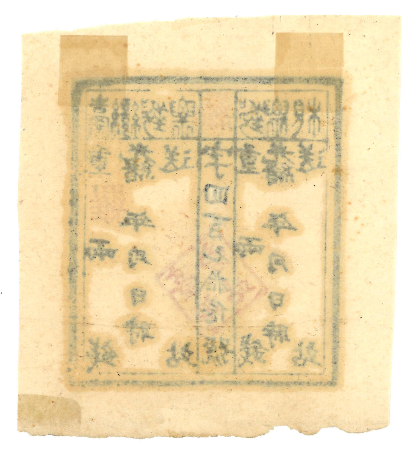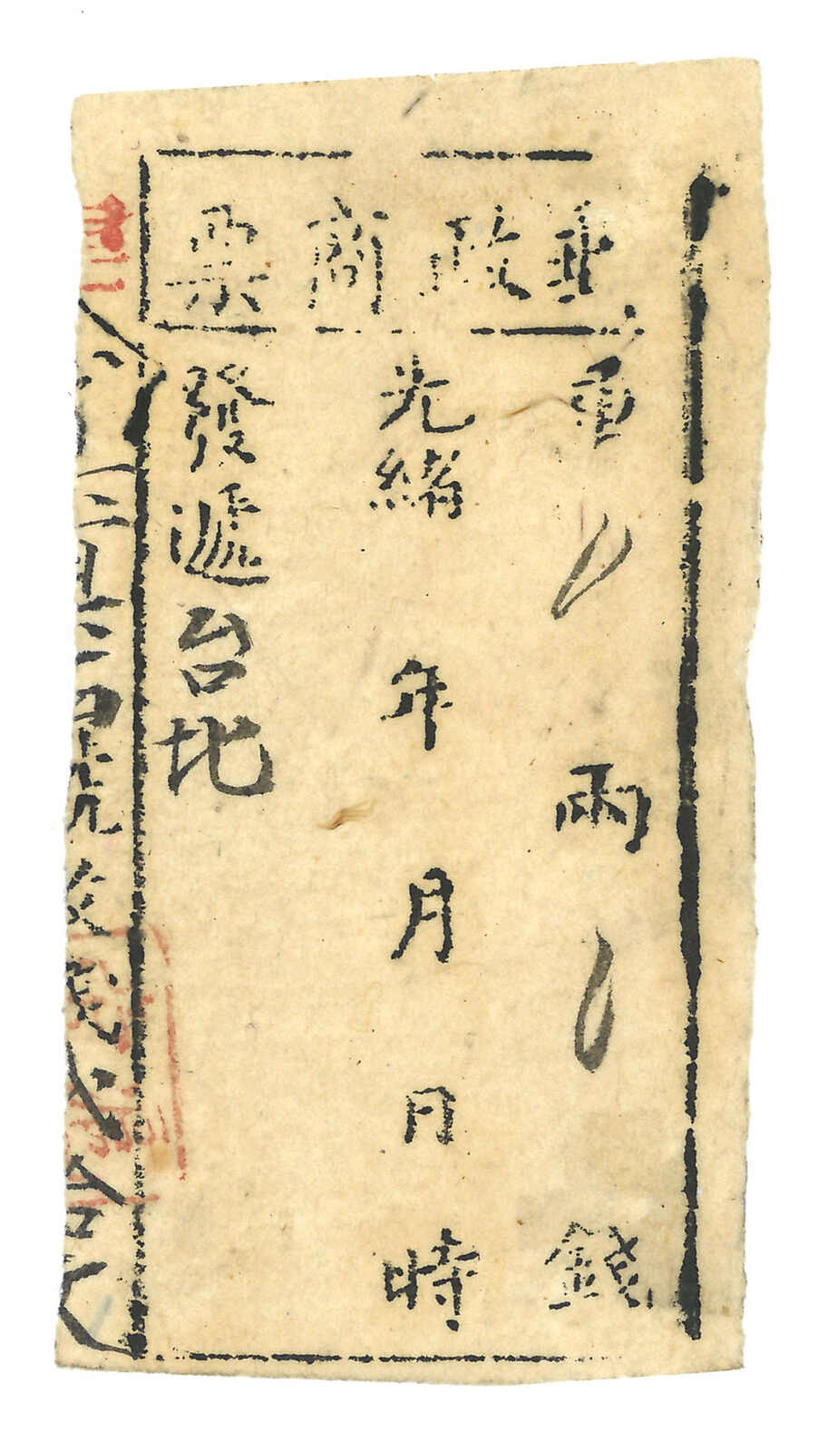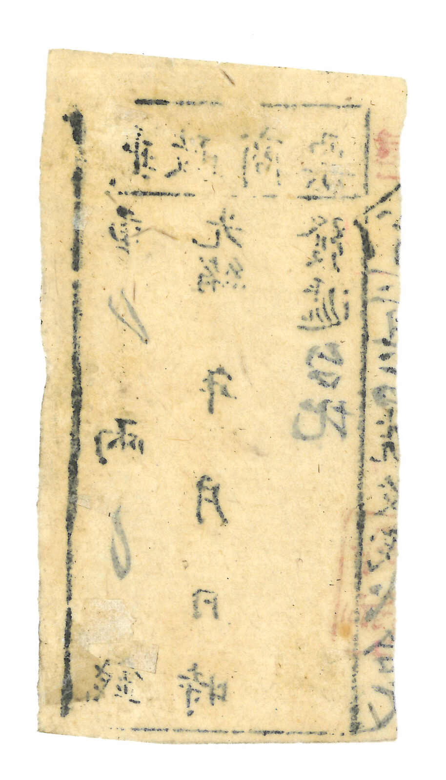 1886年公文用站票第一版一組 三枚,分別印於條紋紙及連史 紙上(陳目F1, F2),當中一 枚鈐“滬尾旁站”紅戳。品相 各異。(Image 1) (Image 2)