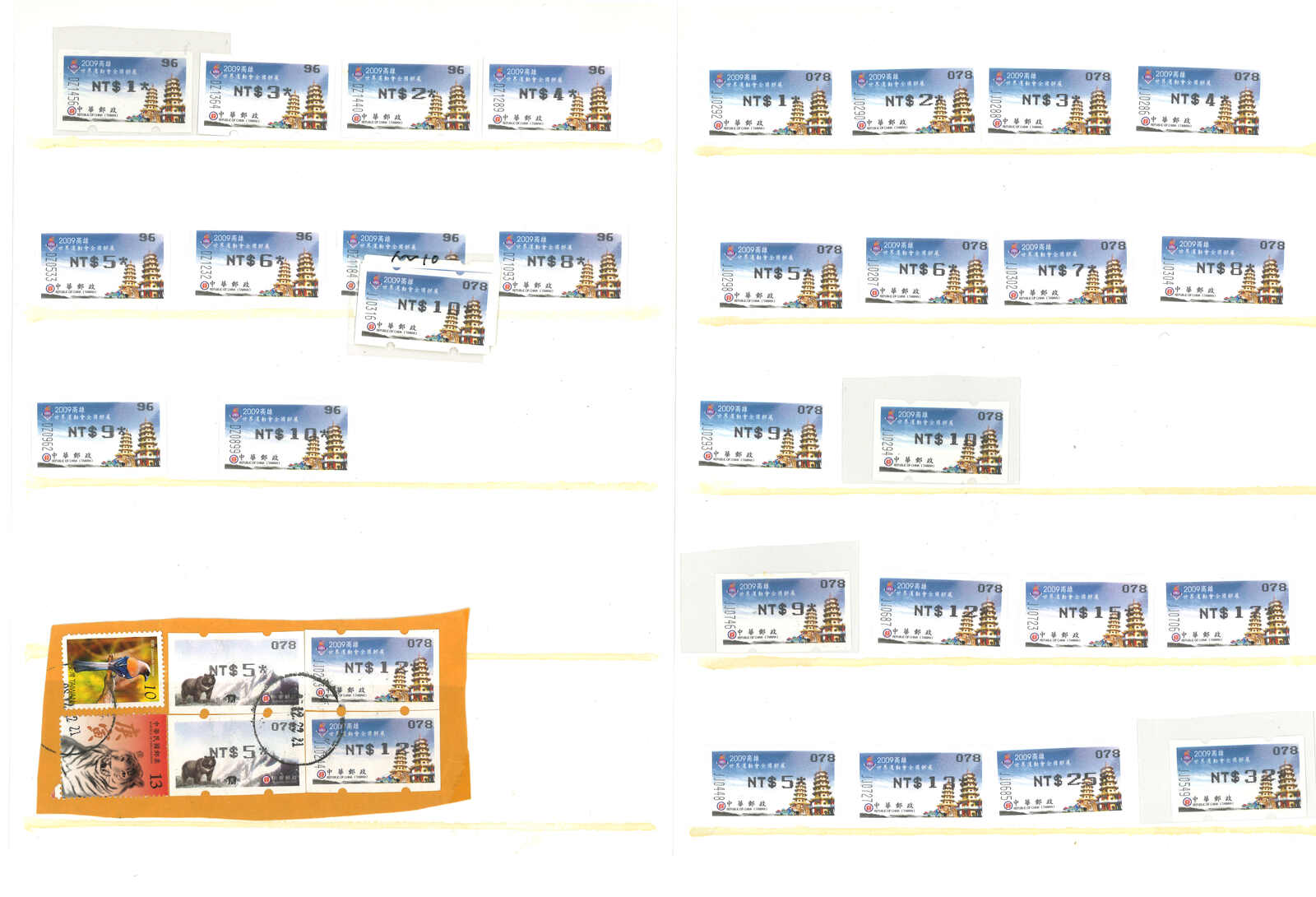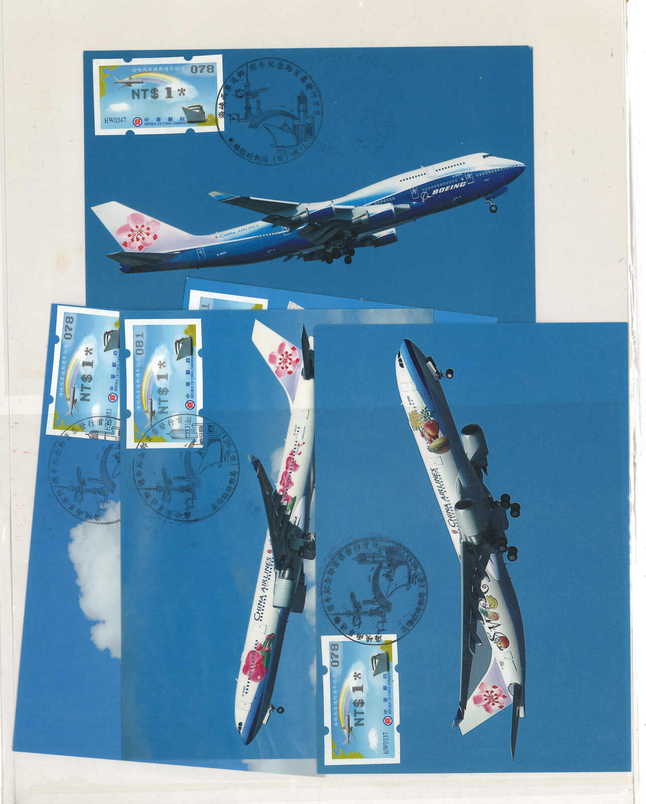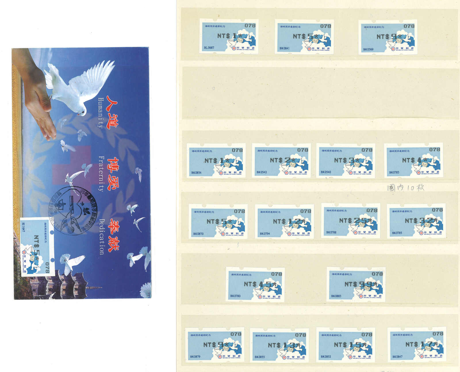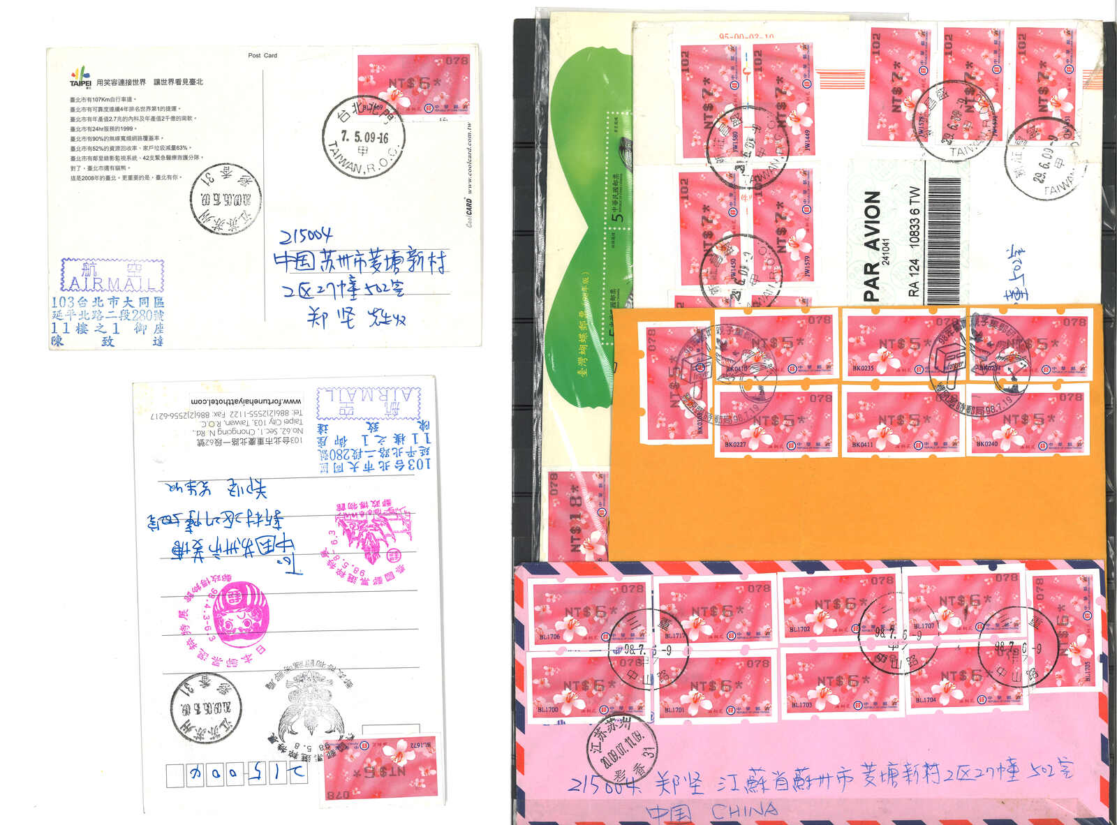 3431 cover image2009 a comprehensive collection of Taiwan 1st Anniv of Cross-strait Direct Mail Service ATM stamps, containing about 150 stamps and 100 covers, including specimen stamps, FDC, commemorative covers, airplane picture postcards etc. Please view.