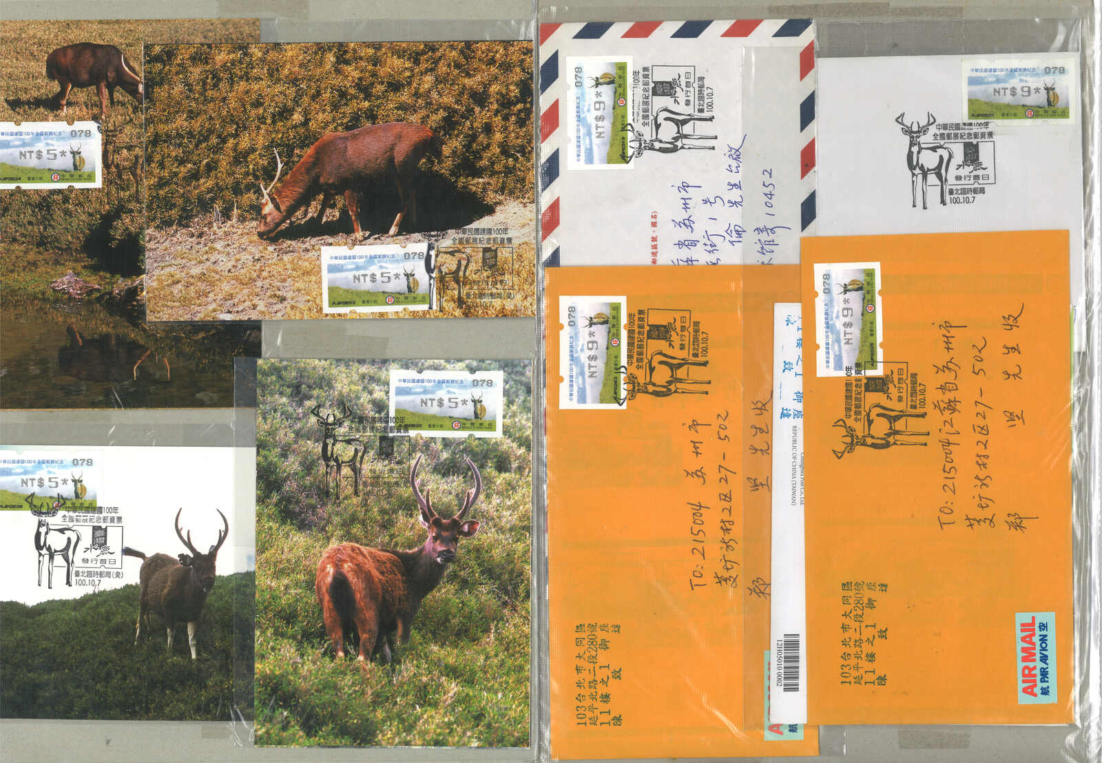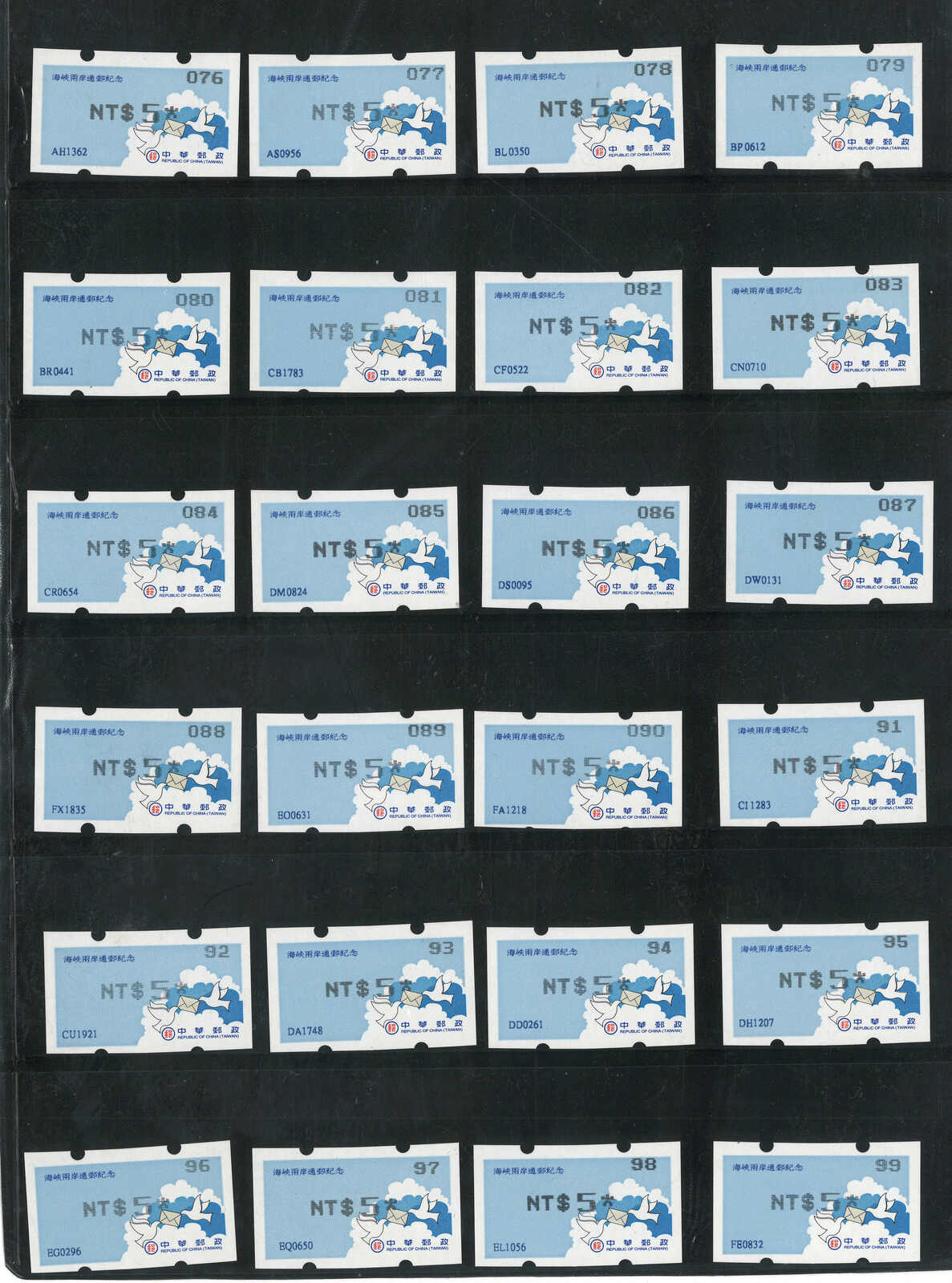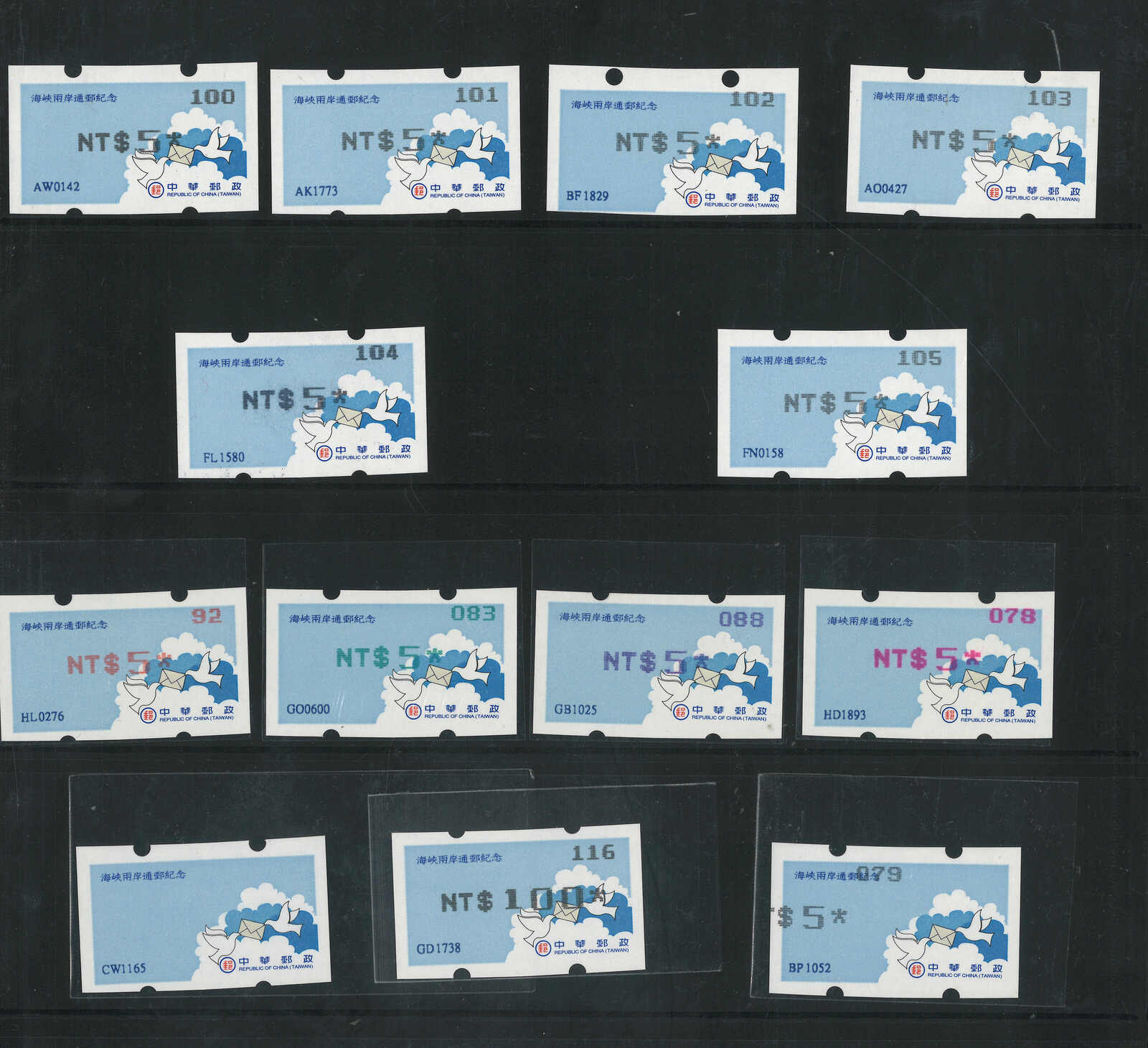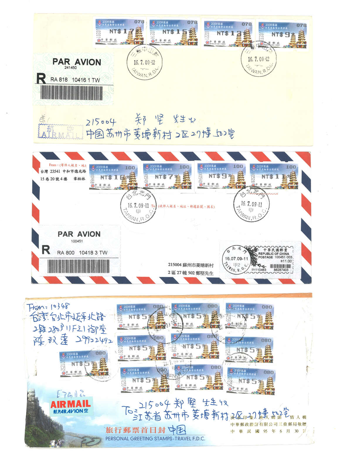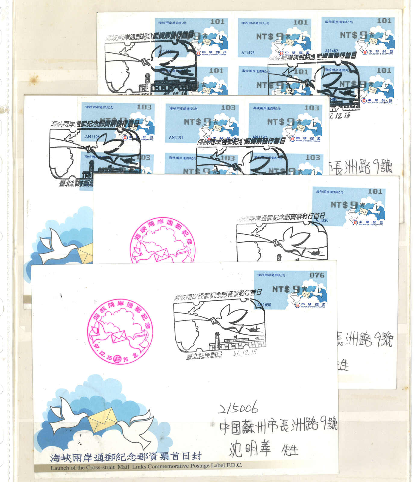 3431 cover image2009 a comprehensive collection of Taiwan 1st Anniv of Cross-strait Direct Mail Service ATM stamps, containing about 150 stamps and 100 covers, including specimen stamps, FDC, commemorative covers, airplane picture postcards etc. Please view.