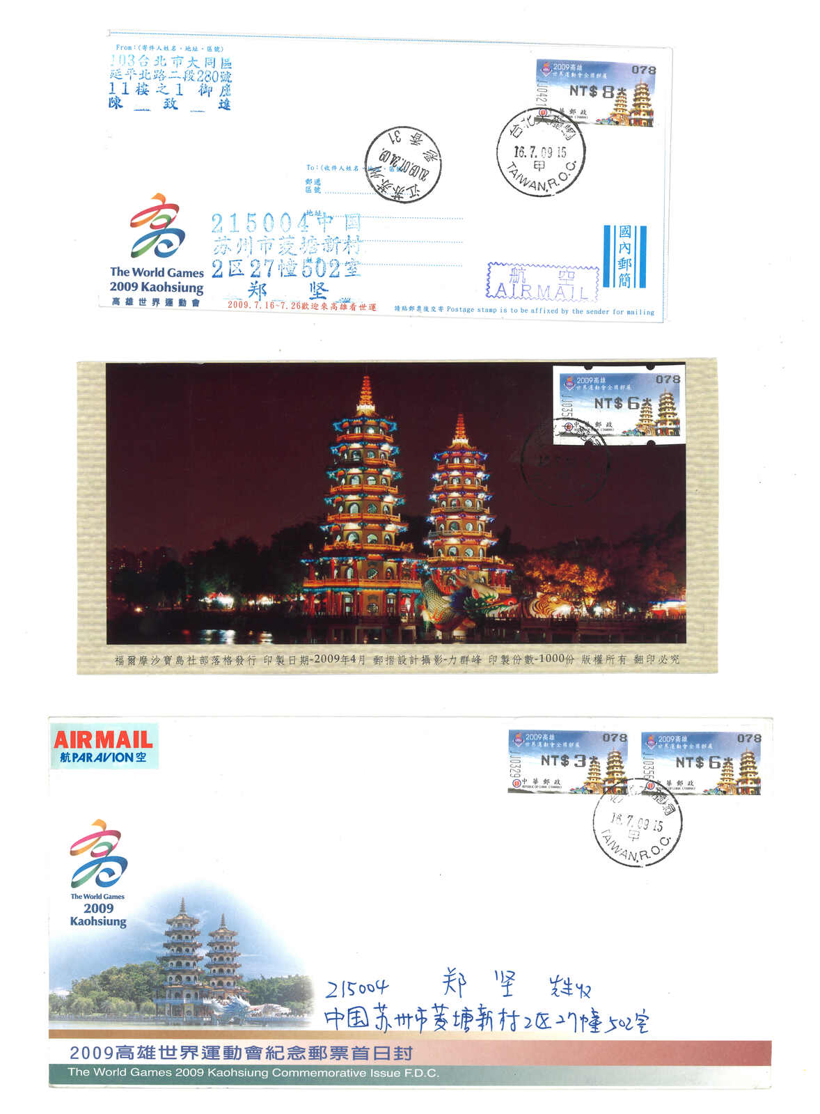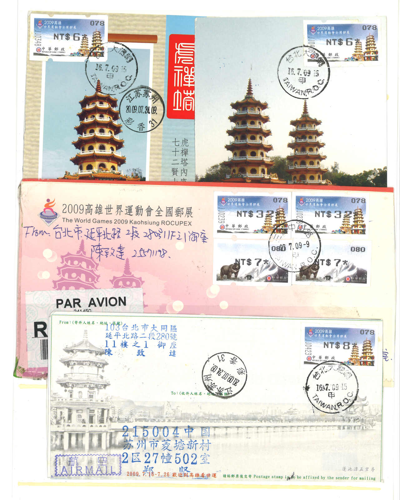 3432 cover image2009-2013 a comprehensive collection of Taiwan World Game 2009 and ROCUPEX 13’ Taipei ATM stamps, containing about 50 stamps and 40 covers, including several variety stamps, maximum cards, commemorative covers etc.