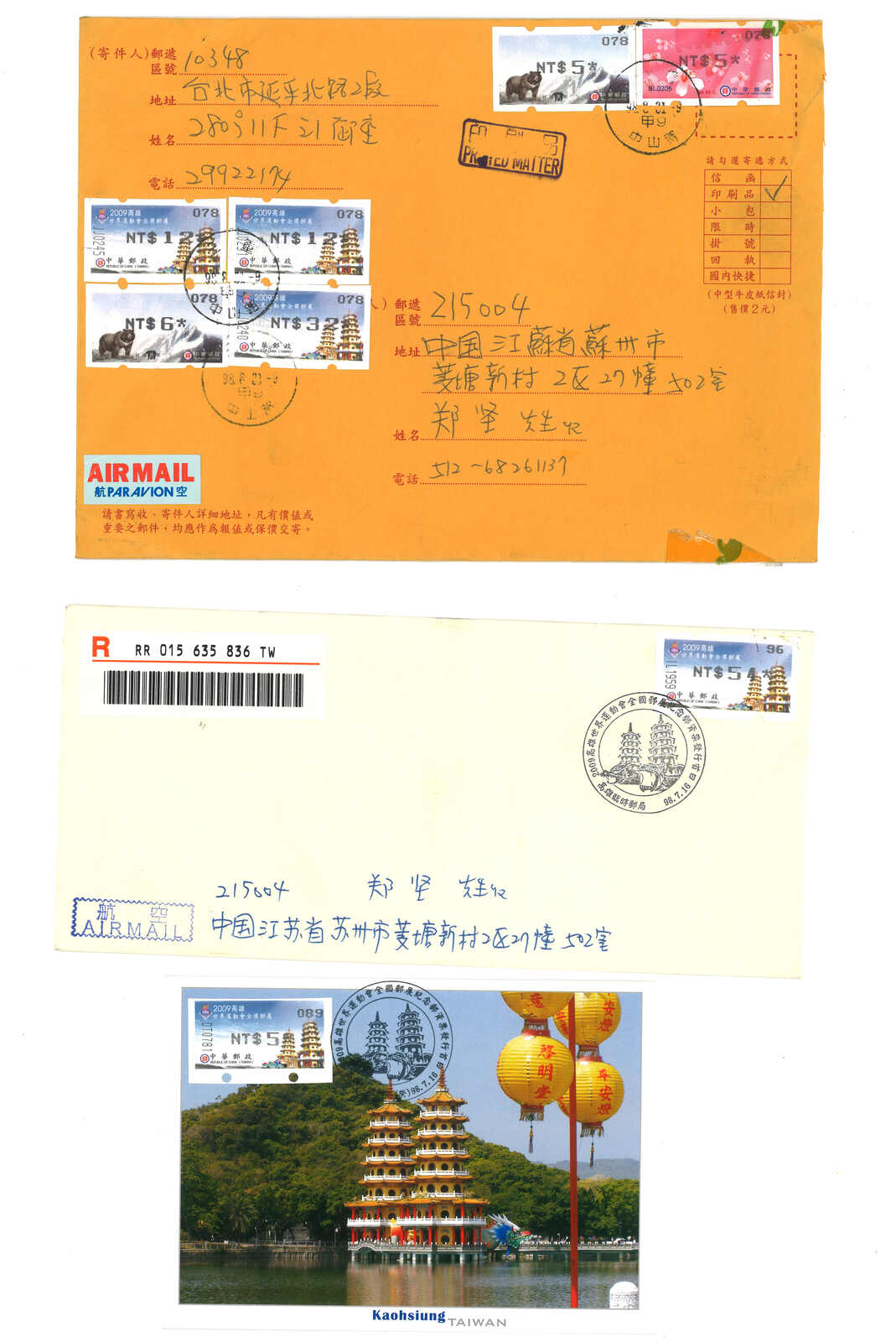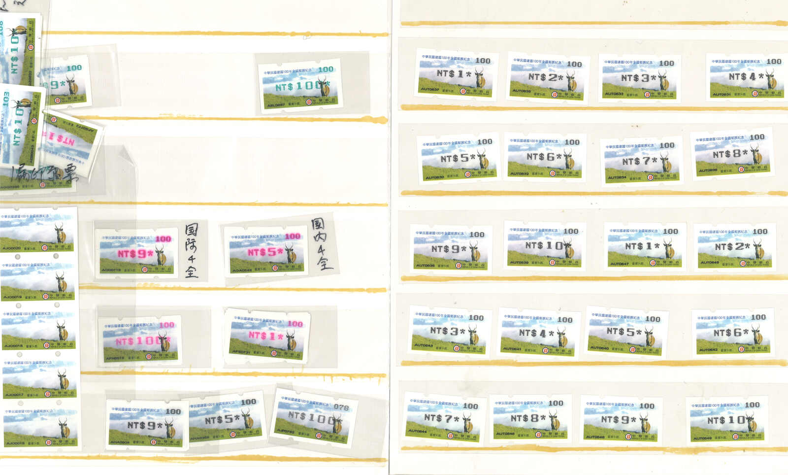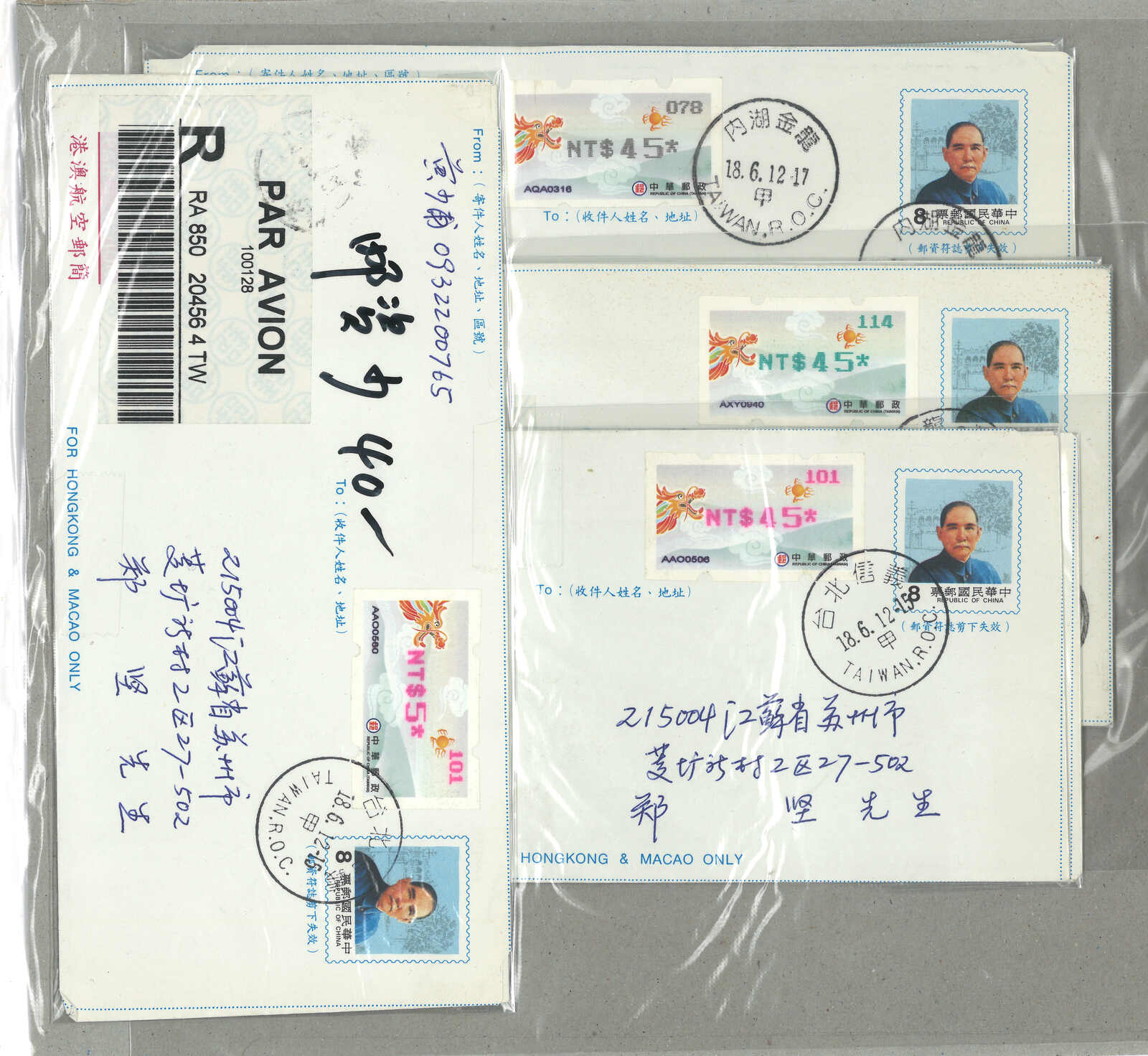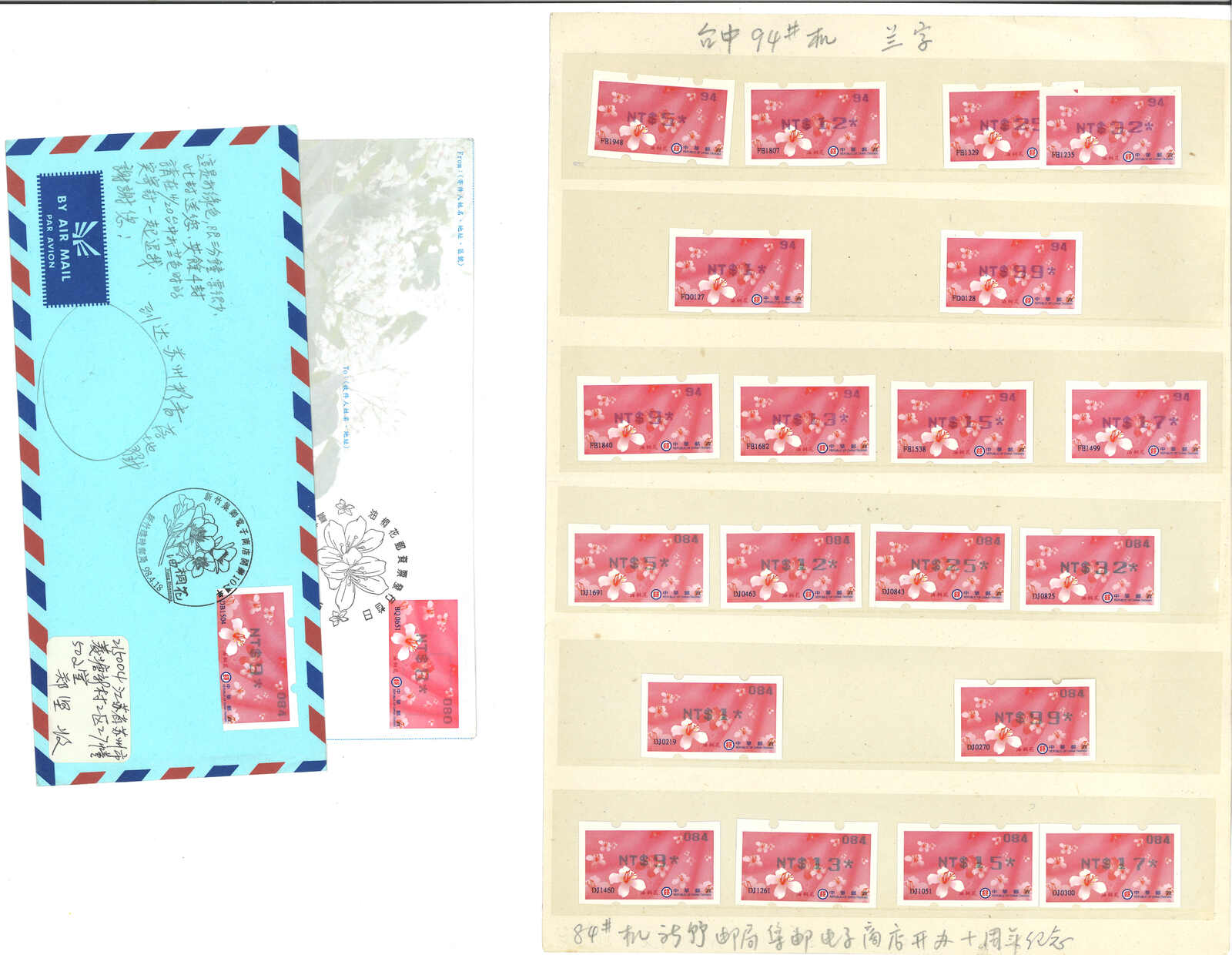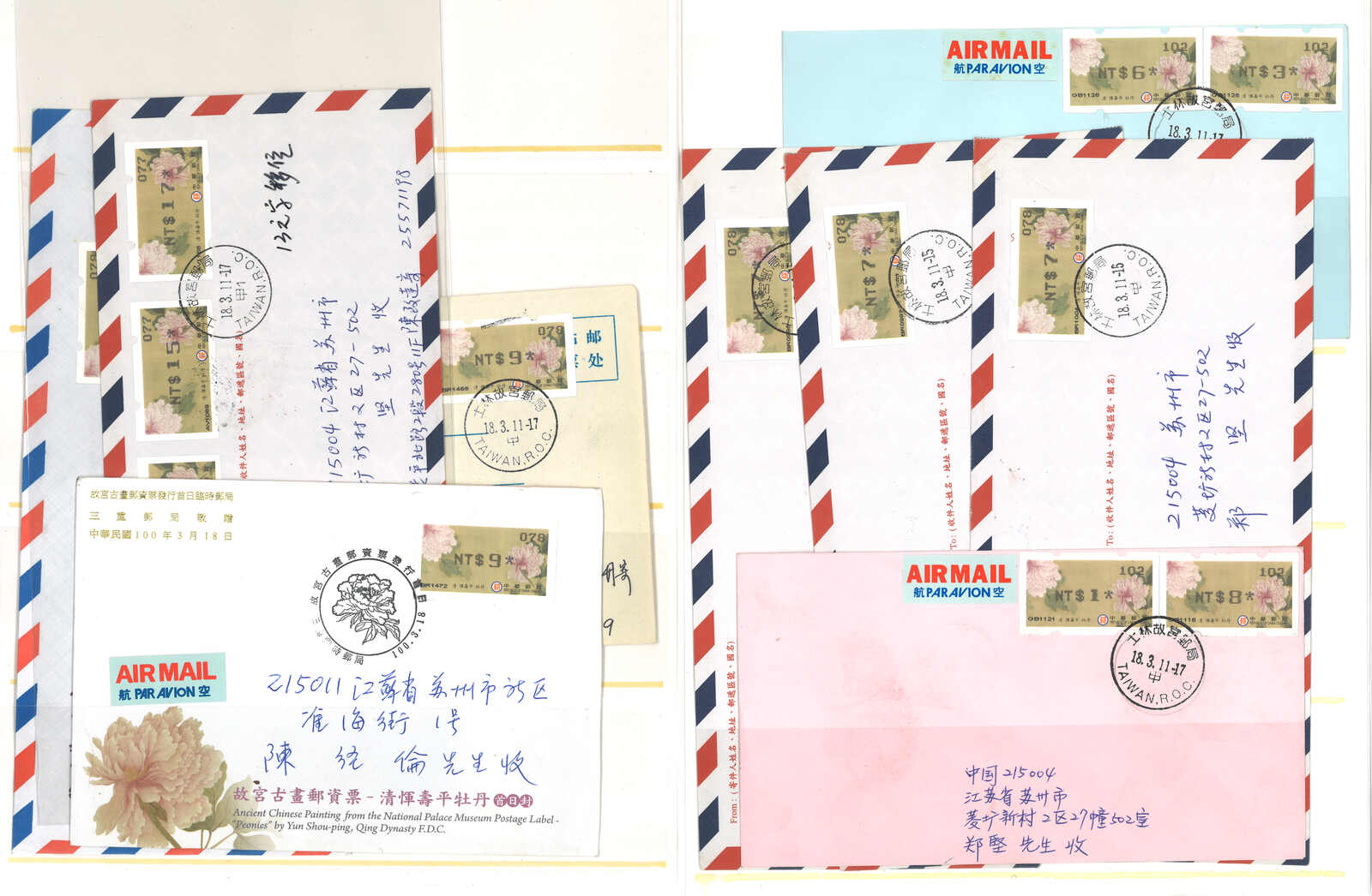 3429 cover image2008 a comprehensive collection of Taiwan Cross-strait Direct Mail Service ATM stamps, containing about 110 stamps and 110 covers, including complete set from all vending marchines, scarce GQ369 stamp, variety stamps, commemotive covers, airplane picture postcards etc. Please view.