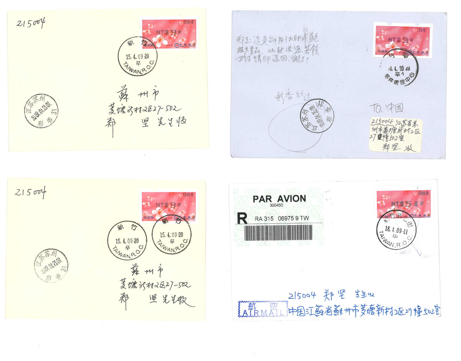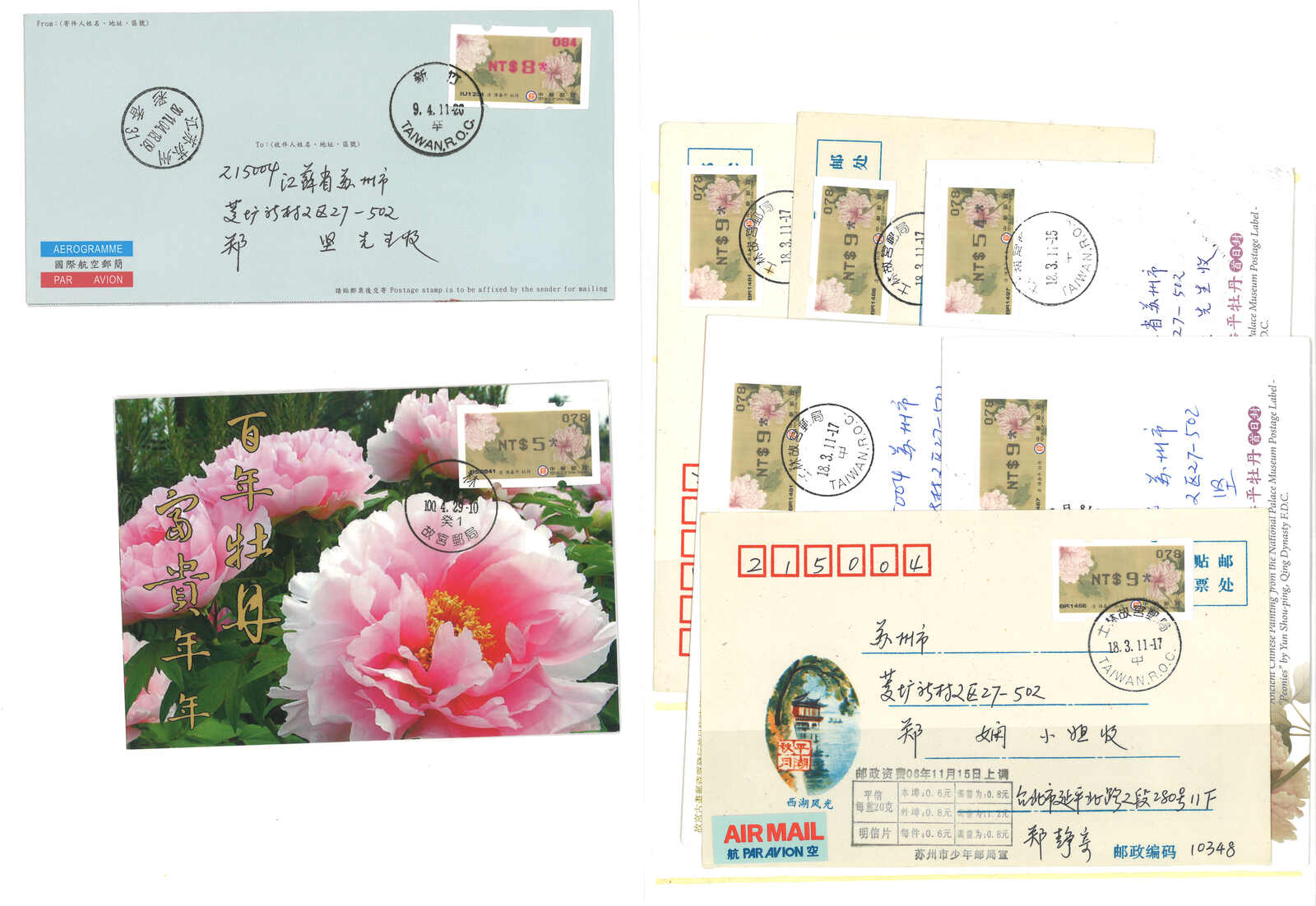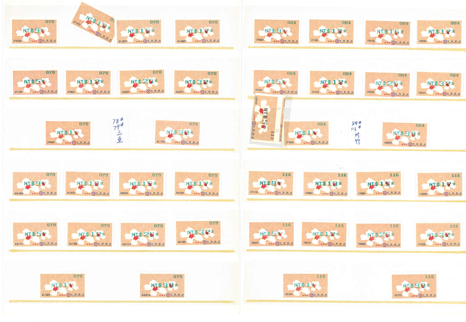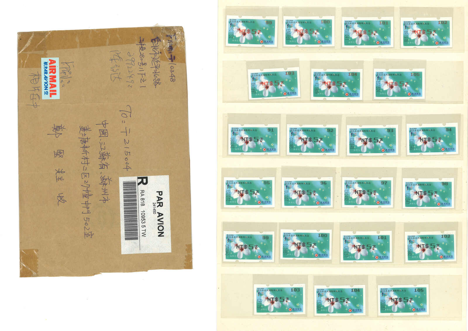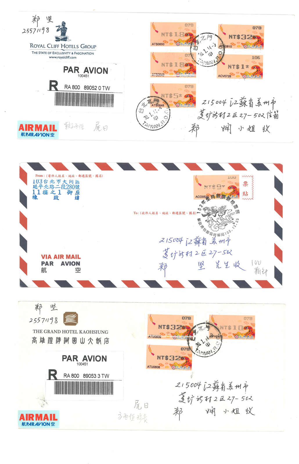 3429 cover image2008 a comprehensive collection of Taiwan Cross-strait Direct Mail Service ATM stamps, containing about 110 stamps and 110 covers, including complete set from all vending marchines, scarce GQ369 stamp, variety stamps, commemotive covers, airplane picture postcards etc. Please view.