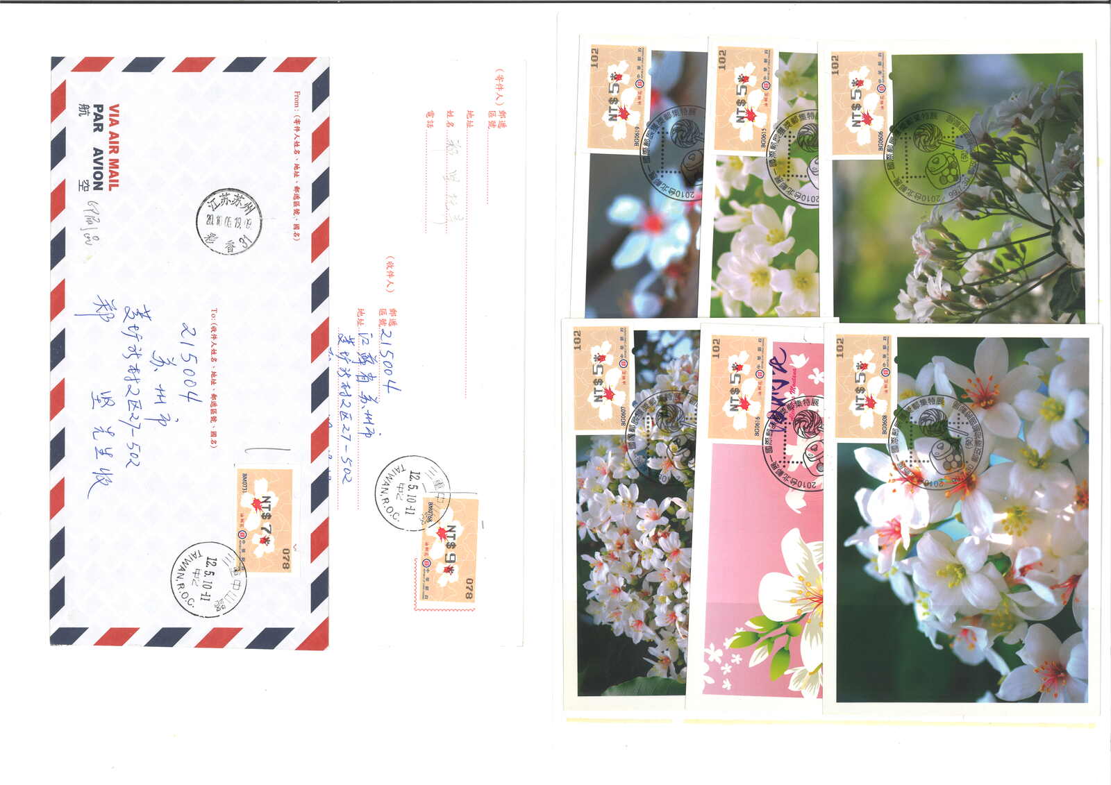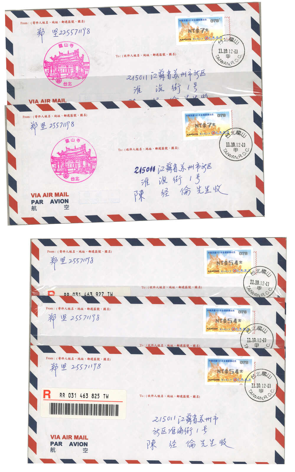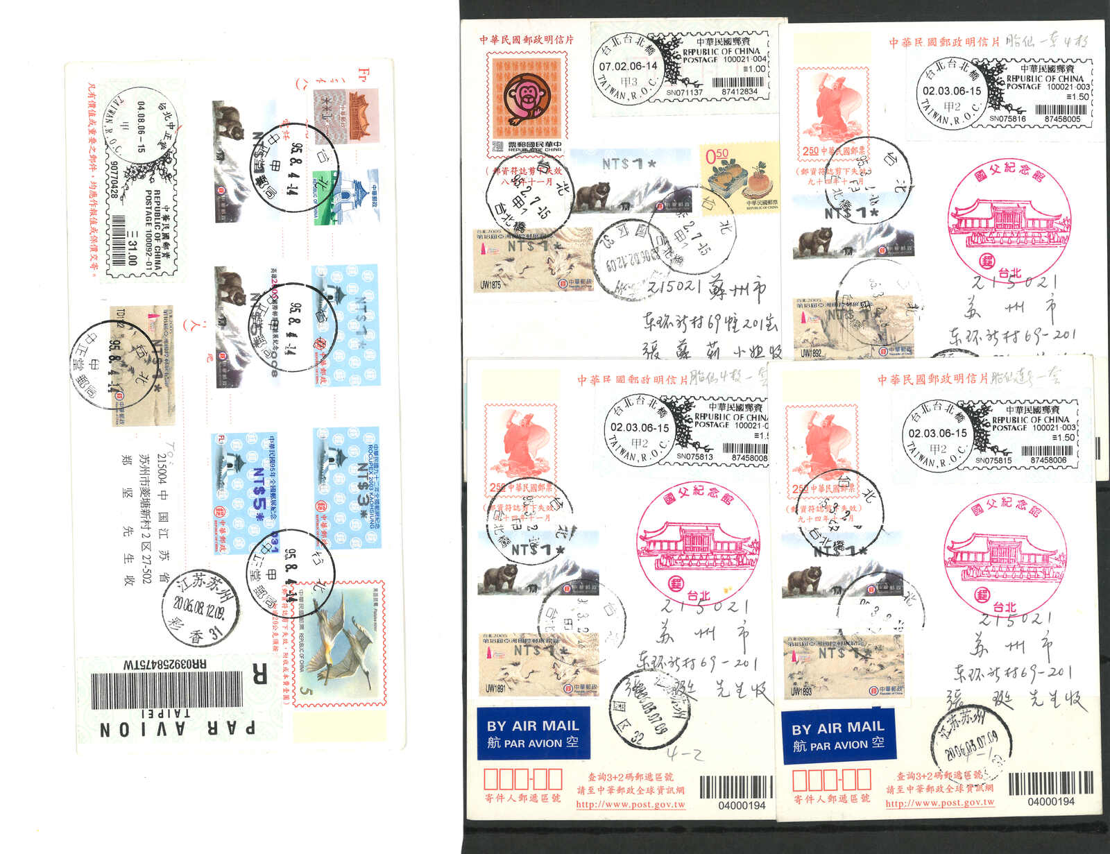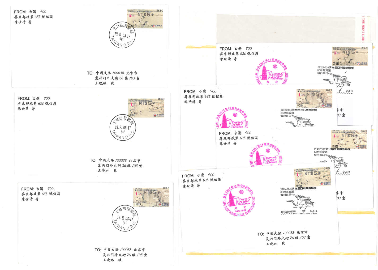 3429 cover image2008 a comprehensive collection of Taiwan Cross-strait Direct Mail Service ATM stamps, containing about 110 stamps and 110 covers, including complete set from all vending marchines, scarce GQ369 stamp, variety stamps, commemotive covers, airplane picture postcards etc. Please view.