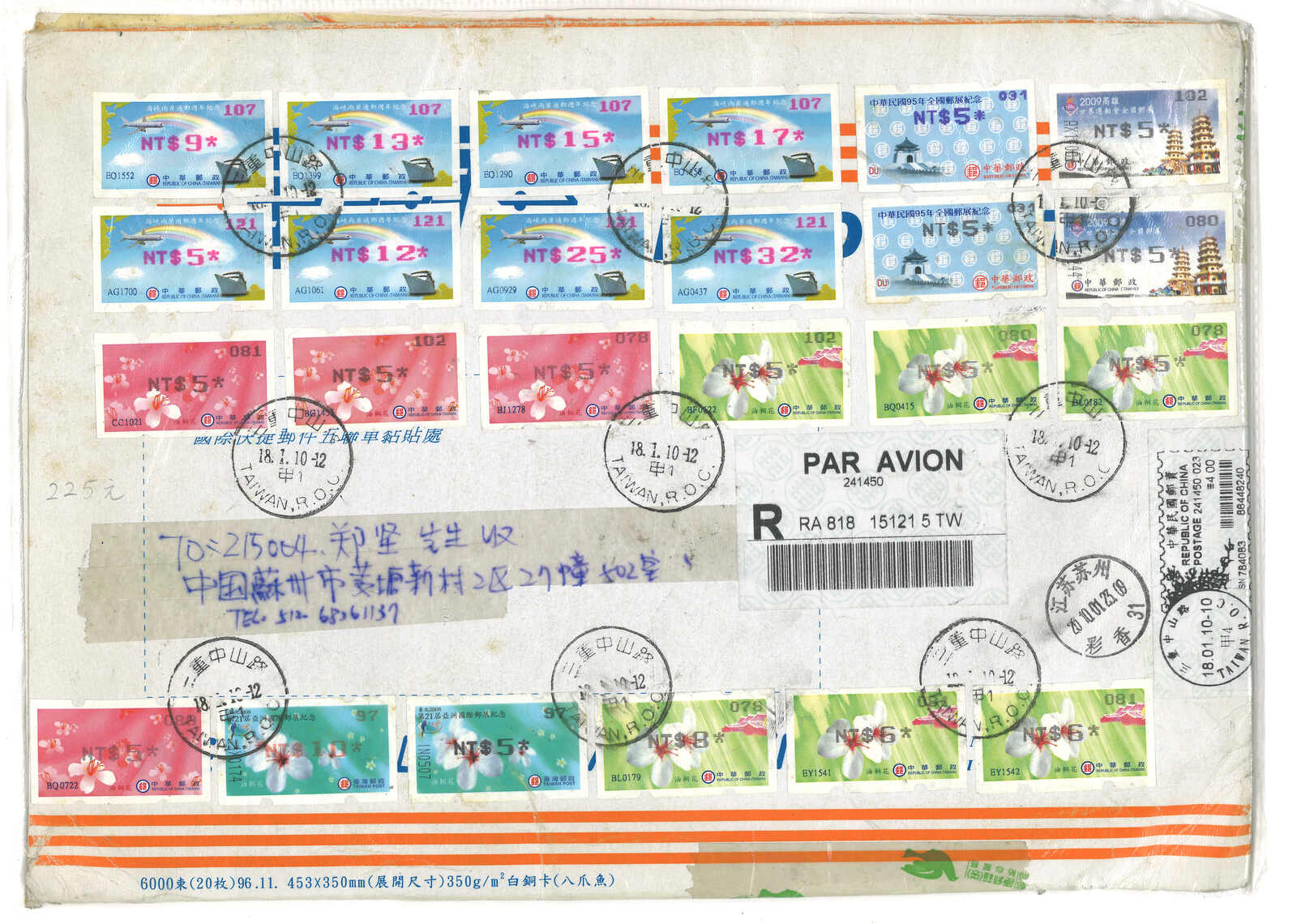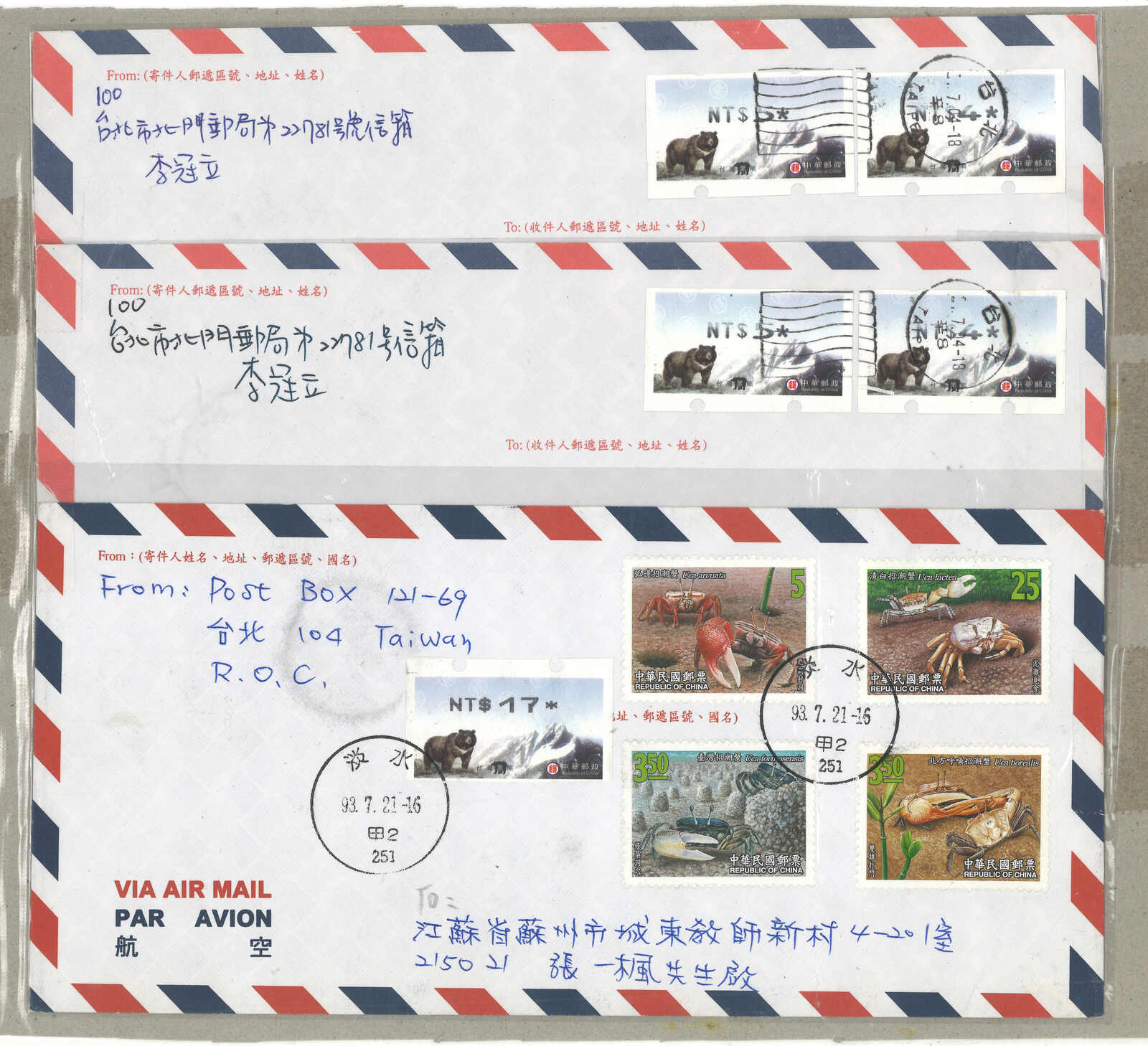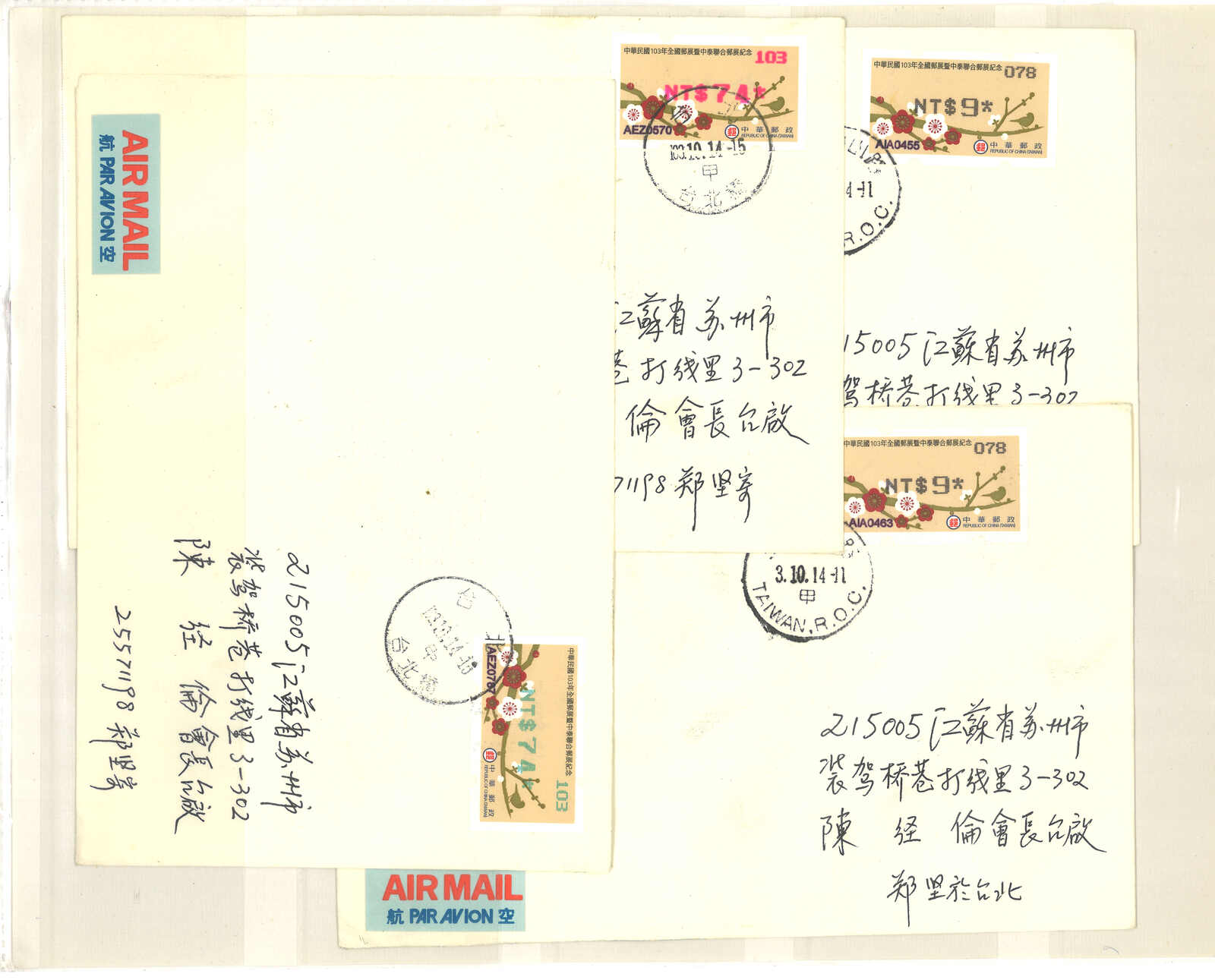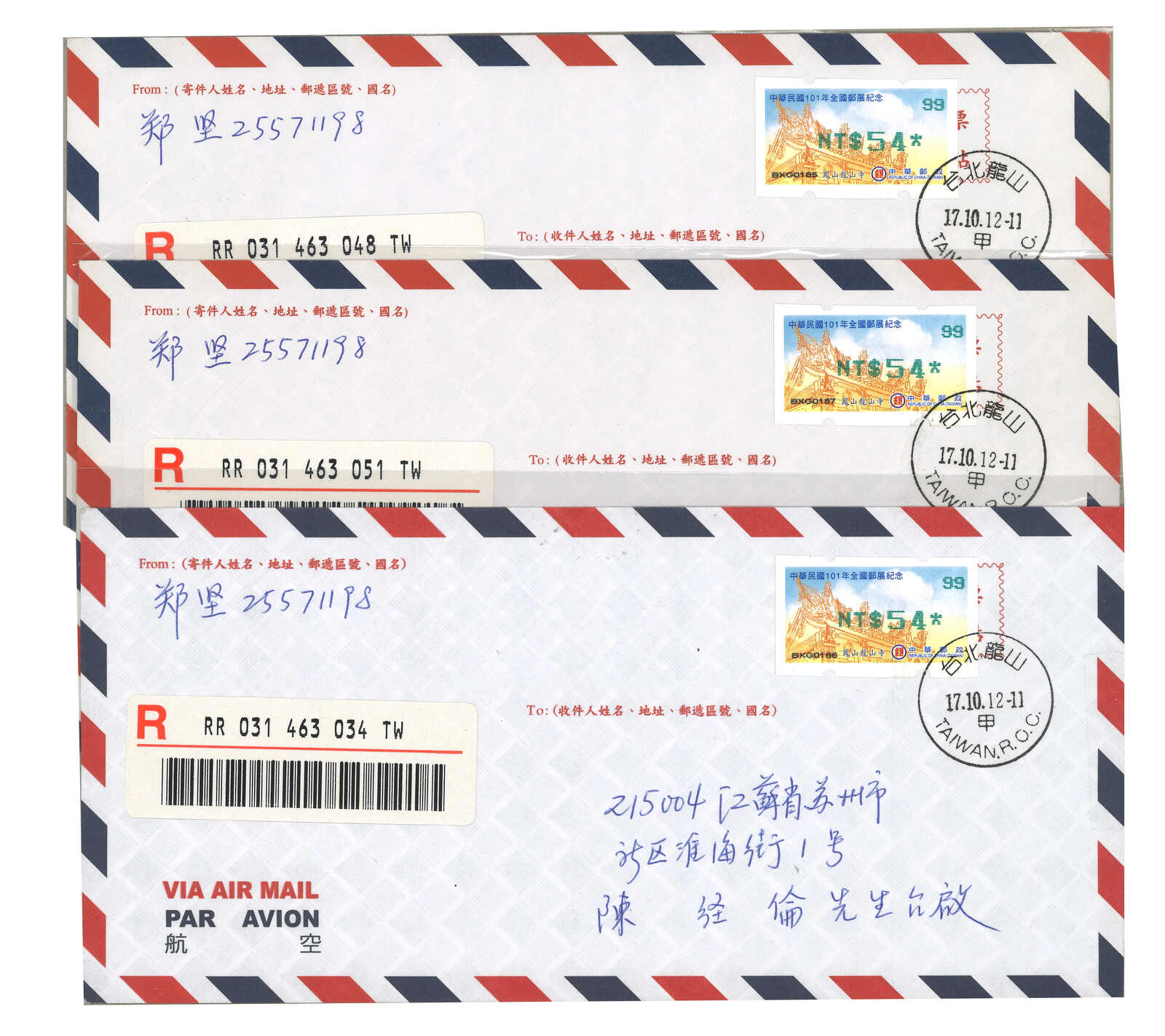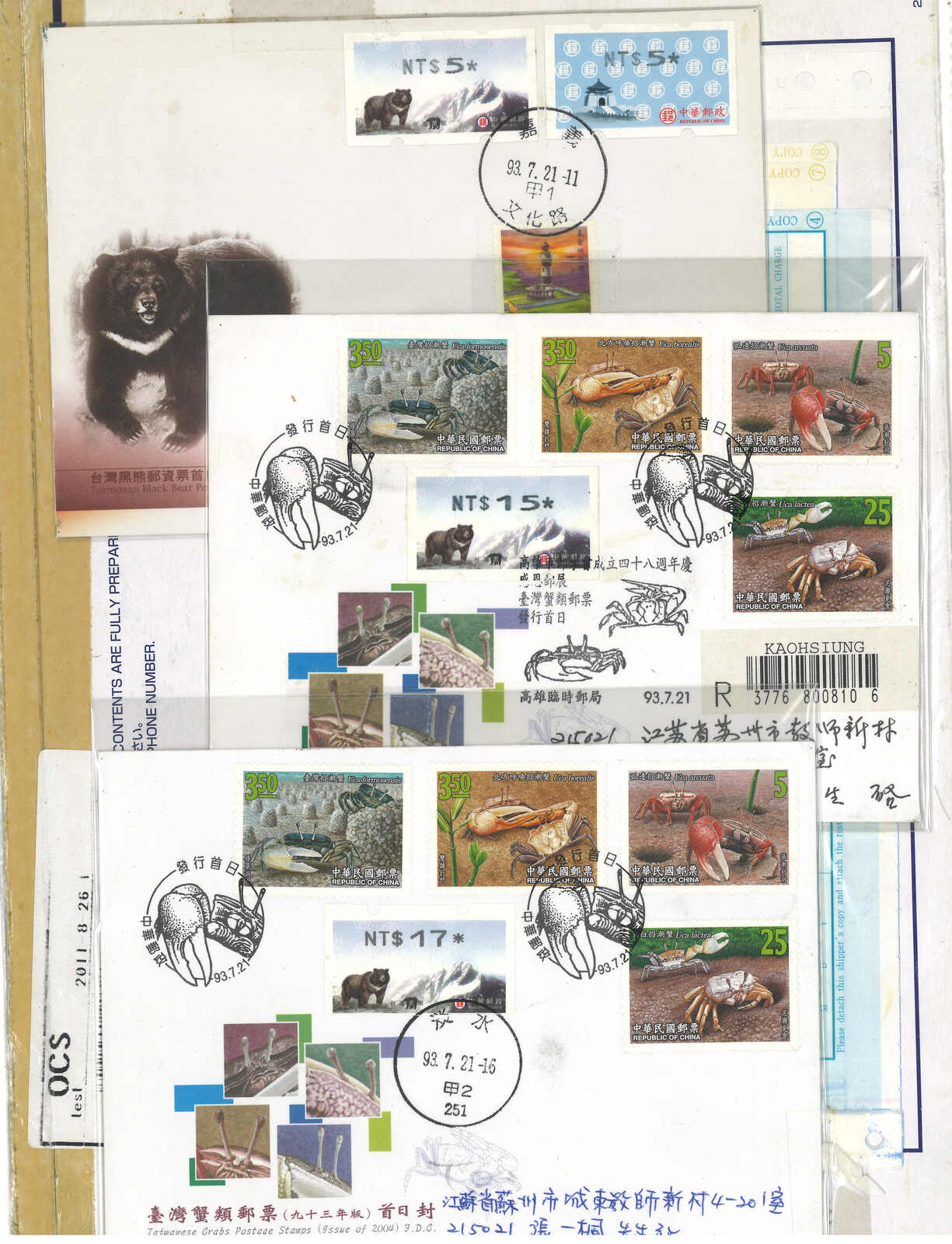 3429 cover image2008 a comprehensive collection of Taiwan Cross-strait Direct Mail Service ATM stamps, containing about 110 stamps and 110 covers, including complete set from all vending marchines, scarce GQ369 stamp, variety stamps, commemotive covers, airplane picture postcards etc. Please view.