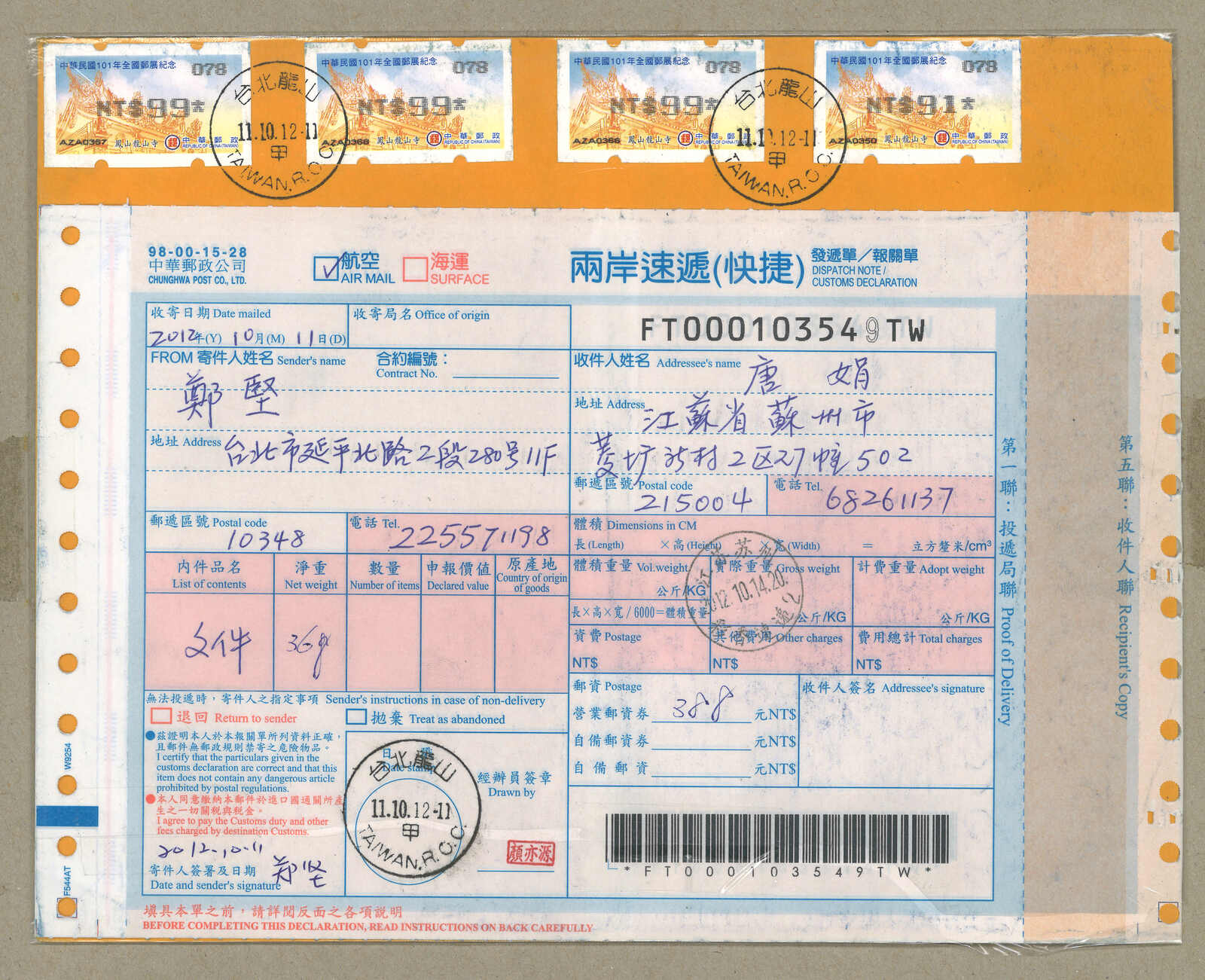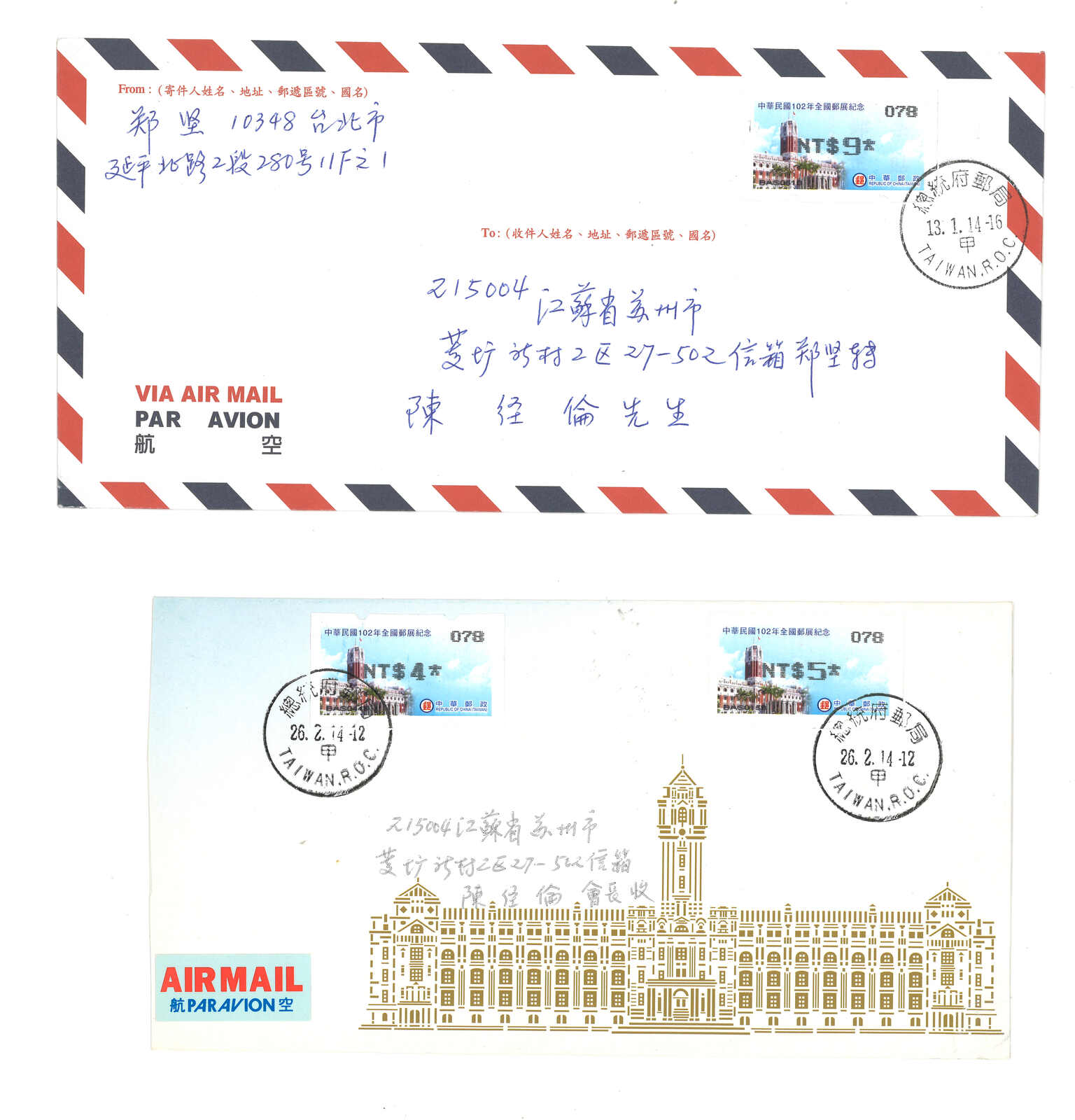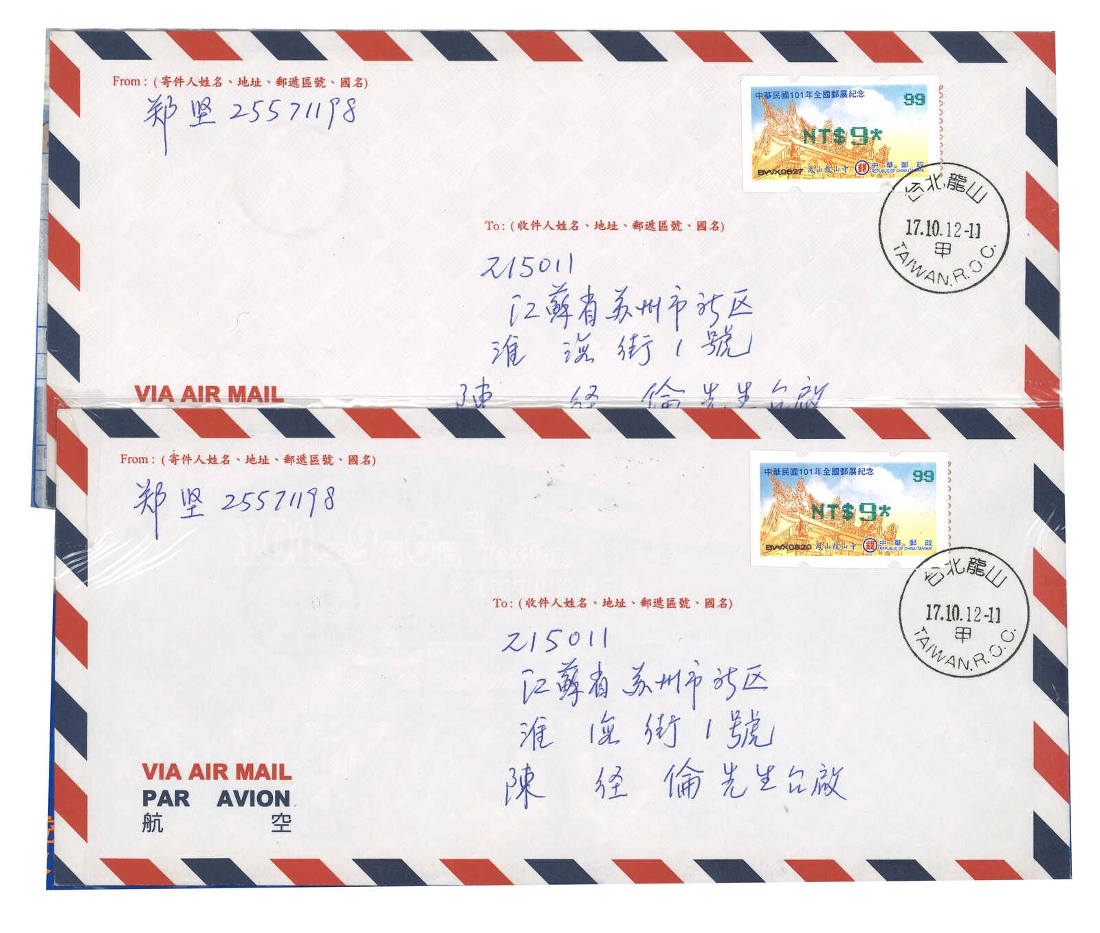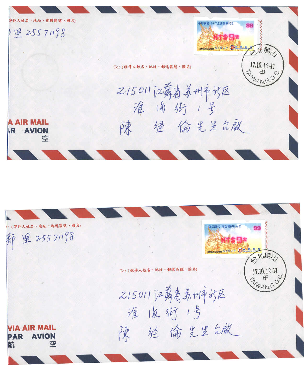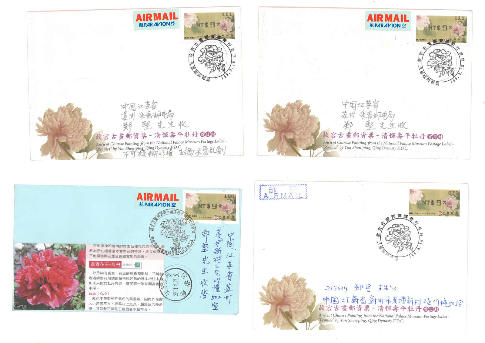 3429 cover image2008 a comprehensive collection of Taiwan Cross-strait Direct Mail Service ATM stamps, containing about 110 stamps and 110 covers, including complete set from all vending marchines, scarce GQ369 stamp, variety stamps, commemotive covers, airplane picture postcards etc. Please view.