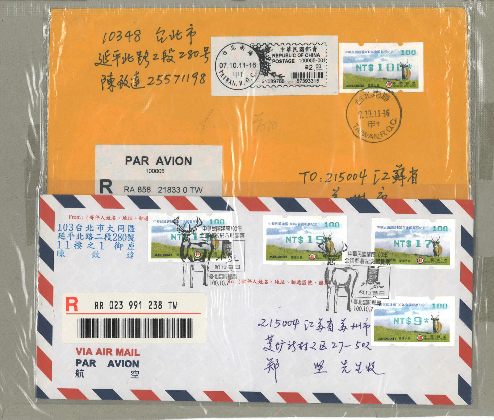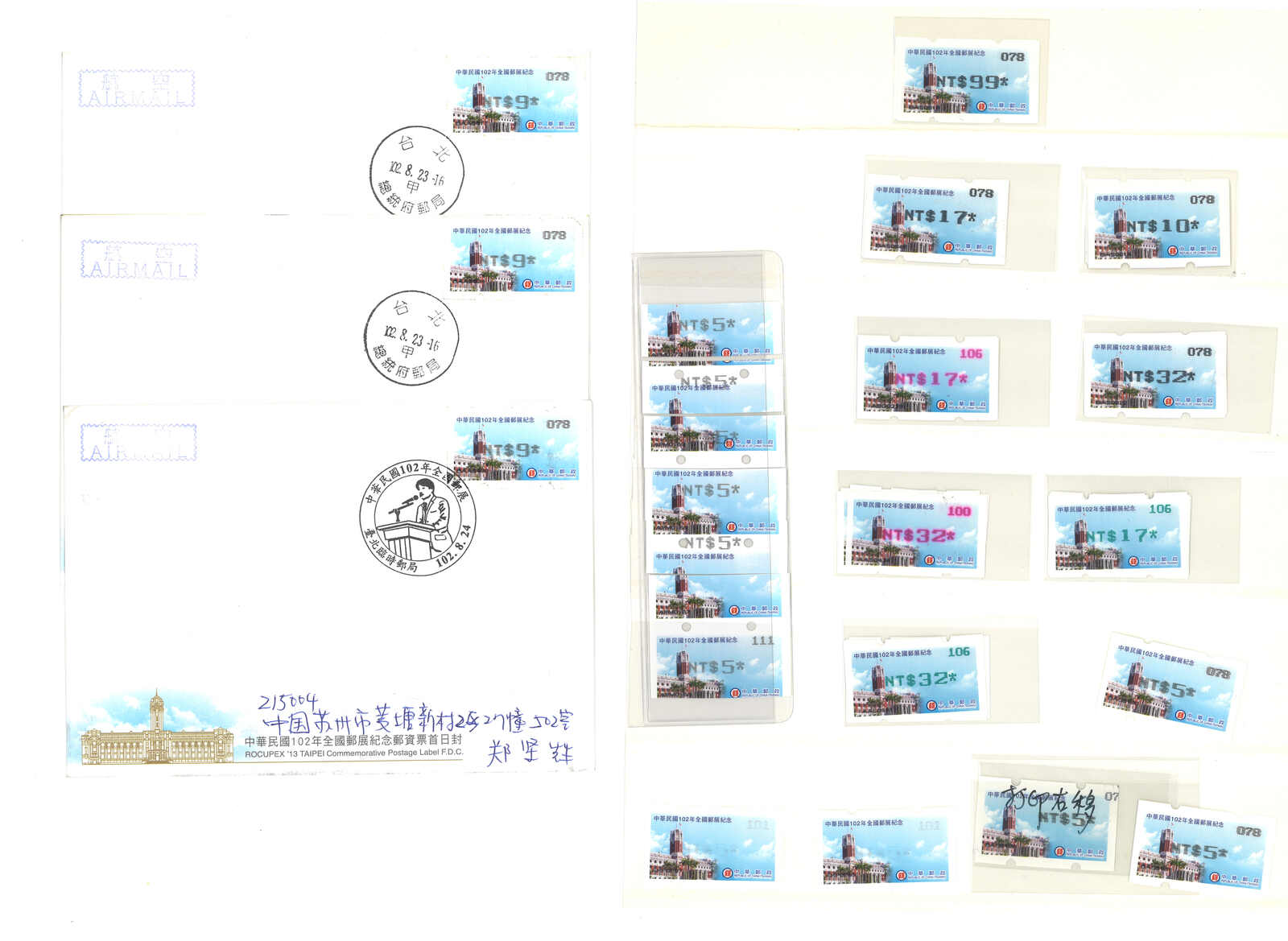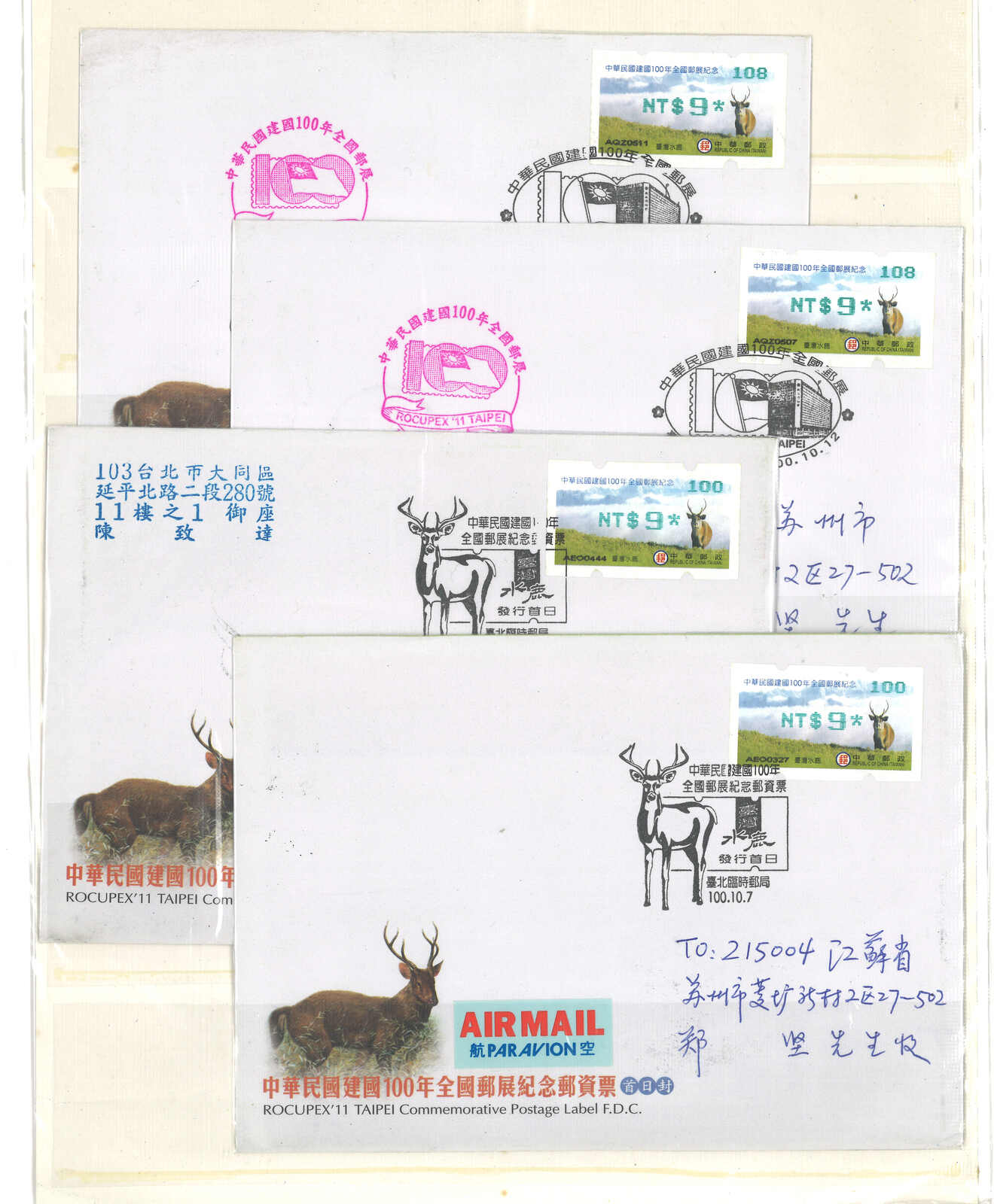 3434 cover image2011 and 2014 a comprehensive collection of Taiwan ROCUPEX ‘11 and ROCUPEX ‘14 ATM stamps, containing about 120 stamps and 80 covers, including scarce variety stamps, FDC, maximum cards, commemorative and commerically used covers.