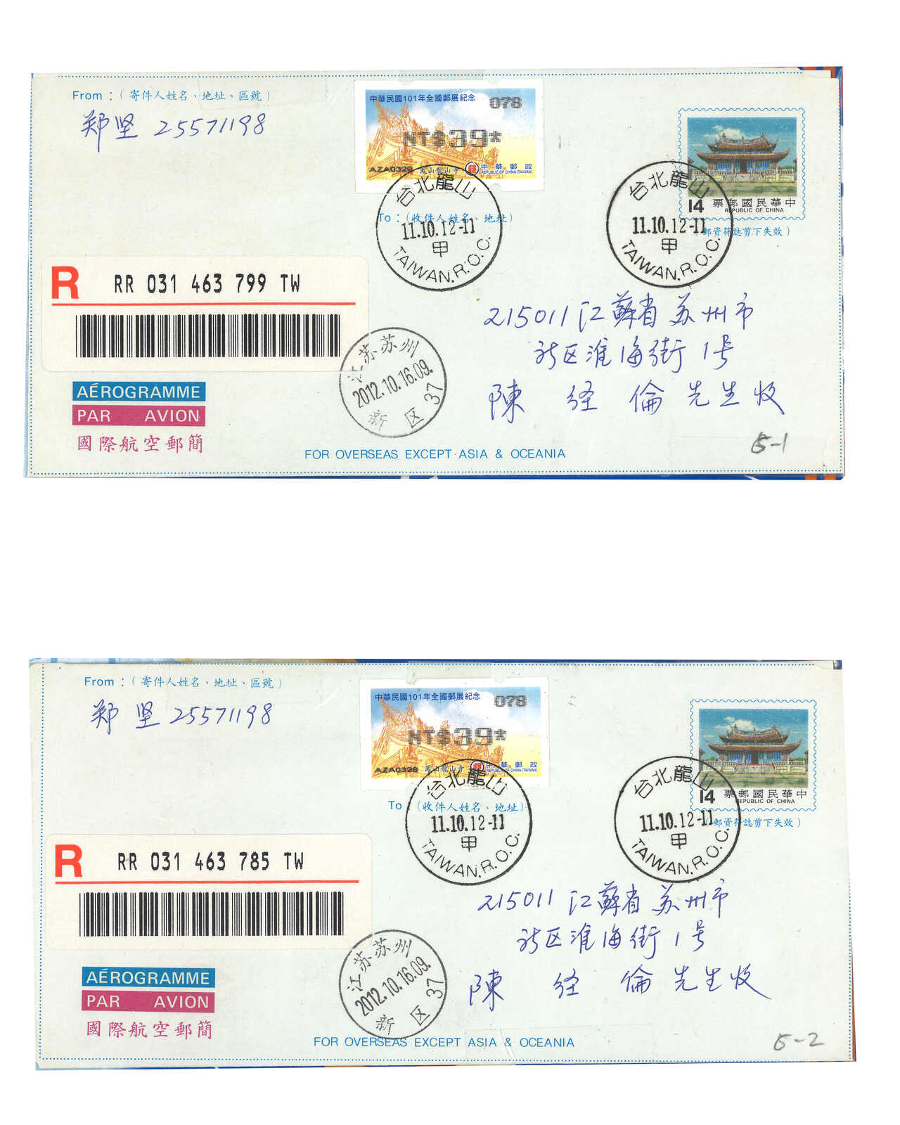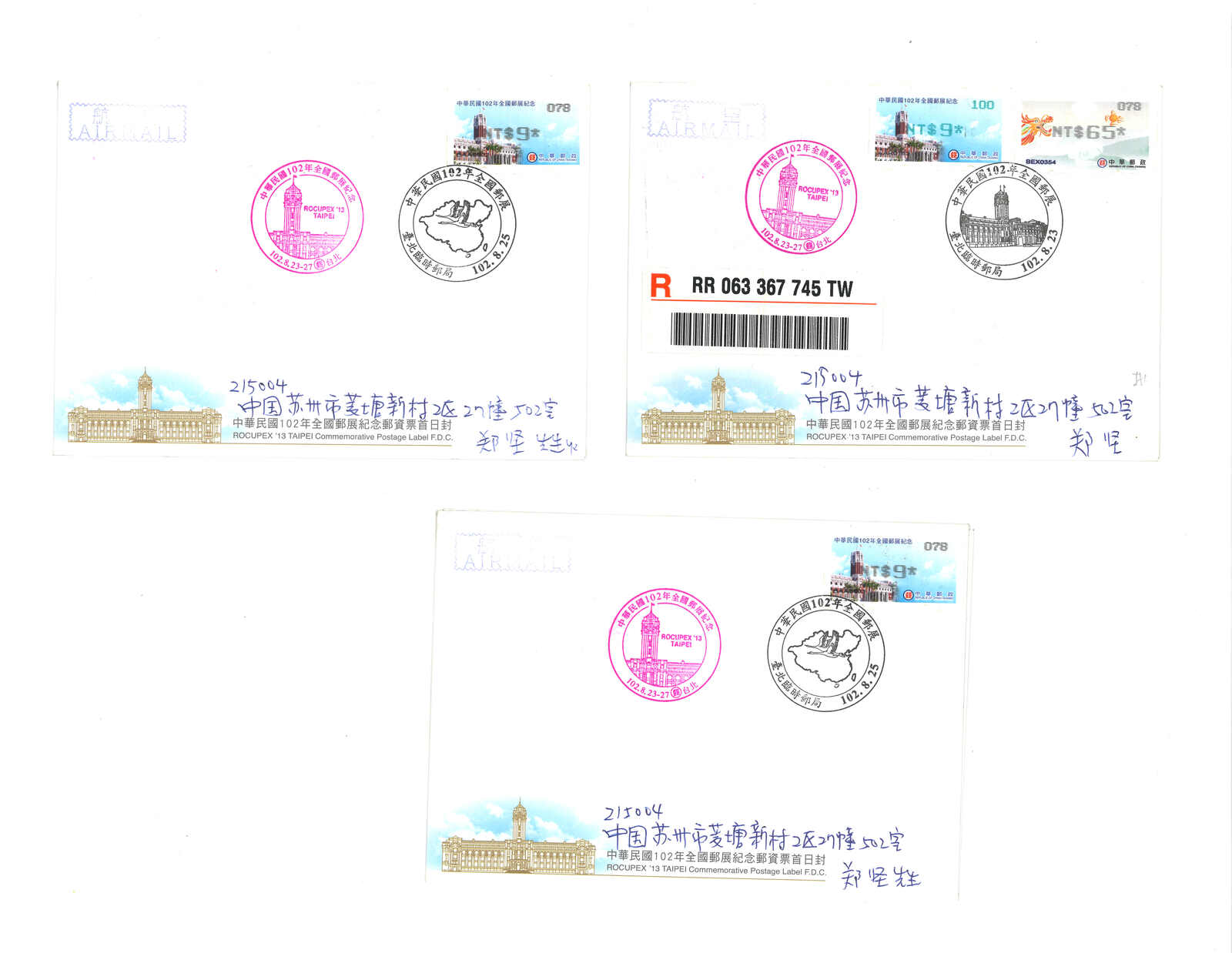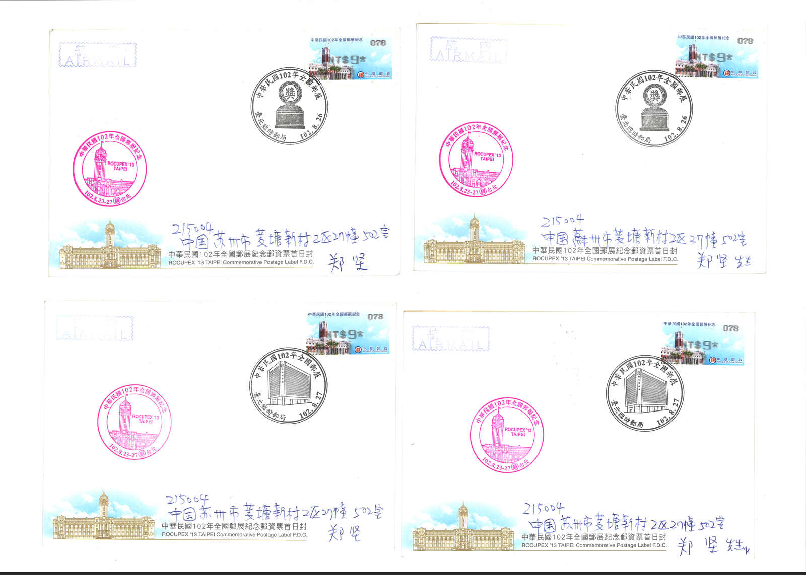 3434 cover image2011 and 2014 a comprehensive collection of Taiwan ROCUPEX ‘11 and ROCUPEX ‘14 ATM stamps, containing about 120 stamps and 80 covers, including scarce variety stamps, FDC, maximum cards, commemorative and commerically used covers.