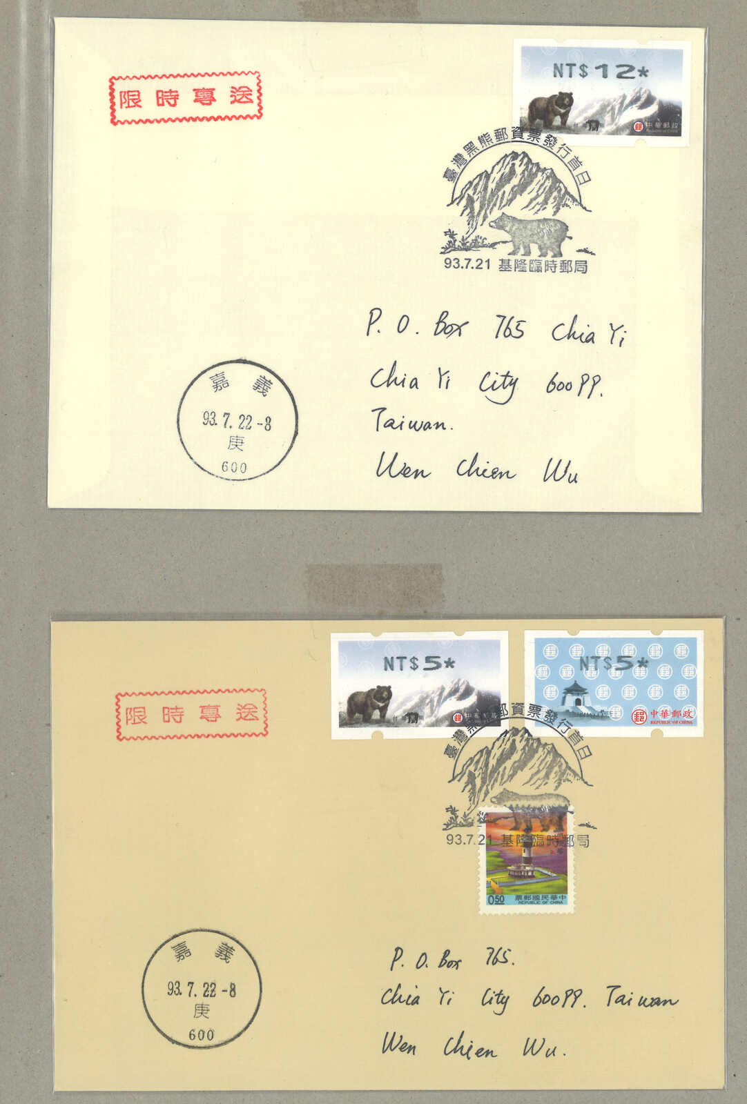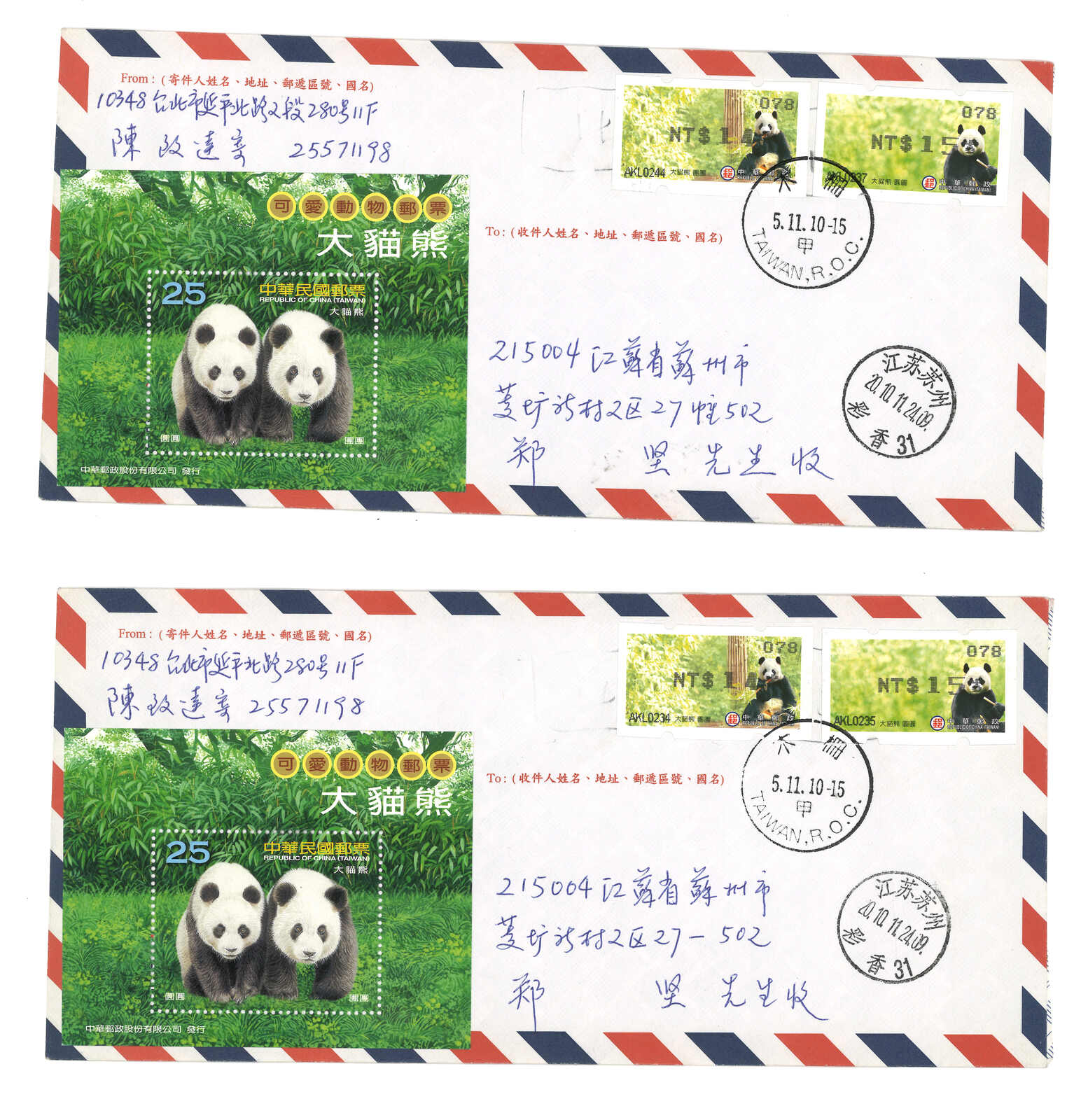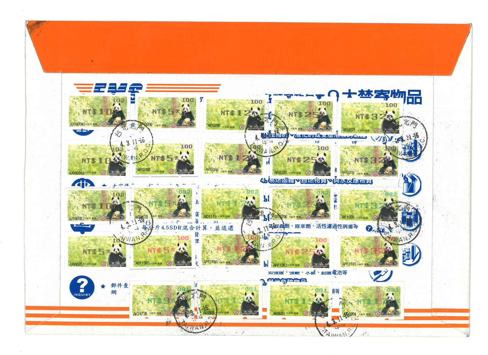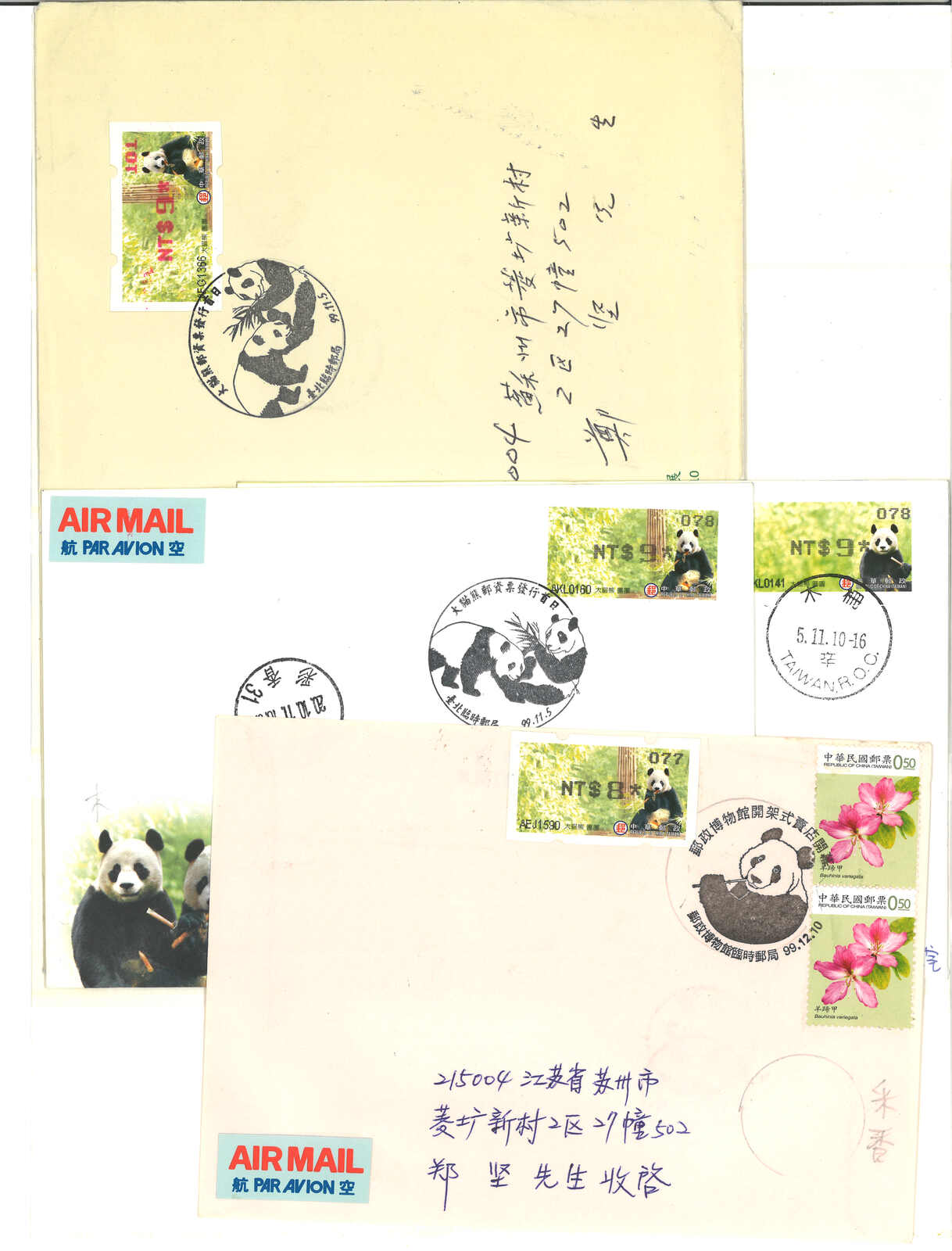 3433 cover image2010 a comprehensive collection of Taiwan Giant Panda ATM stamps, containing about 200 stamps and 70 covers, including several variety stamps, maximum covers and commemorative covers etc.