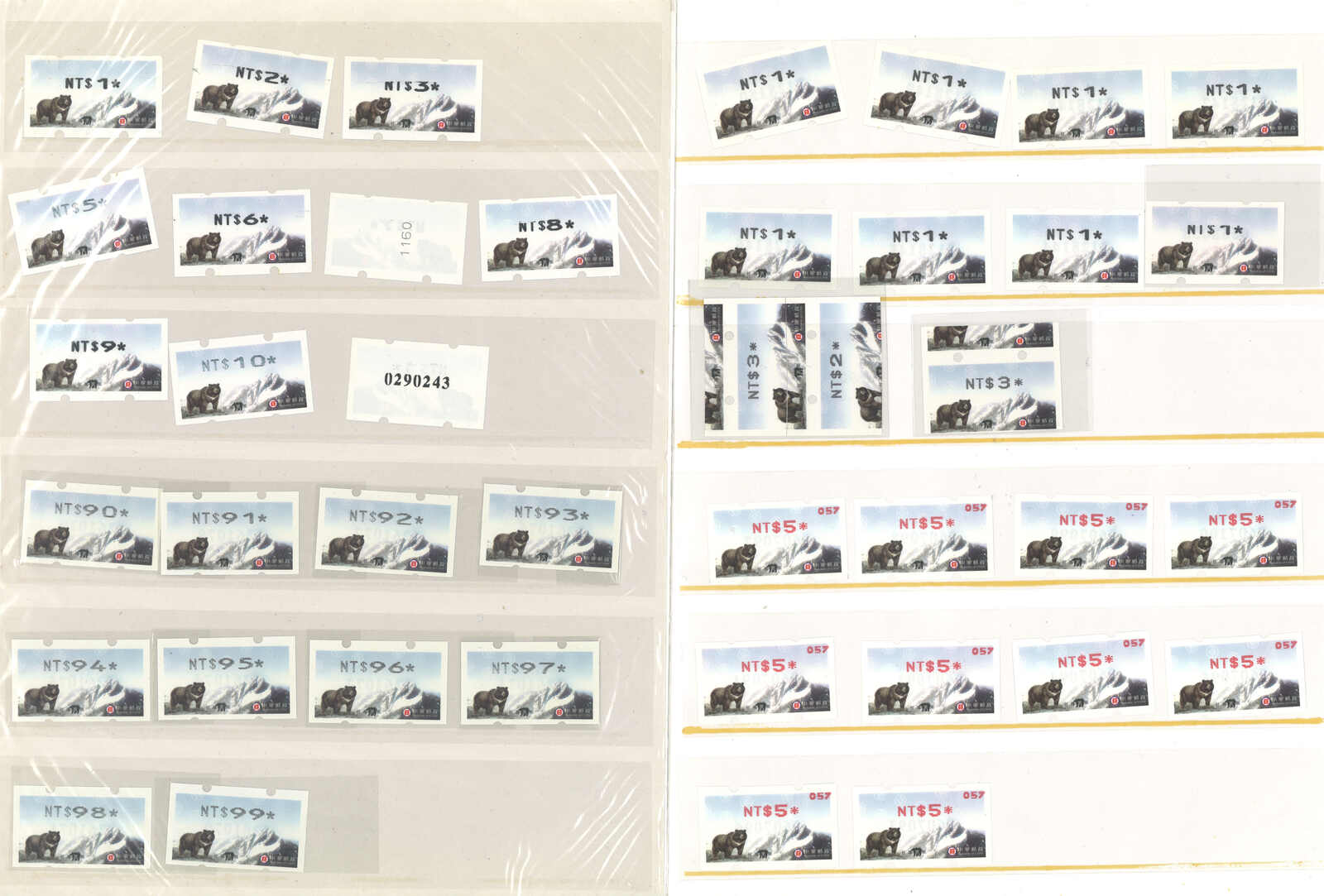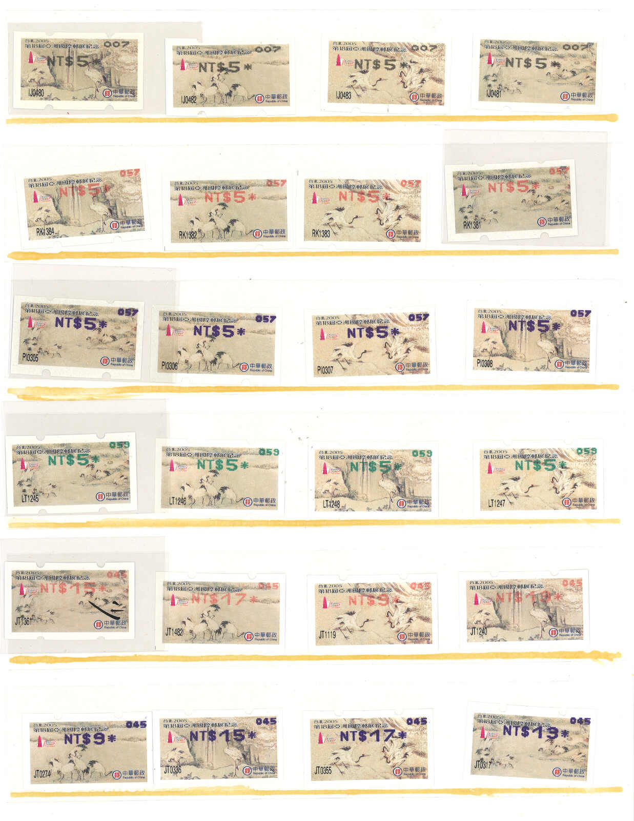 3428 cover image2005 a comprehensive collection of Taiwan 18th Asian International Stamp Exhibition ATM stamps, containing about 100 stamps and 80 covers, including variety stamps, scarce trial stamps, FDC, maximum cards, commemorative covers etc.