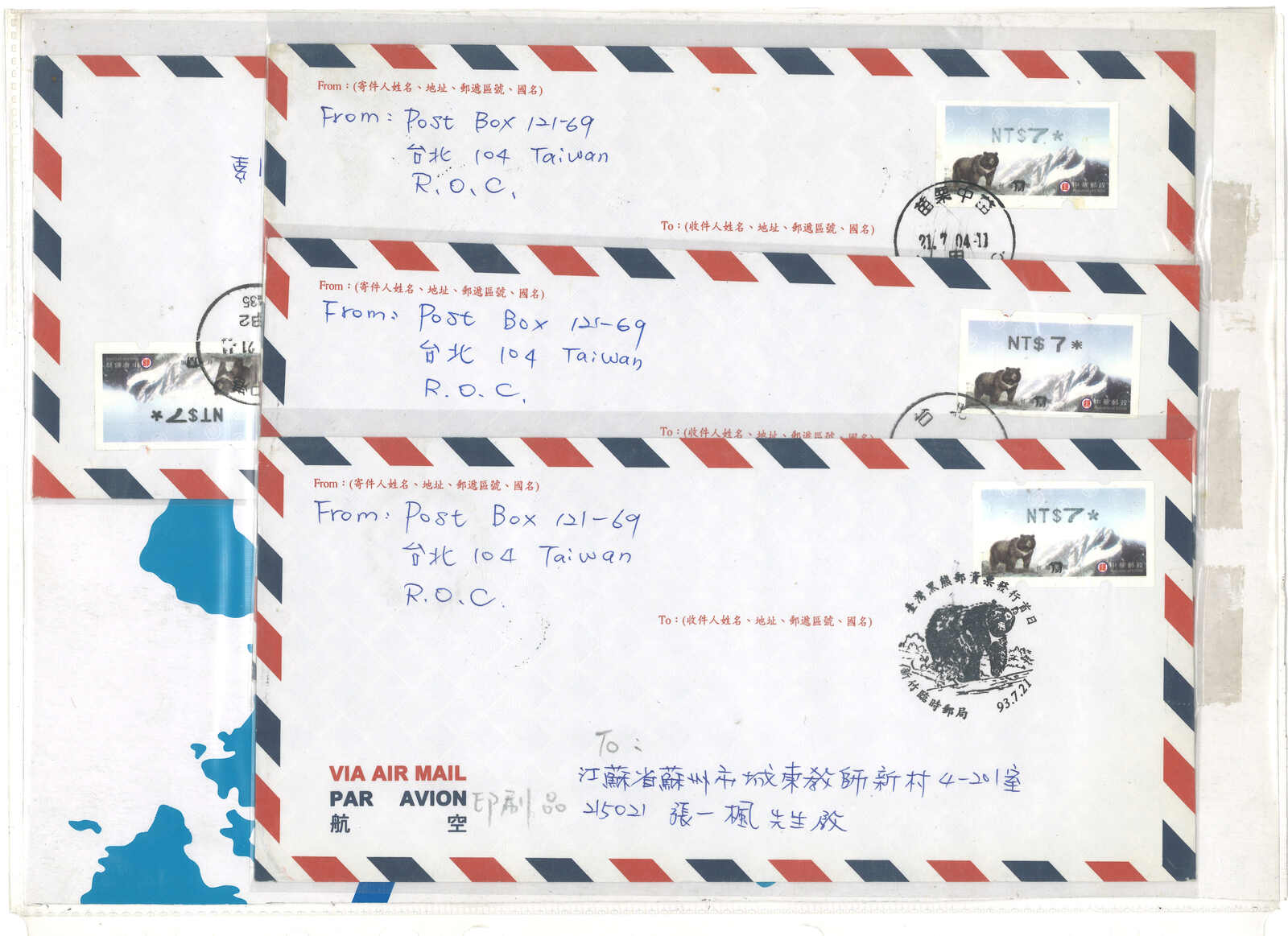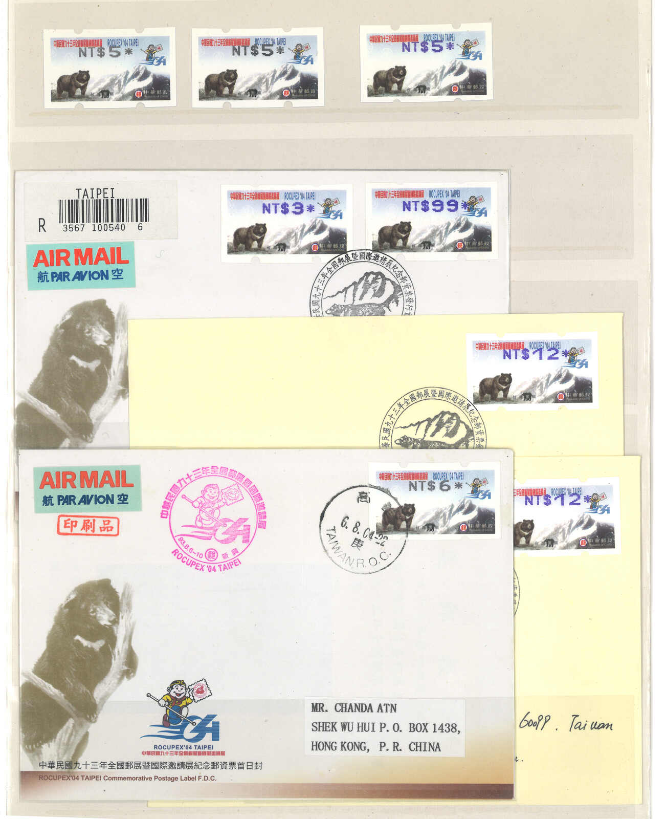 3427 cover image2004-2007 a comprehensive collection of Taiwan Black Bear, ROCUPEX 04, Kaihsiung, ROCUPEX 07 and Taipei 2007 ATM stamps, containing about 150 stamps and 100 covers, including variety stamps, FDC, commemorative and commrically used covers.